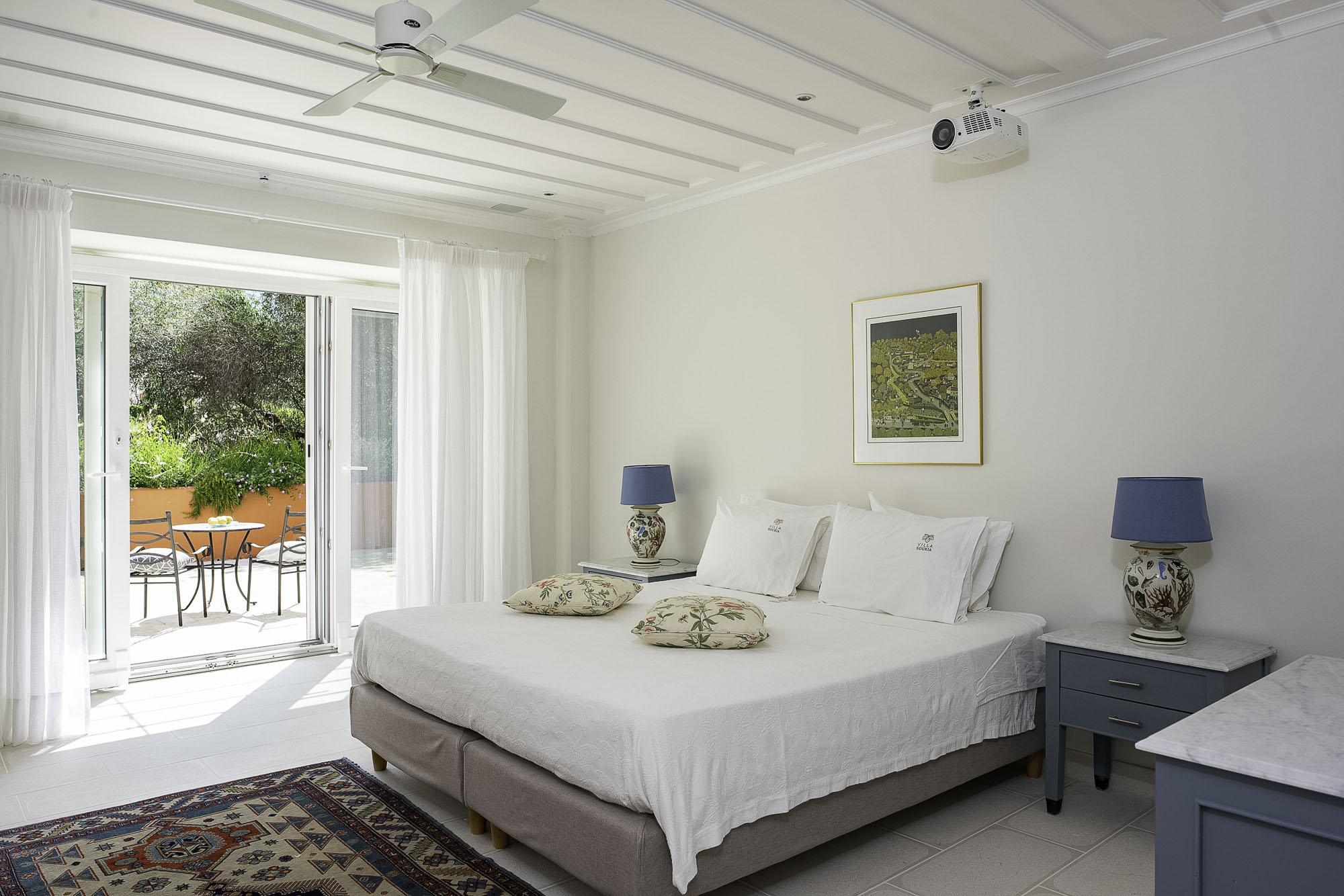 Kassiopi, which is pleasant 10 minute stroll through the olive groves, has all the essential amenities, including a good choice of places to eat and lots of souvenir shops, supermarkets, bakeries, and pharmacies. There are are also some low-key bars which are popular with teenagers in the evenings. St Stephano, another popular village, is a 10 minute drive down the coast backroad. Avlaki beach, with two tavernas, is about a 15-minute walk. There is also a tennis court a short walk away in village Michelangelo. It’s well worth driving into the hills above to see the ancient abandoned Venetian village of Old Perithia, home to some of the best traditional food on the island. For further cultural delights, a trip to Corfu Old Town is highly recommended and can be reached by a captained rib in 30 minutes.