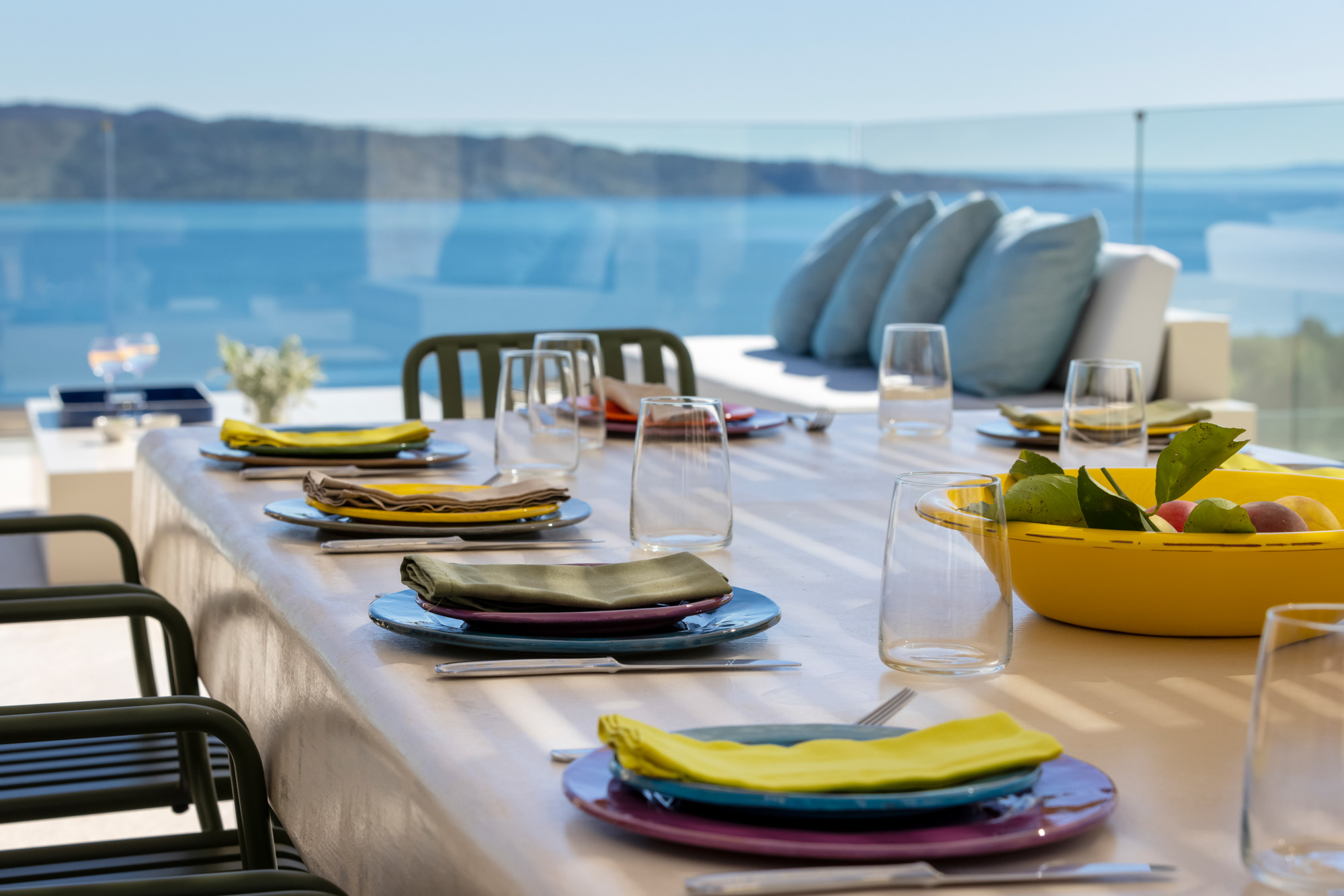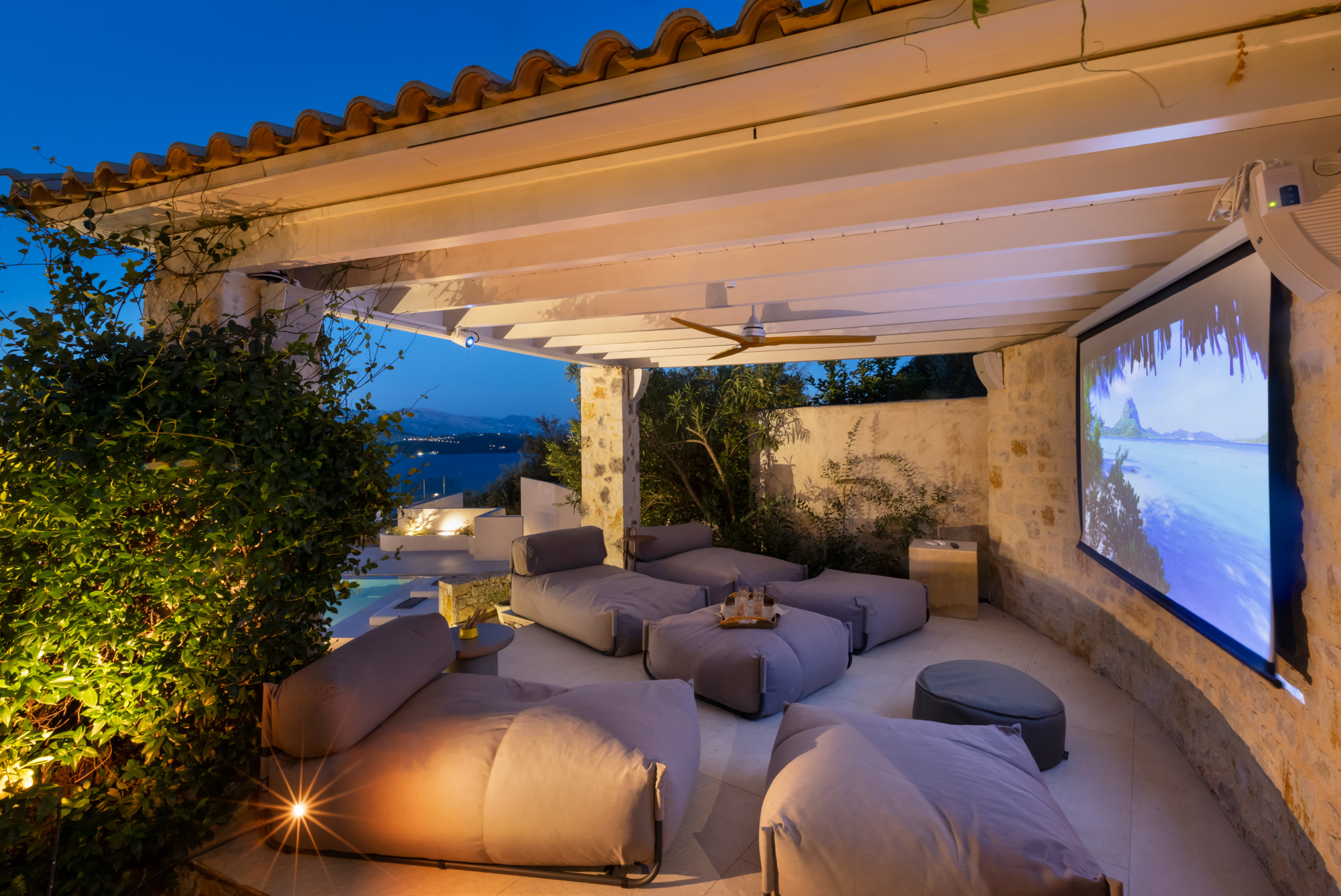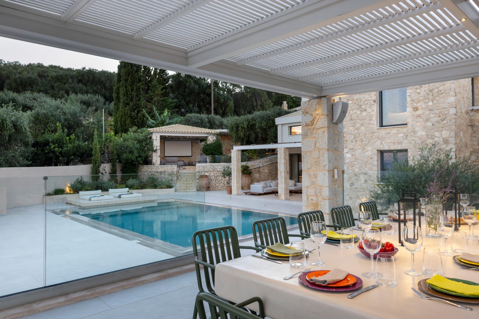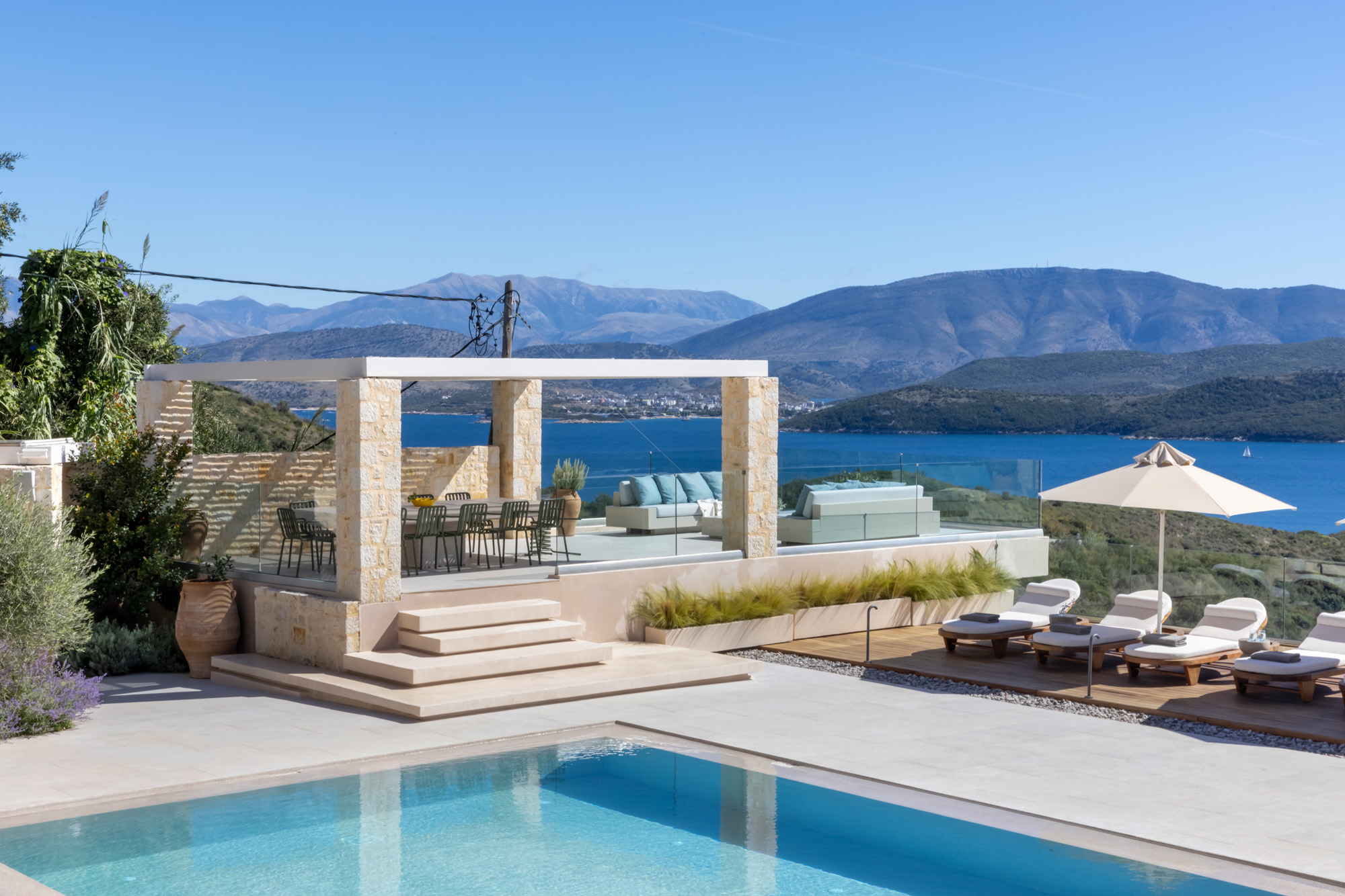 This contemporary villa has fabulous outdoor living spaces, includes both chef and concierge services, and is great for larger groups of friends or families. It is just a short drive to St Stephano, Avlaki and Kerasia beaches.