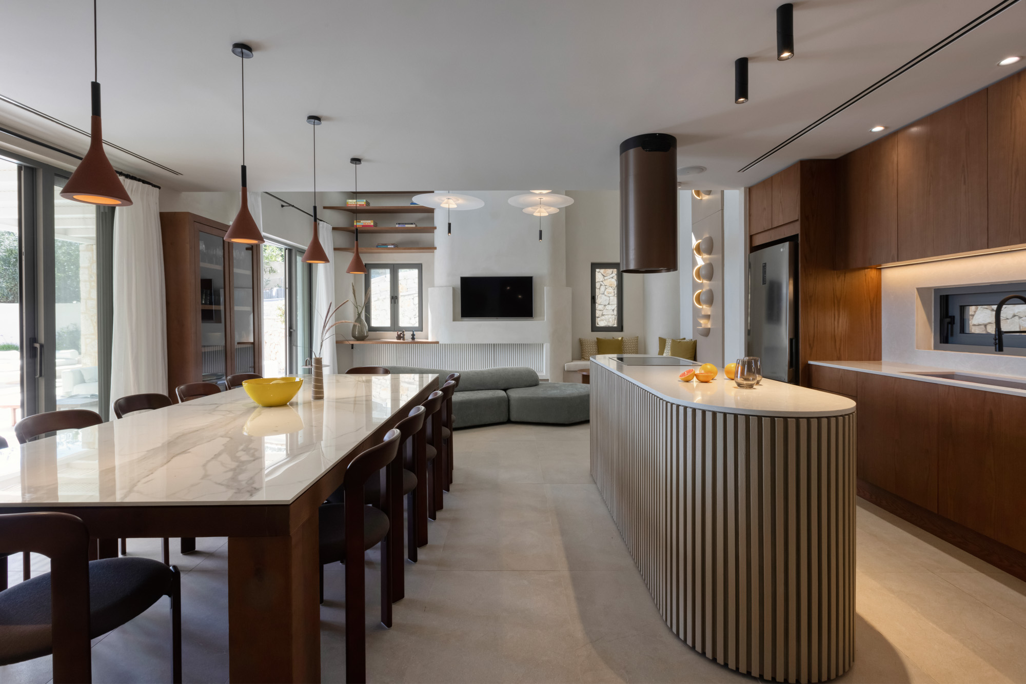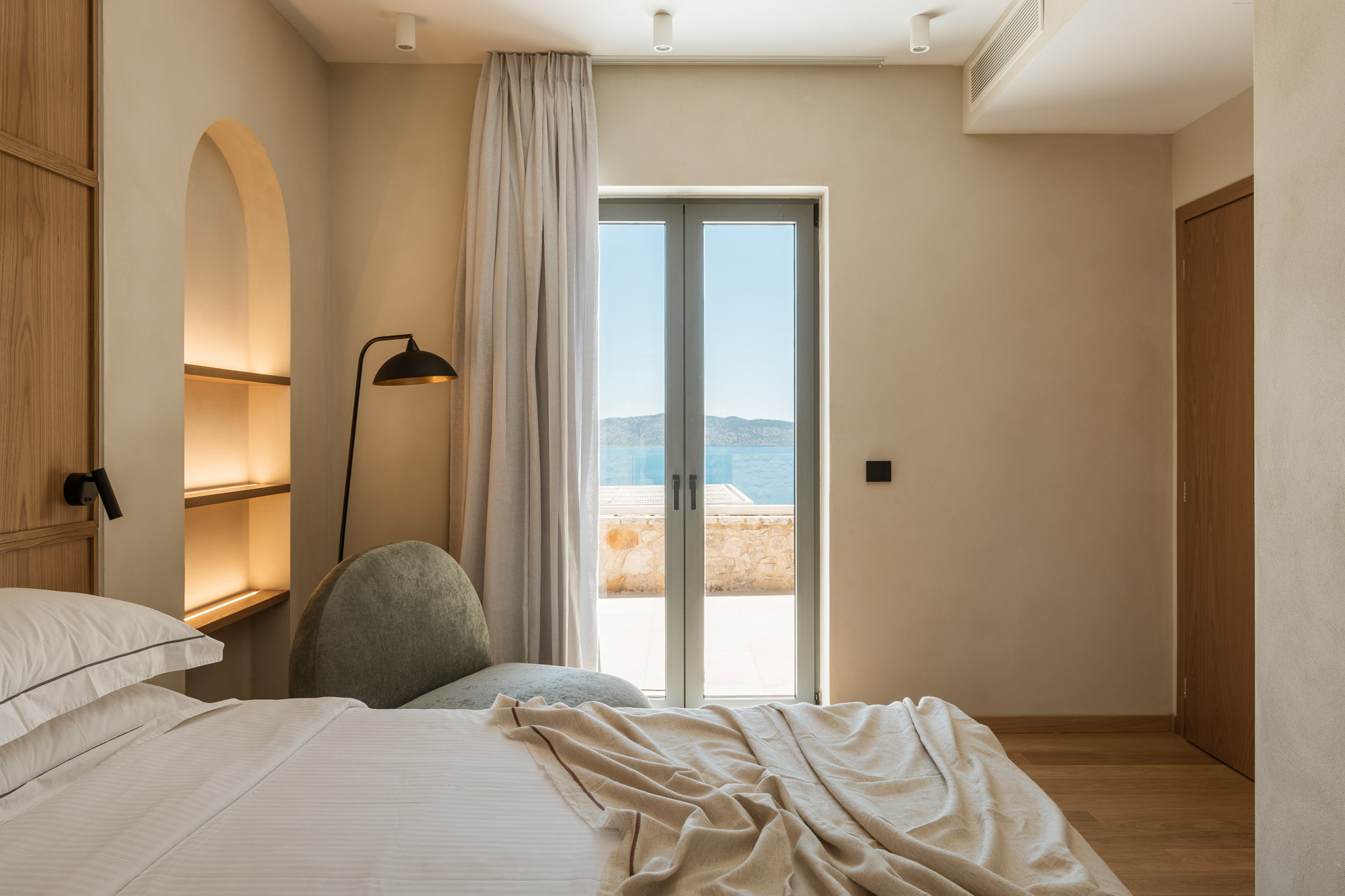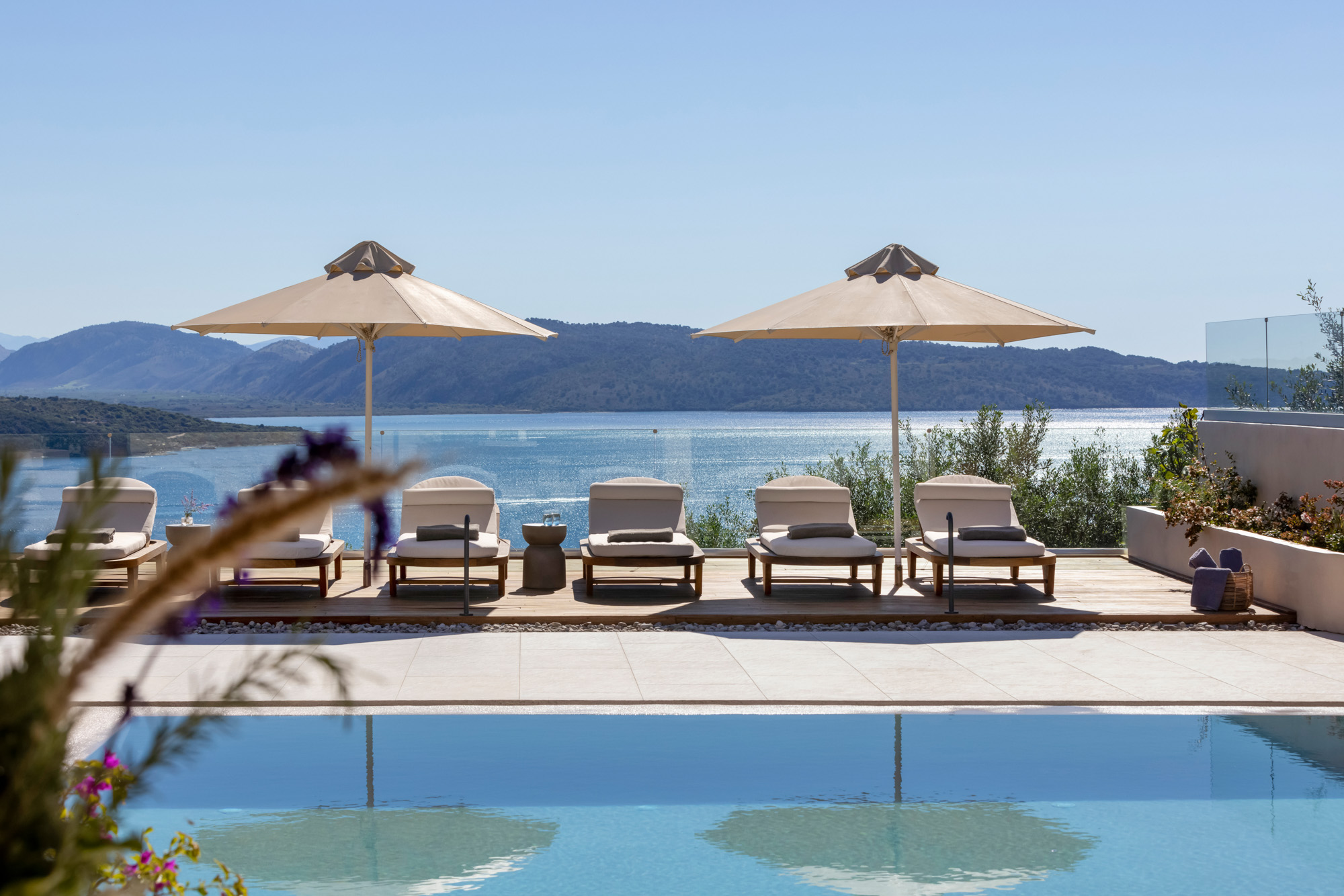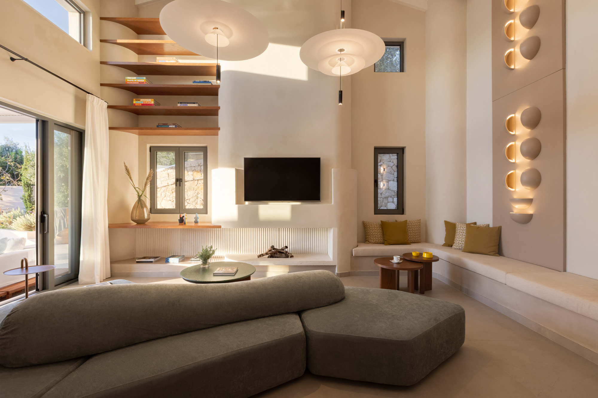 This contemporary villa has fabulous outdoor living spaces, includes both chef and concierge services, and is great for larger groups of friends or families. It is just a short drive to St Stephano, Avlaki and Kerasia beaches.