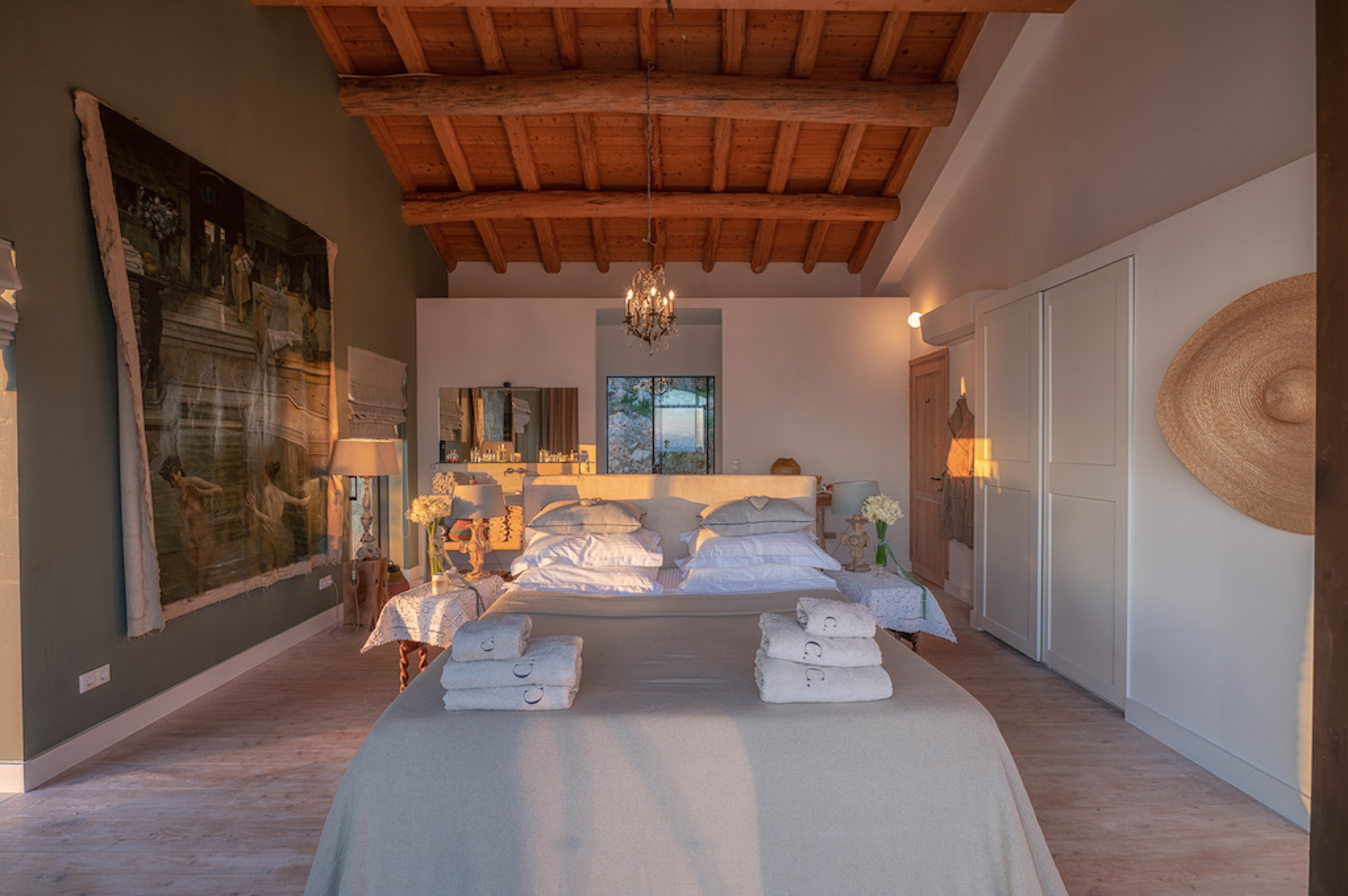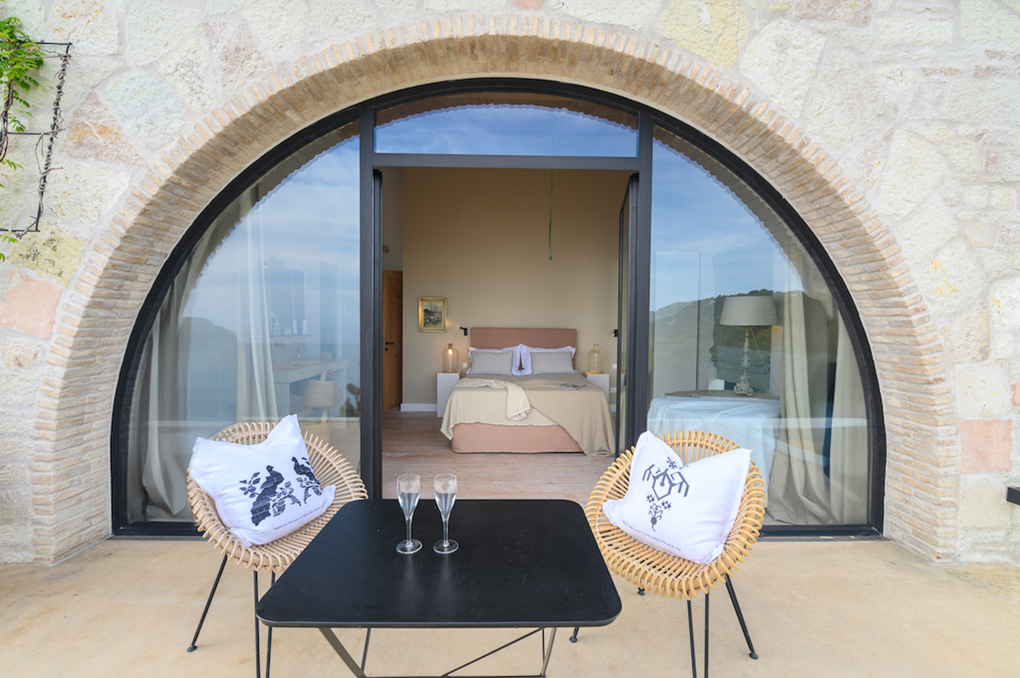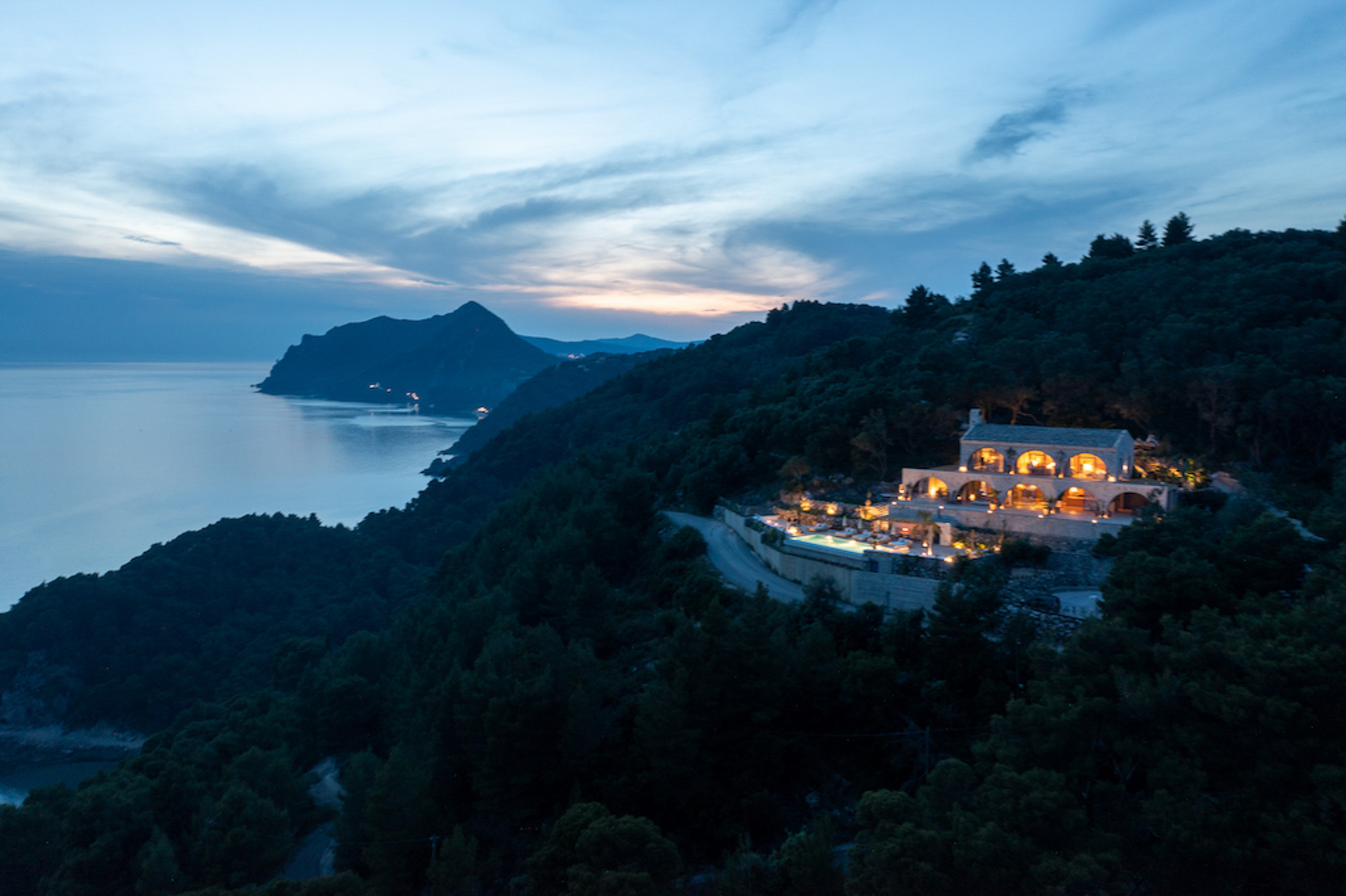 Villa Yaliskari is set within an 8-acre olive grove surrounded by green wilderness. The estate offers magical views of the sea, mountains, and the little island of Kyriadiki. The closest beach is a short walk away, and its event area makes it one of the best venues for weddings or other special celebrations in Corfu.