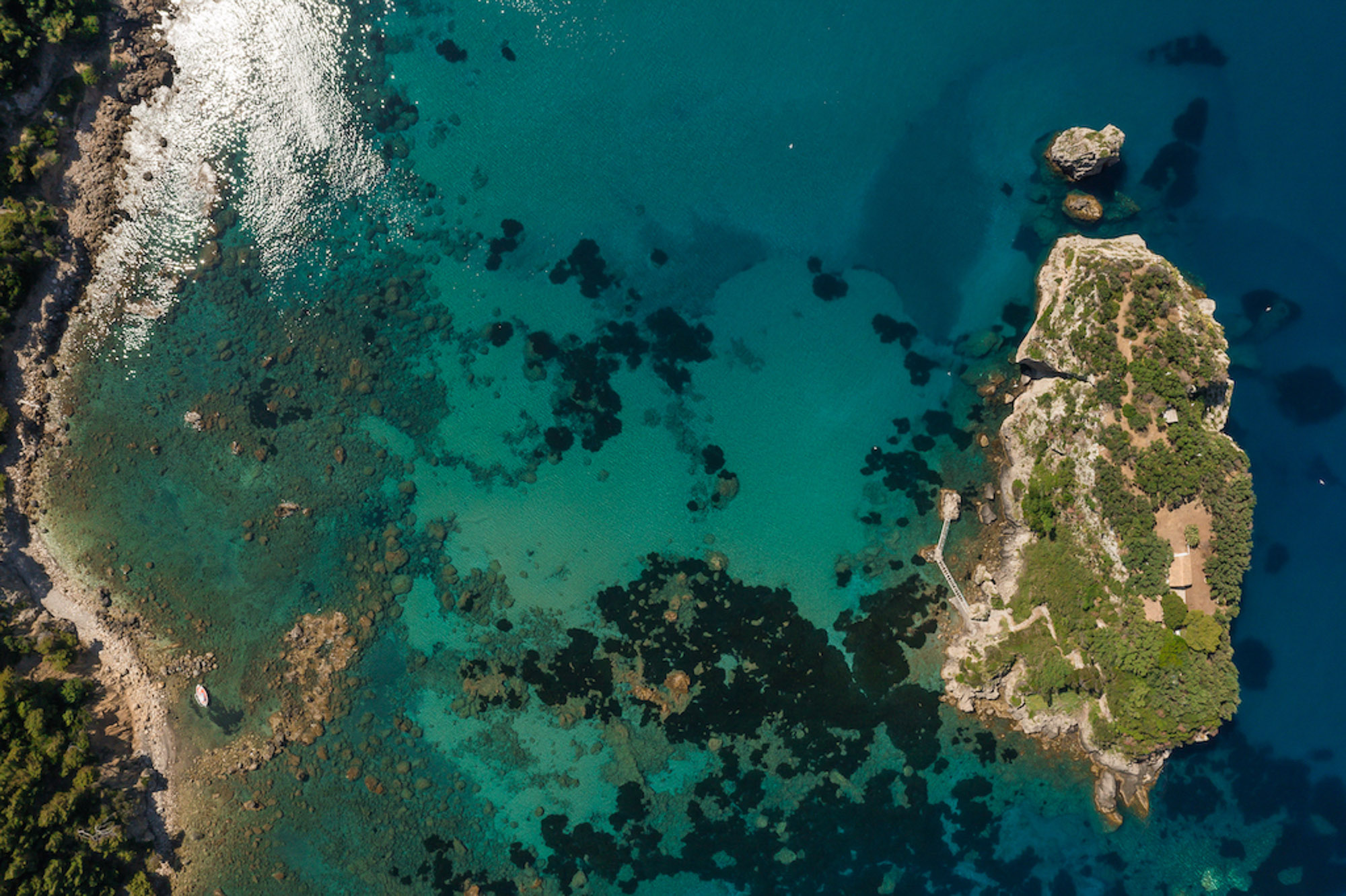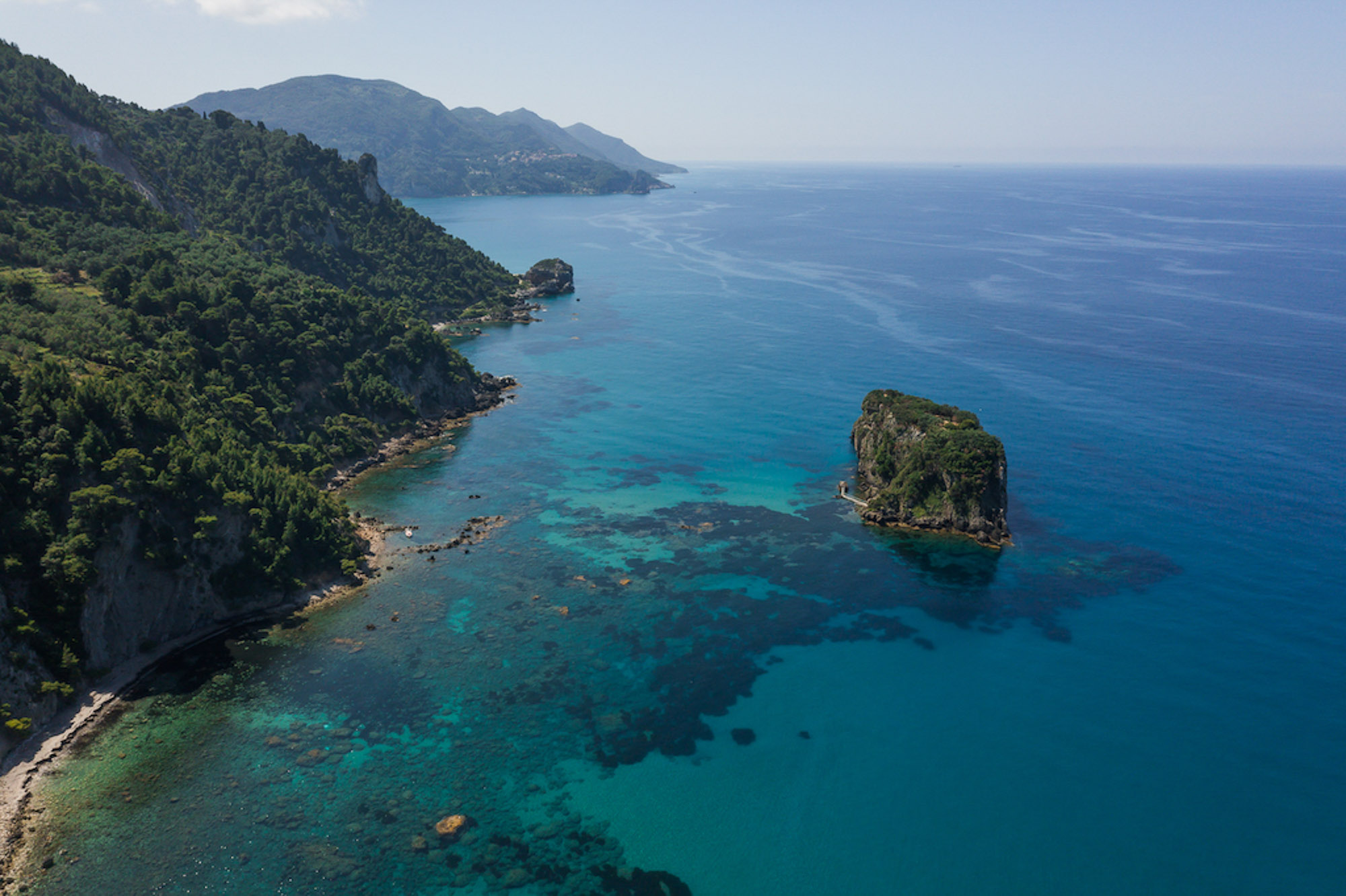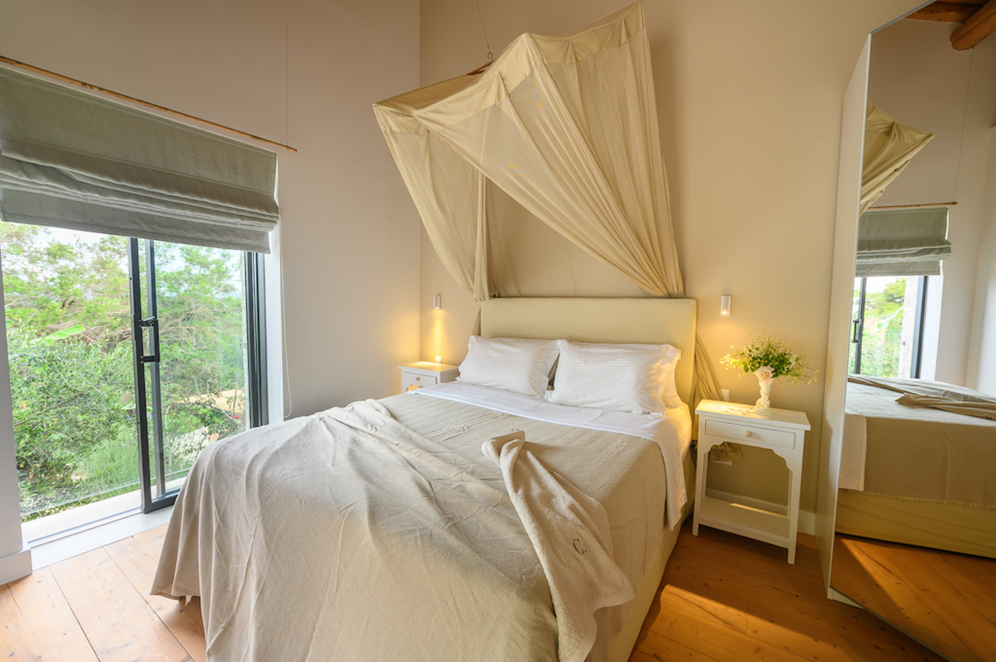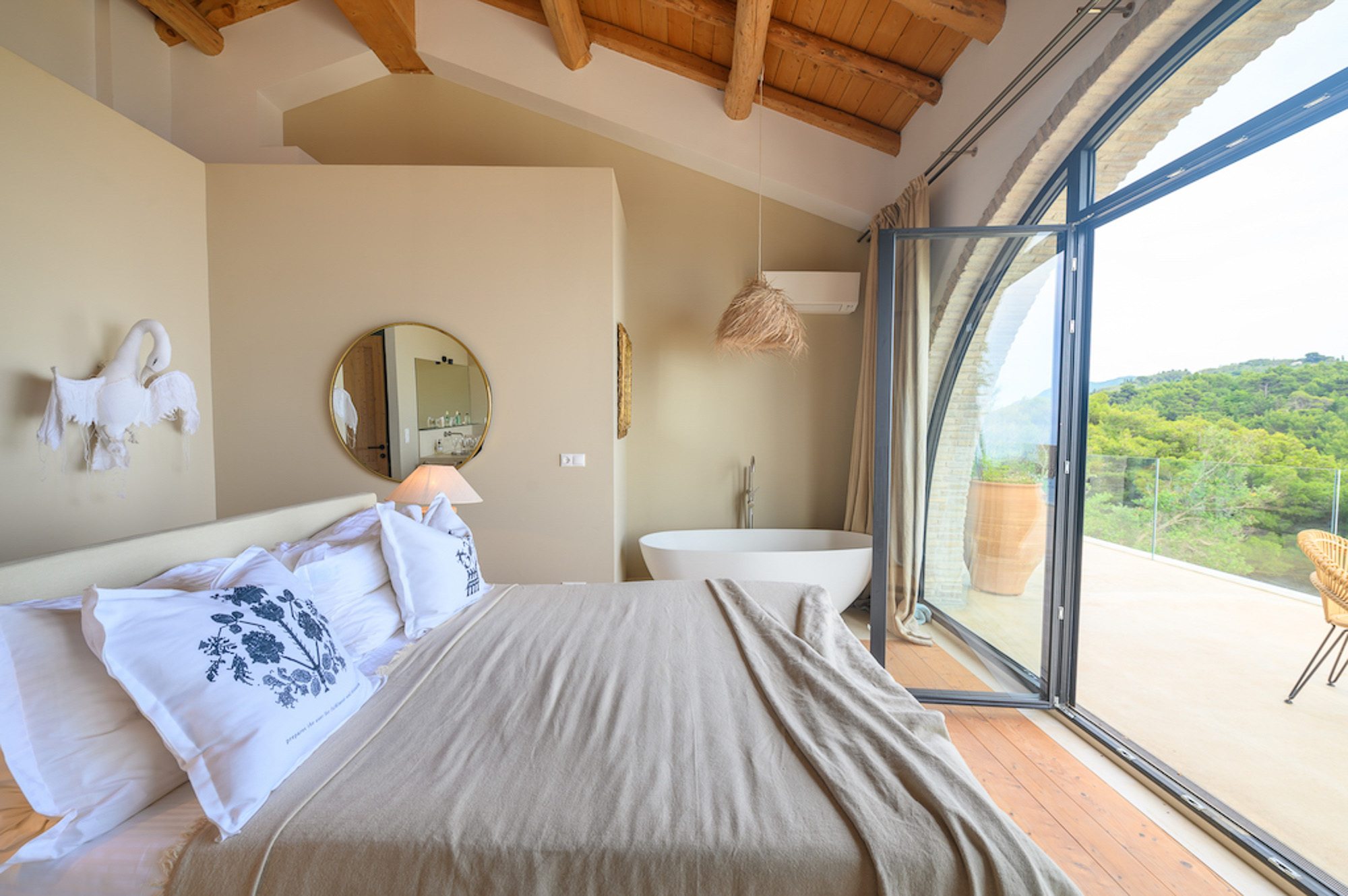 Villa Yaliskari is set within an 8-acre olive grove surrounded by green wilderness. The estate offers magical views of the sea, mountains, and the little island of Kyriadiki. The closest beach is a short walk away, and its event area makes it one of the best venues for weddings or other special celebrations in Corfu.
