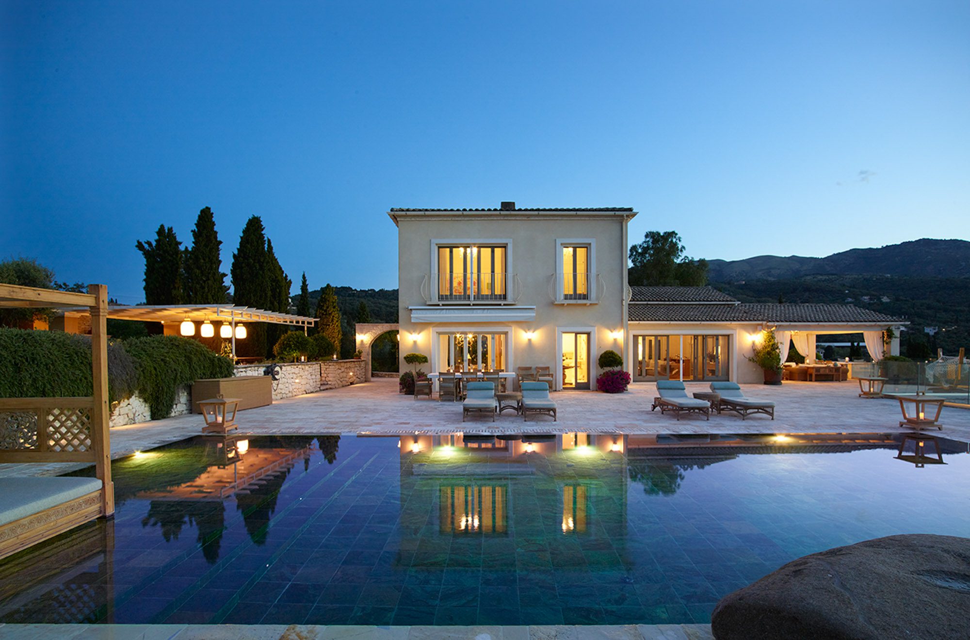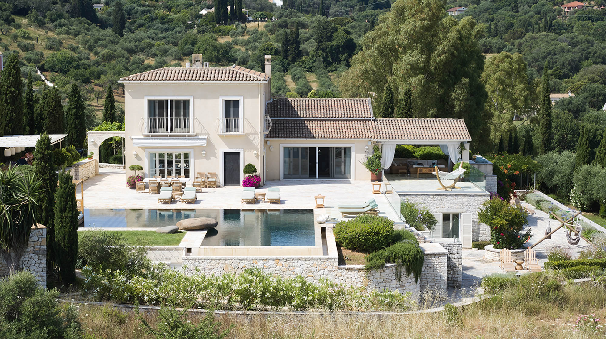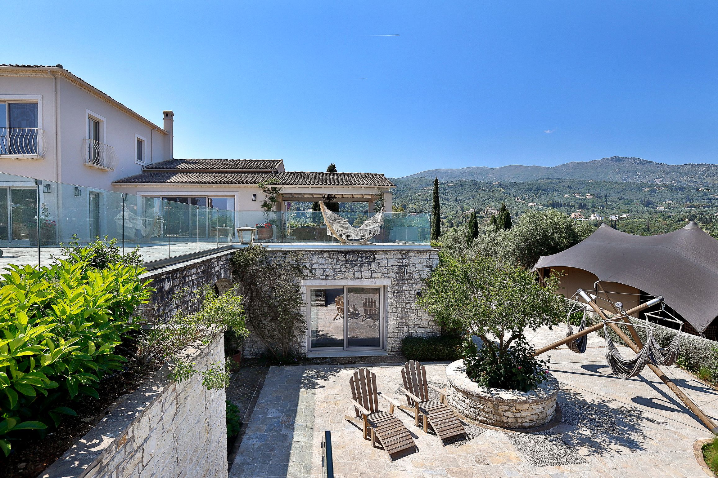 You can walk down to the picturesque Avlaki beach in 10 minutes; the waters are perfect for snorkelling, and there are two tavernas for sustenance. The villa is in an elevated position surrounded by greenery, with panoramic sea views from the terraces and Kassiopi only a few minutes drive away.