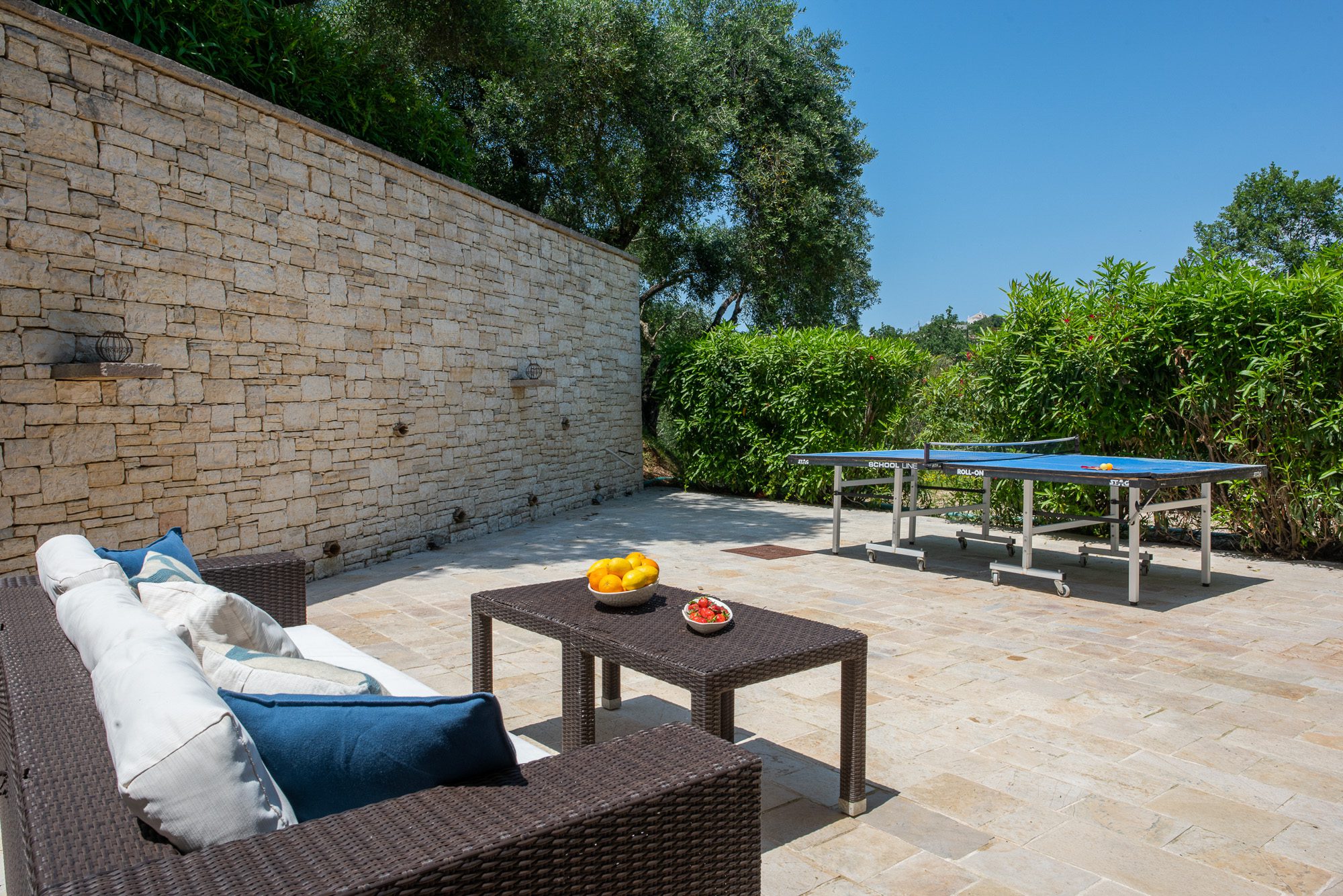 A pleasant 10-minute stroll through olive groves leads to Kassiopi, where you'll find all the essential amenities, including a variety of dining options, souvenir shops, supermarkets, bakeries, and pharmacies. In the evenings, some low-key bars popular with teenagers are open. St Stephano, another favored village, is a 10-minute drive along the coastal backroad. Avlaki beach, featuring two tavernas, is about a 15-minute walk away. Additionally, a tennis court is within a short walking distance in the village of Michelangelo. Driving into the hills to visit the ancient, abandoned Venetian village of Old Perithia is highly recommended, as it offers some of the best traditional food on the island. For more cultural experiences, consider a trip to Corfu Old Town, which can be reached by a captained rib in 30 minutes.
