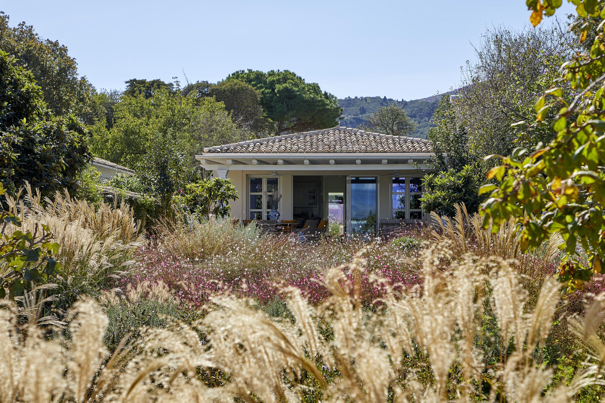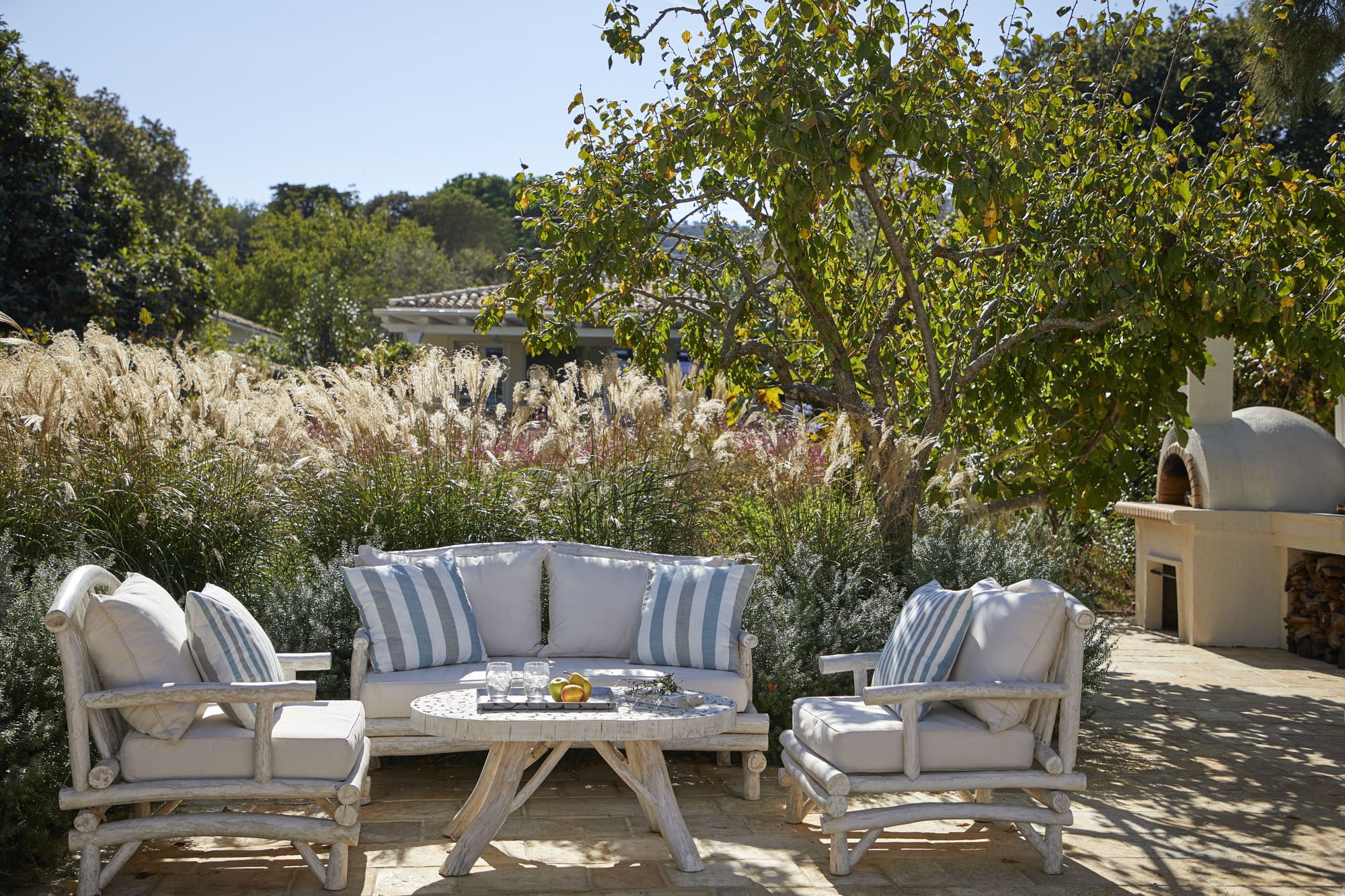 The comfortable, airy interiors have a classic, coastal style, beautifully decorated predominantly in blues and whites with exposed, bleached wood ceilings. The larger house has a chic, white sitting/dining room with French doors opening to a dreamy shaded terrace and steps to the gardens. The second cottage also has a kitchen and living room area, whilst the third has a good-sized ensuite bedroom. All feel nicely screened, nestled within the well-established gardens.