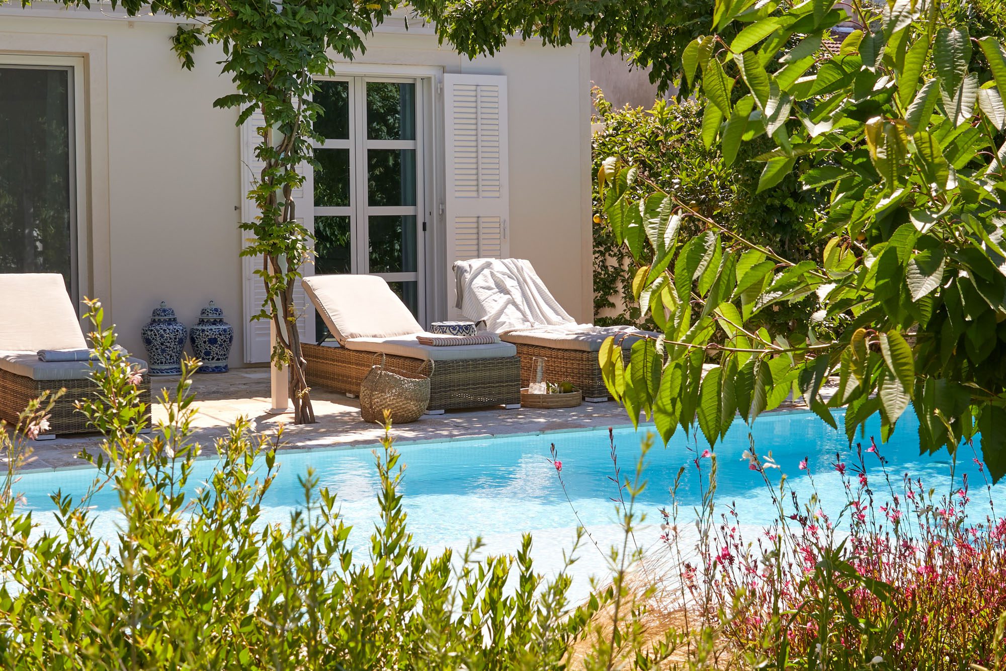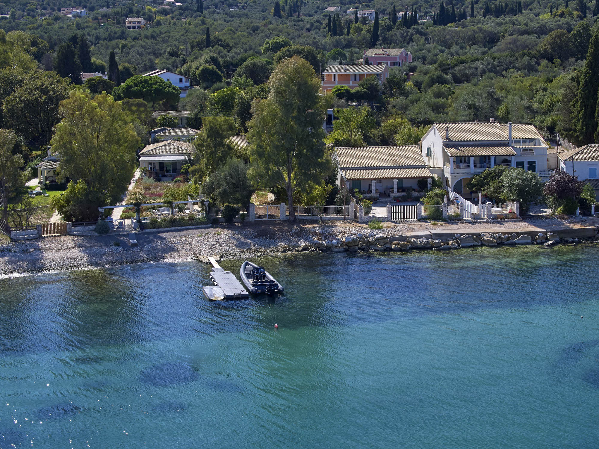 The villa comprises three separate cottages surrounded by colourful, scented gardens. An easy 15-minute walk via an olive grove leads to the tavernas and bars of Kassiopi or a 15-minute walk south takes you to Avlaki. The best way to explore the coastline however is by boat from the villas jetty.