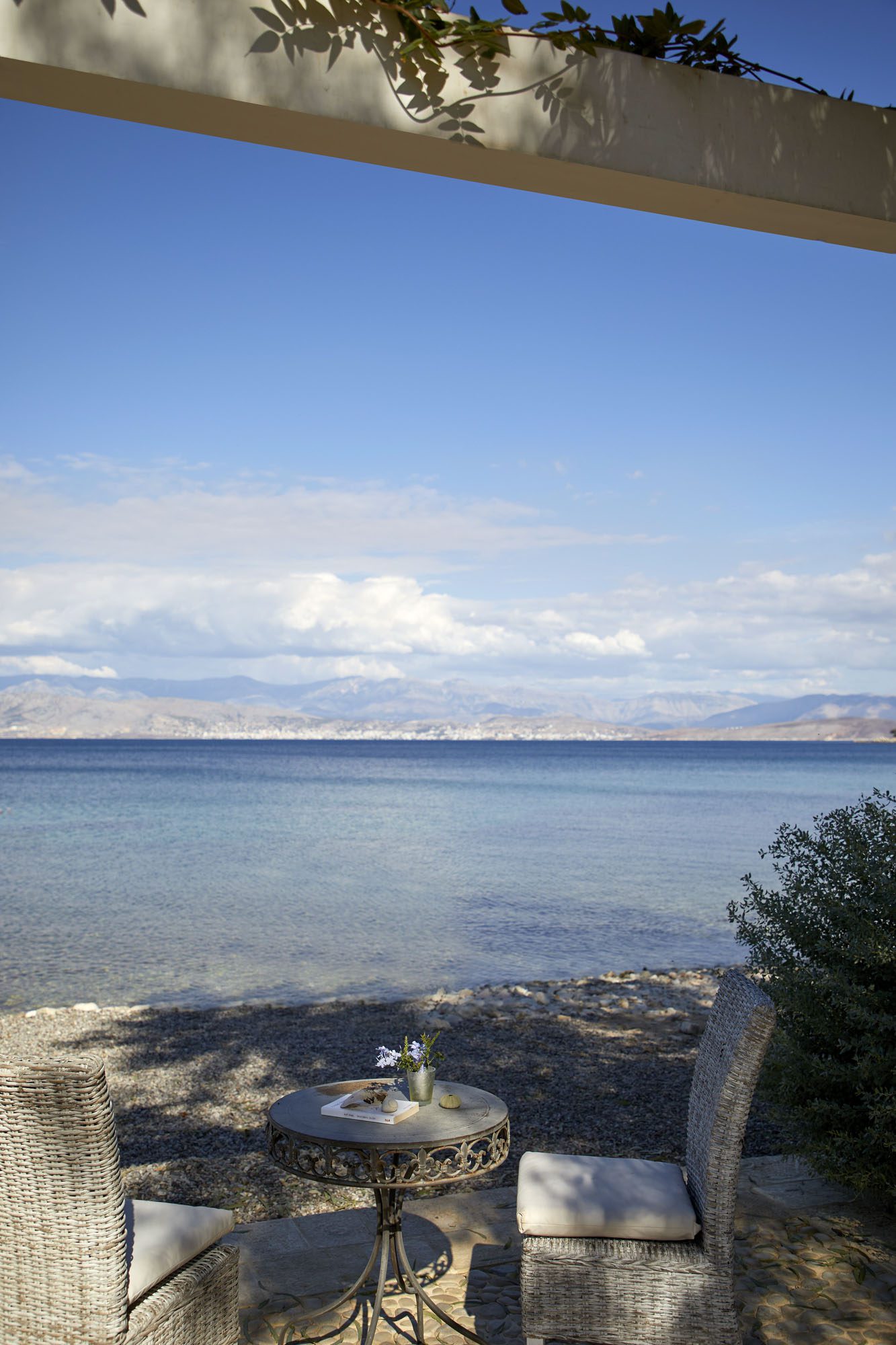 It’s centred around a charming harbour and has a range of facilities, including traditional tavernas, seafood restaurants, cafes, bars, little boutique shops, bakeries and supermarkets. Boat hire and organised boat trips are available. You can get to Avlaki beach in 15 minutes on foot or about 3 minutes by car, with two tavernas to choose from. The pretty fishing village of San Stephano is a 10-minute drive away and has some nice waterfront tavernas, several bars, and a boat hire.