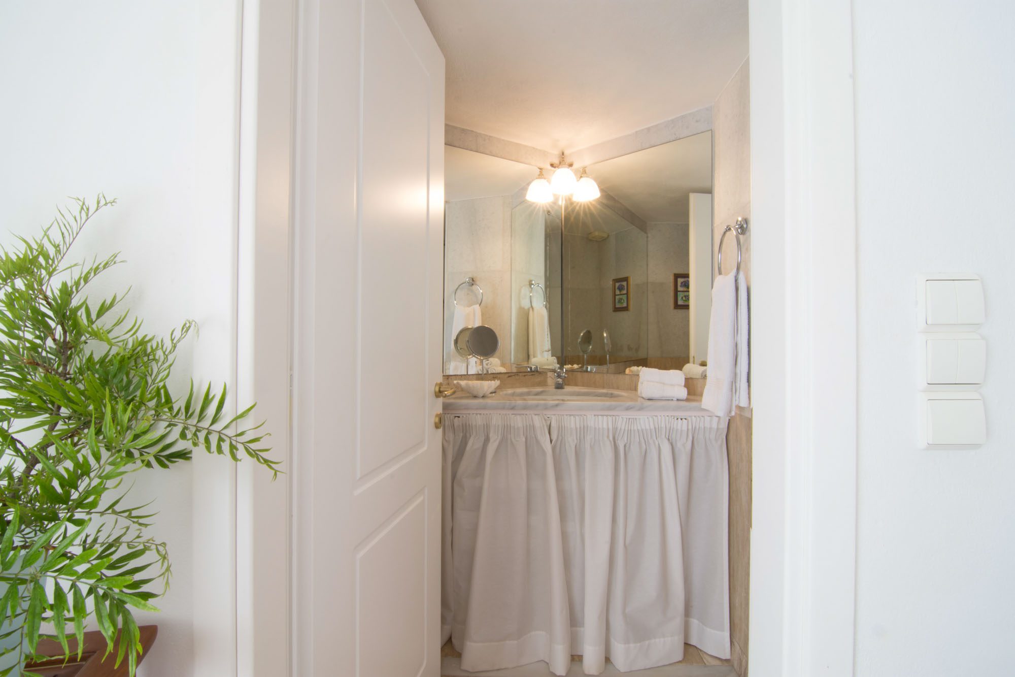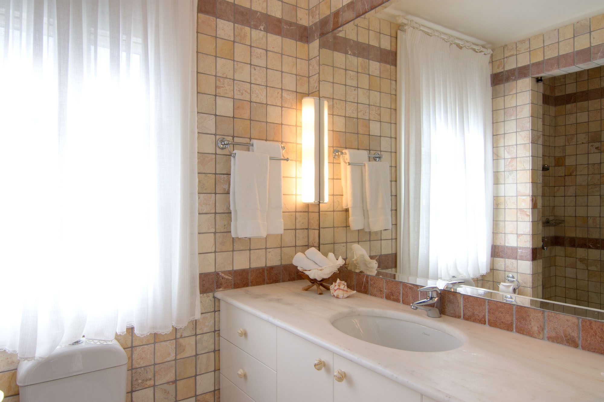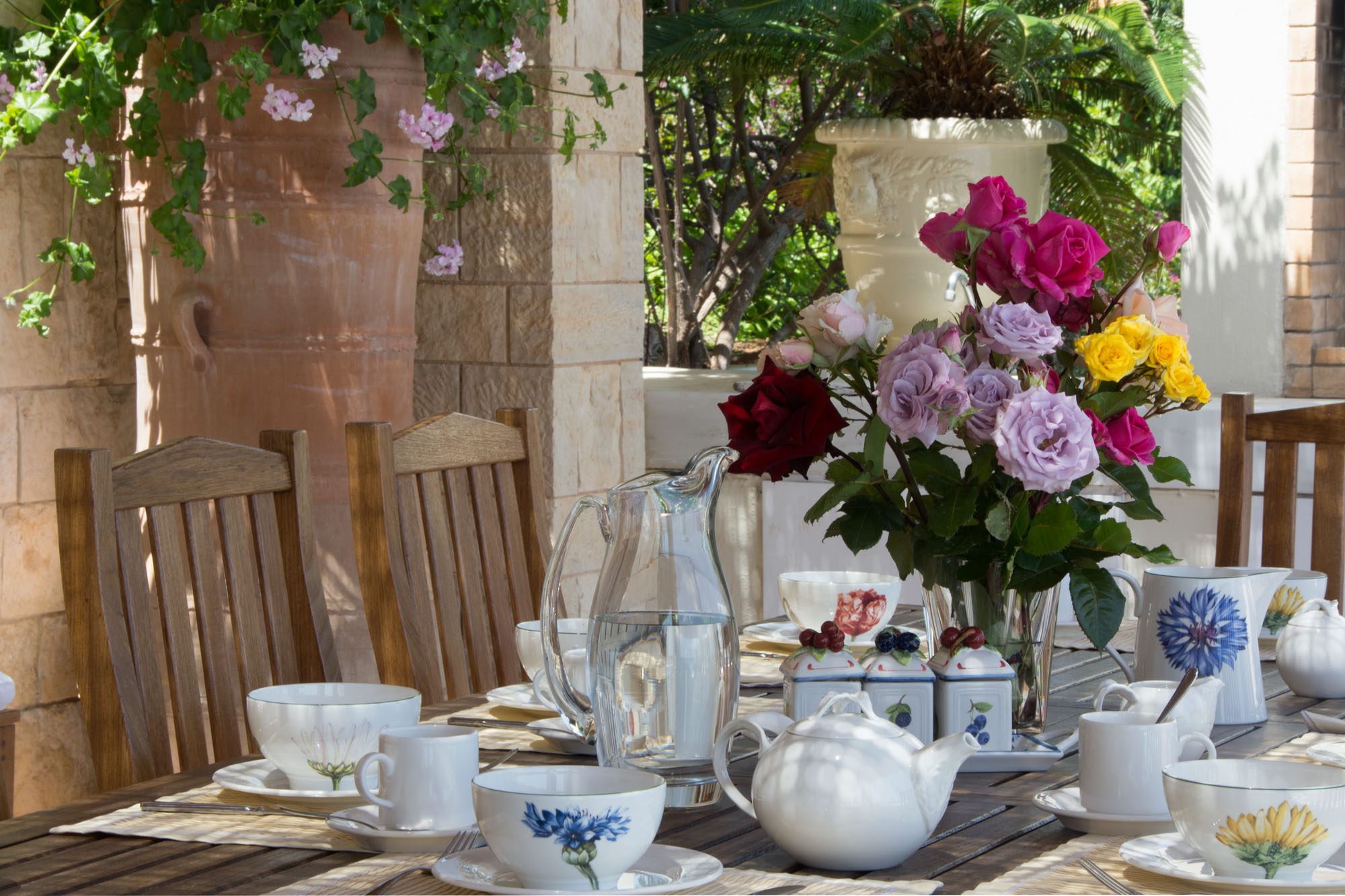 The living room opens to panoramic sea views and features a six-hundred-year-old fireplace, adding a touch of history to its contemporary elegance. Each bedroom has an en suite bathroom and a private balcony or terrace, creating a blend of luxury and personal space. A games room with an antique billiards table and a library with a grand piano make Villa Olous a distinctive family retreat. A nearby two-bedroom cottage nestled beneath the tennis court provides an additional private space, ideal for a small family.