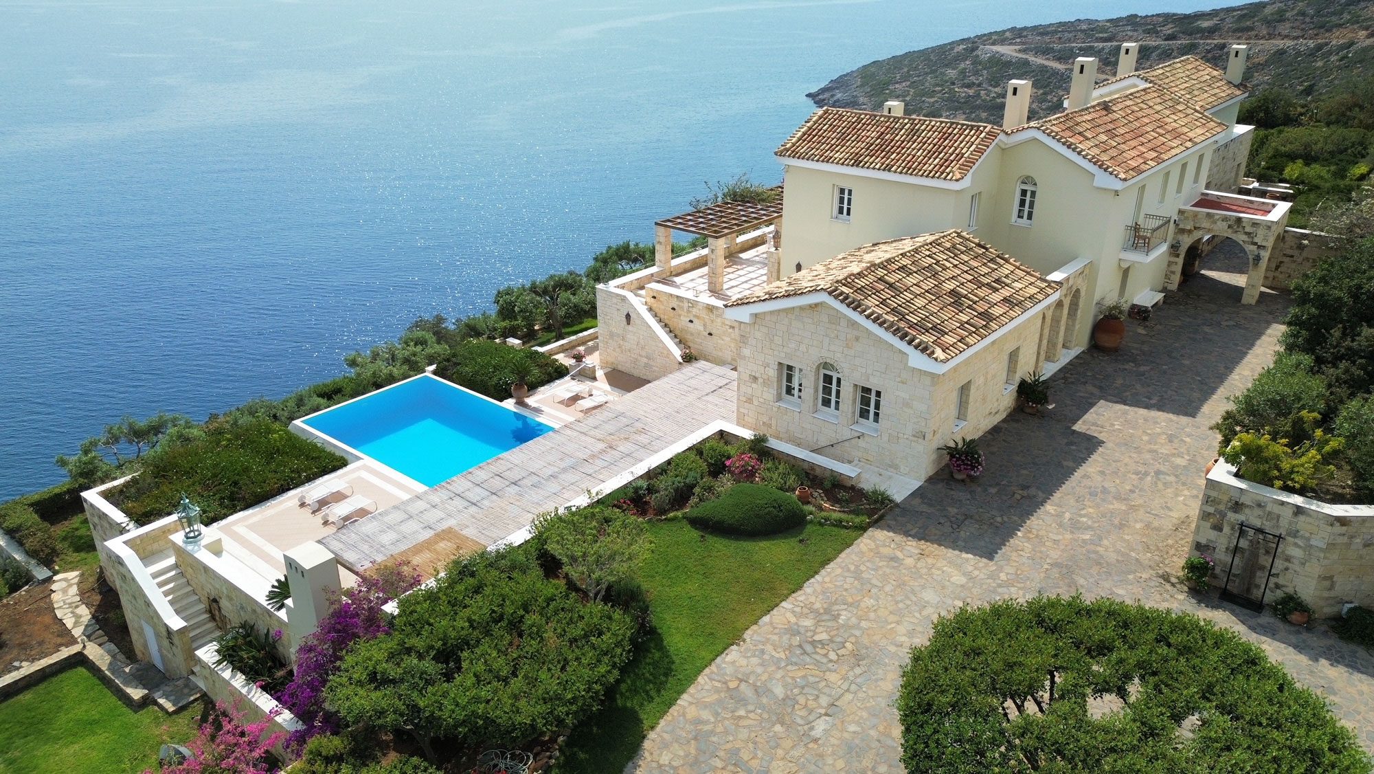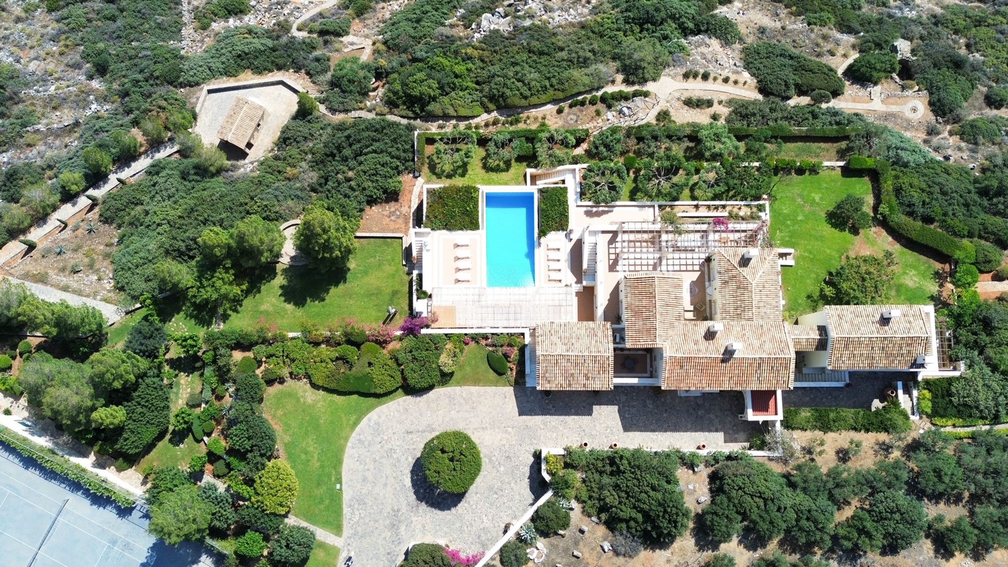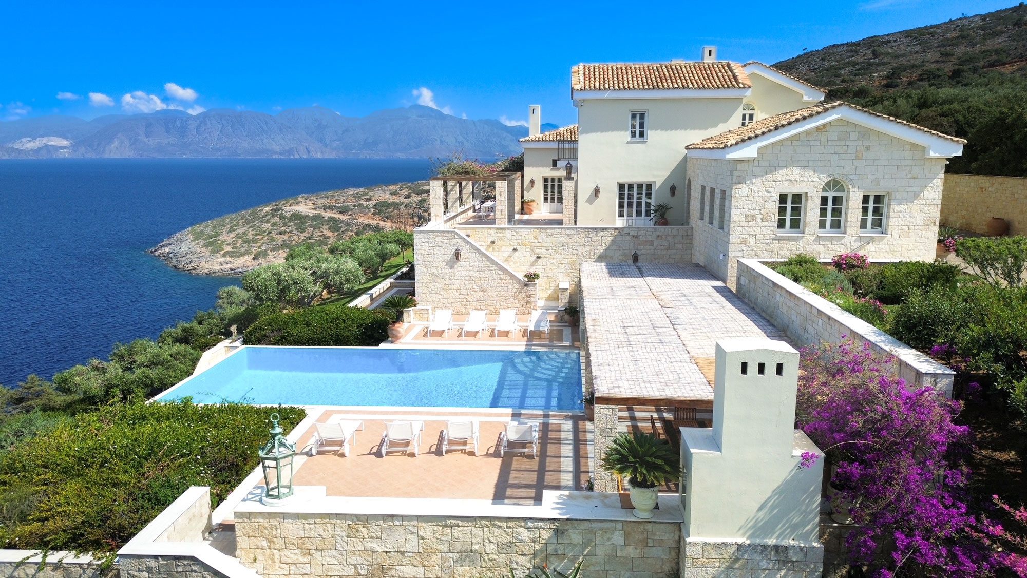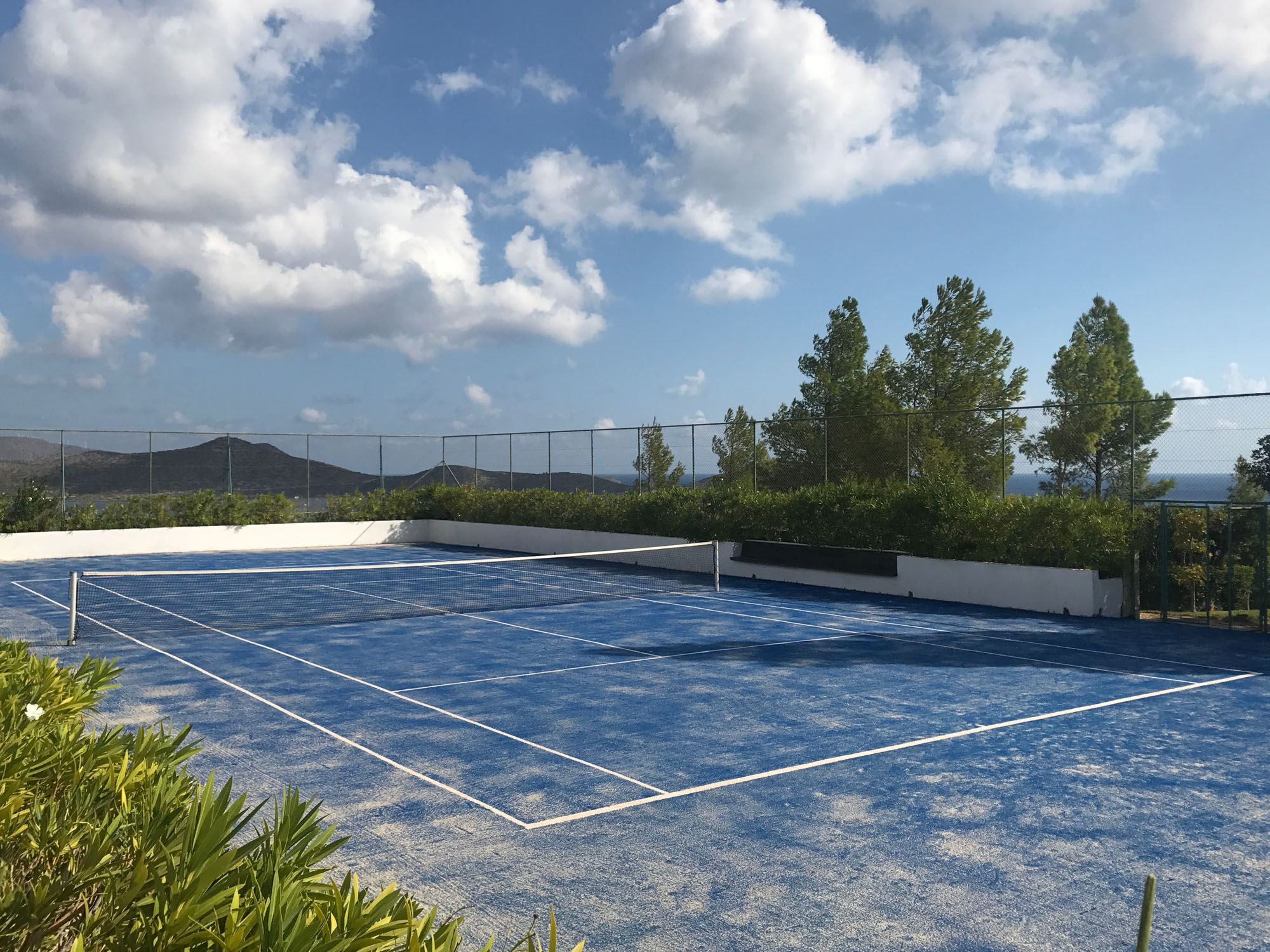 Villa Olous is a spacious waterfront retreat designed for privacy and recreation. It features exclusive sea access, a private infinity pool, and a Davis Cup-sized tennis court.