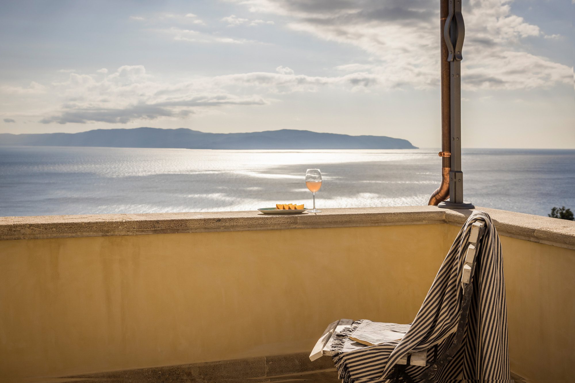 A long veranda on the upper floor overlooks the verdant garden with big green lawns and cypress & olive trees, which surround a large al fresco terrace and pool. If you cast your eyes beyond, the expansive sea views are mesmerising.