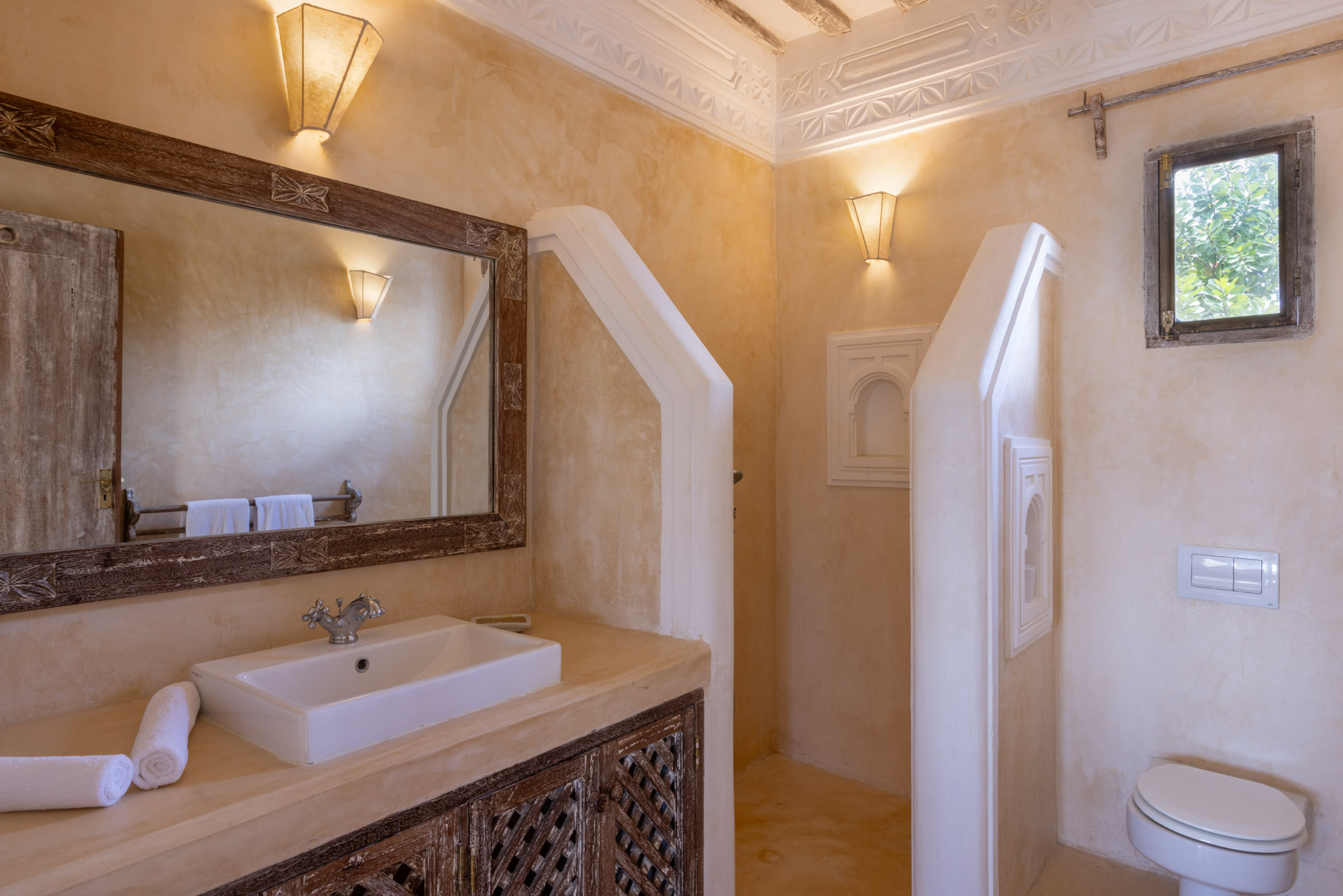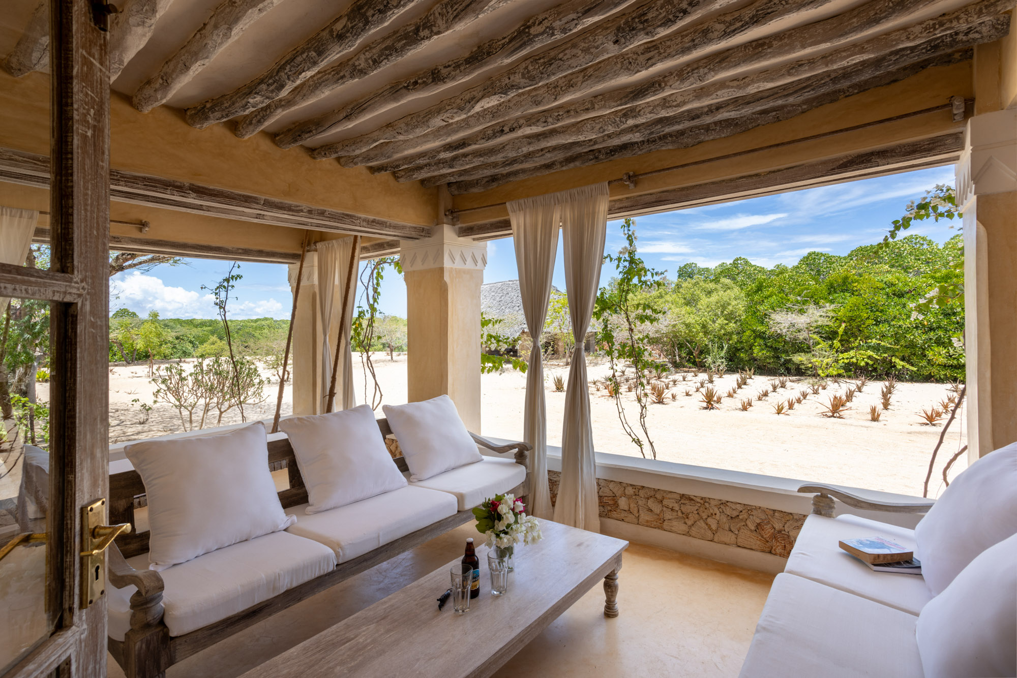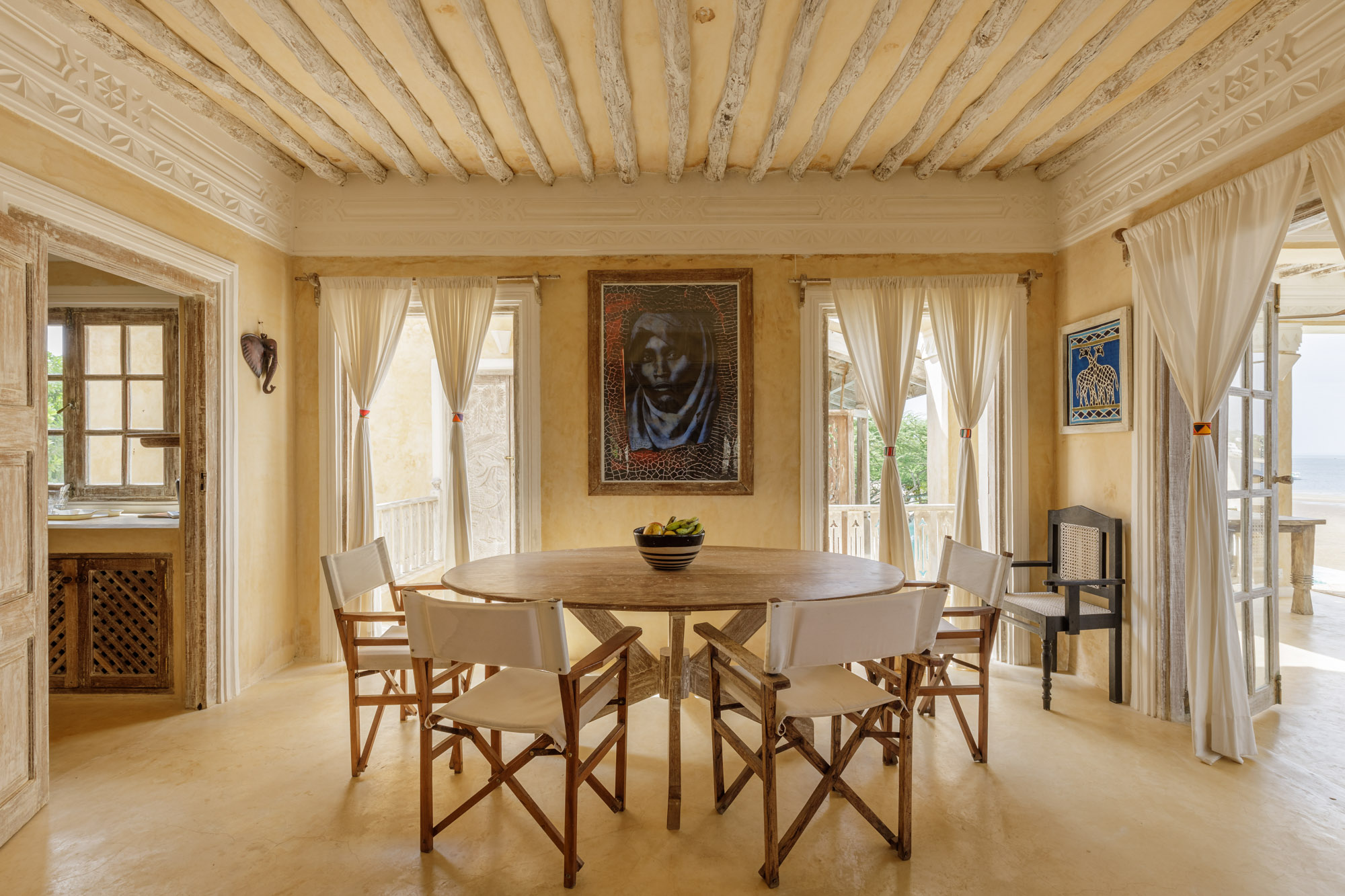 The swimming pool, framed by beachside pavilions, offers a refreshing spot for sun-soaked afternoons. Private terraces with daybeds and seating areas invite you to relax while taking in views of the Shela skyline or tranquil mangroves. A shaded terrace on the mangrove side serves as an intimate dining space for eight, ideal for breakfast as the sun rises. Every outdoor area is designed to immerse you in the natural beauty while ensuring moments of seclusion.