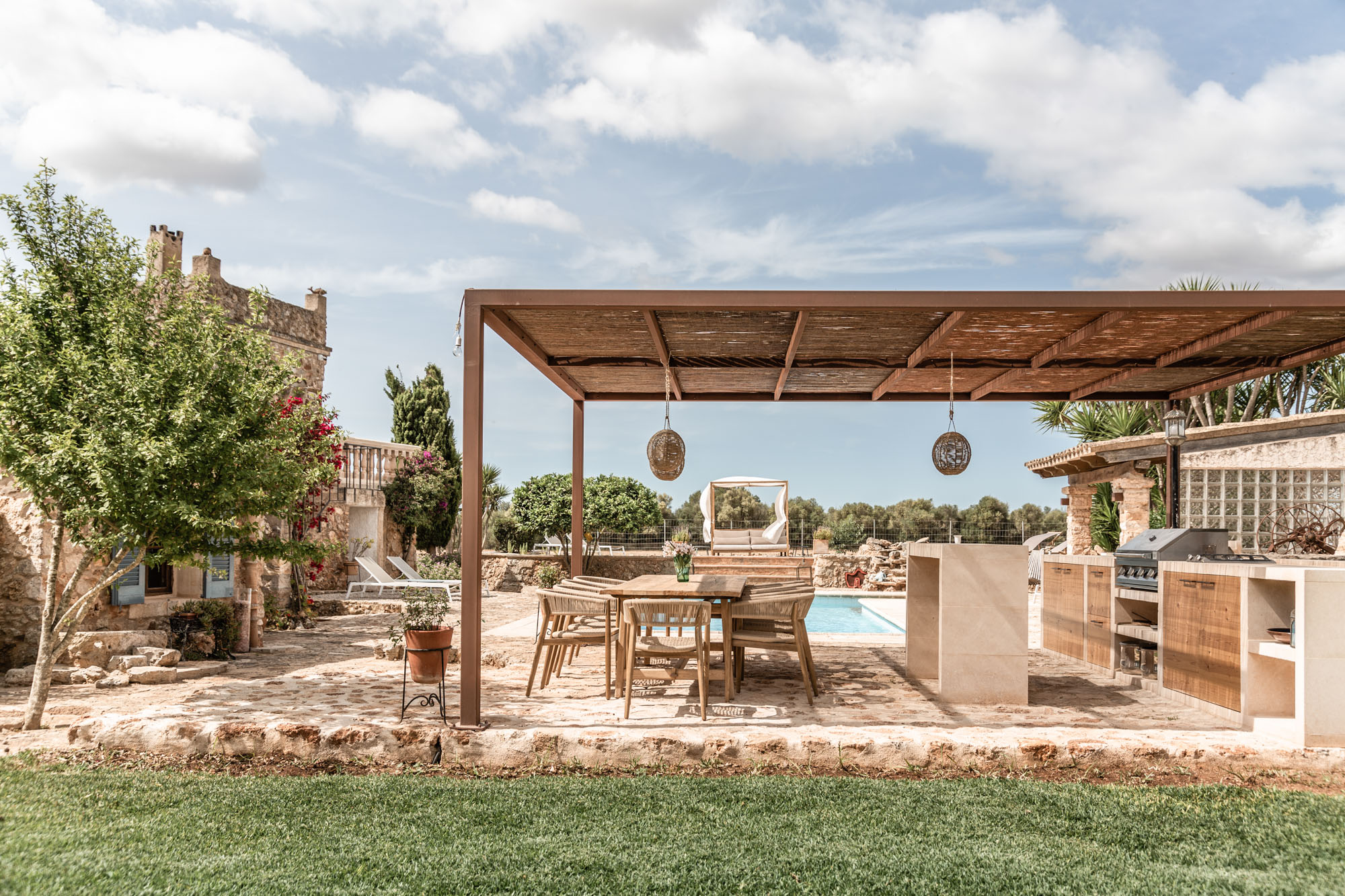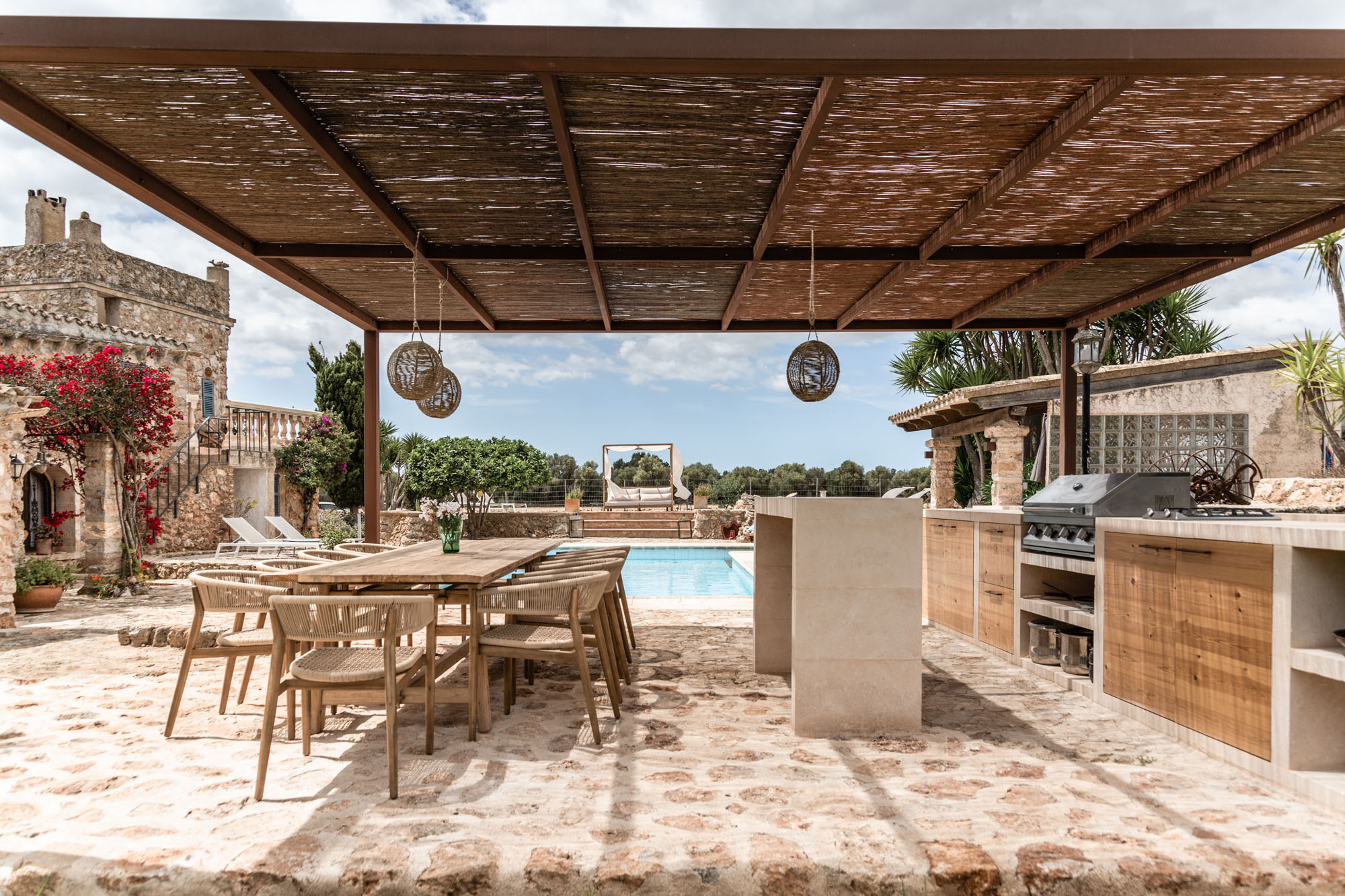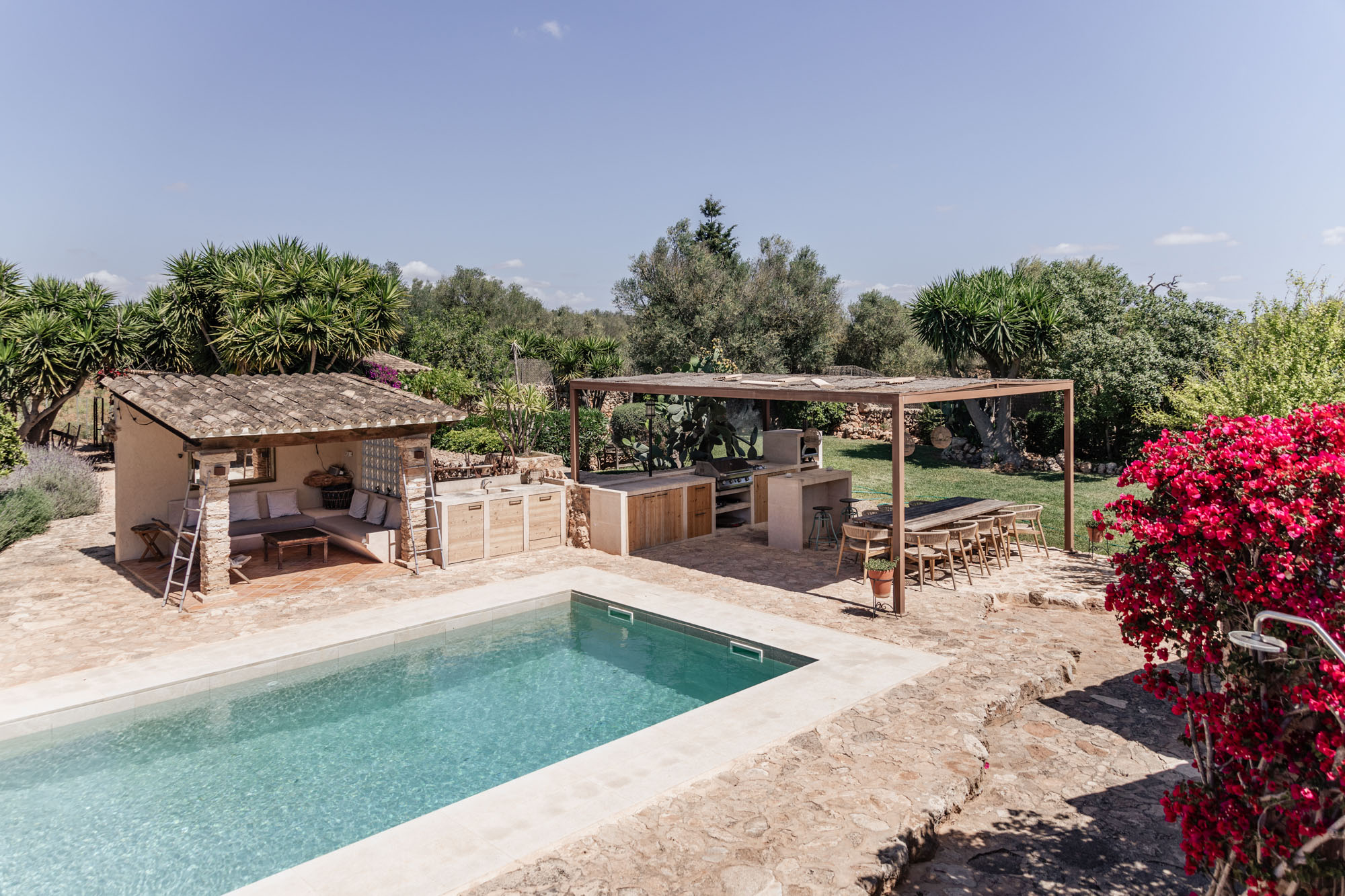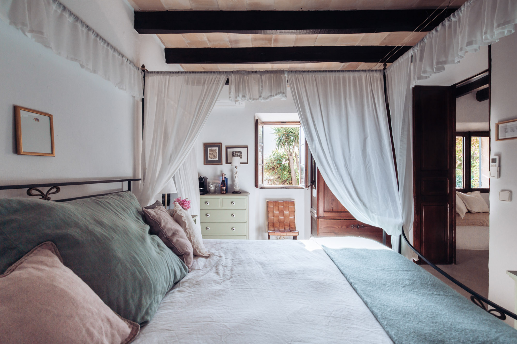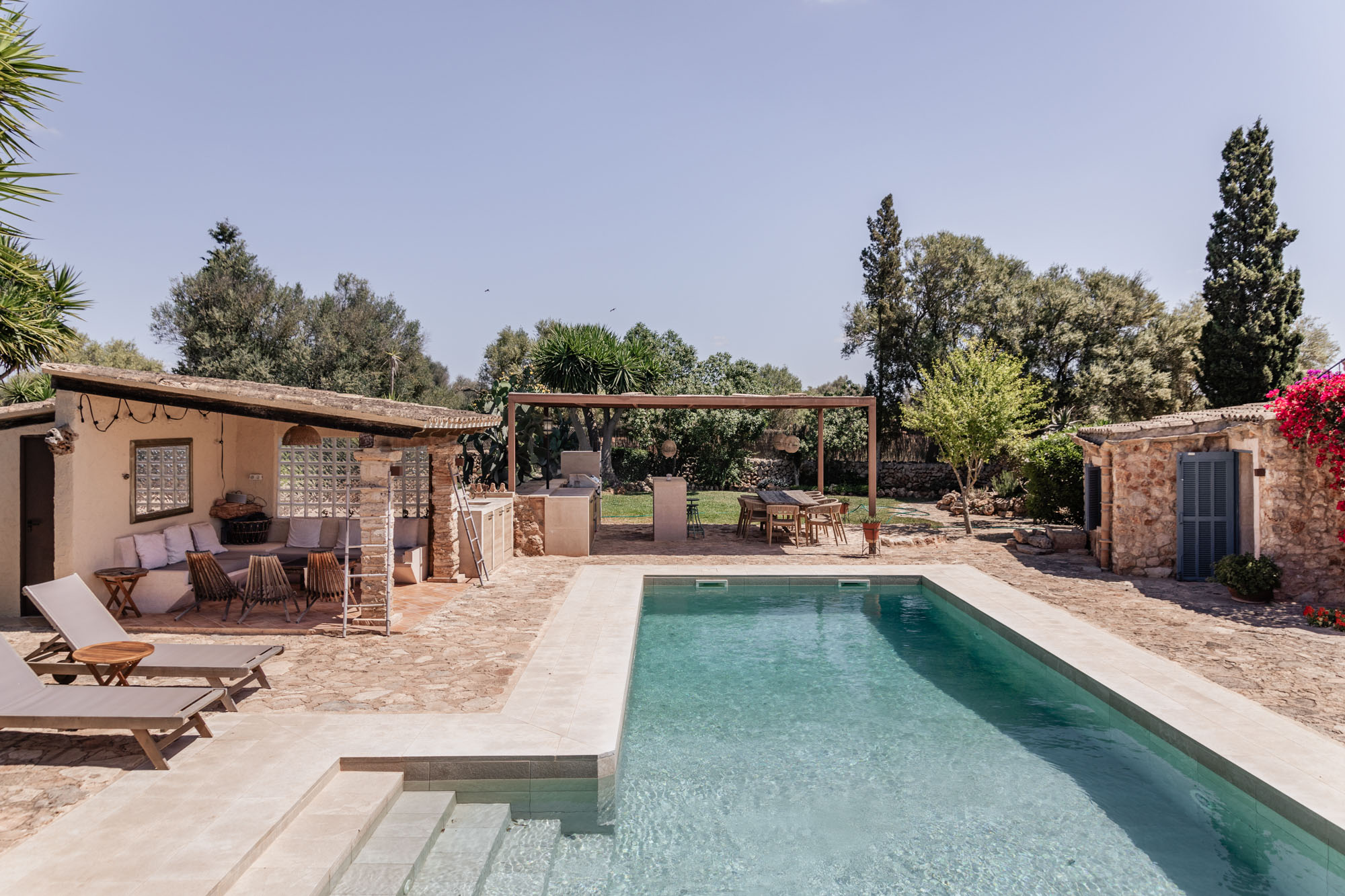 This exceptional home was originally designed as a B&B. The finca has since been lovingly restored with a state-of-the-art kitchen and a large pool, while still honouring the original wooden beams, tiled floors, and playful alcoves. Perfect for large groups of family and friends looking for ample space and blissful privacy.