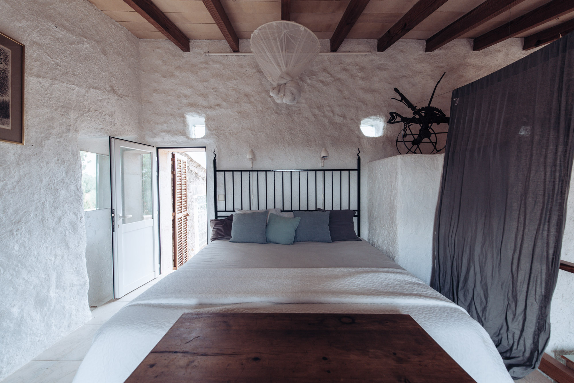 With views over the heated jacuzzi and the turquoise pool, lazy days here will undoubtedly turn into memorable evenings as your group convenes for a sunset apéritif. Dotted around the gardens are sun loungers, a Balinese-style bed, and a shaded pergola with a kitchen, barbecue, and pizza oven. The yurt is an additional useful space, which can be used for yoga or as a children’s play area. The house is surrounded by five hectares of private land, which is abundant with Mediterranean plants, ancient olive trees, cacti, and vibrant flowers.