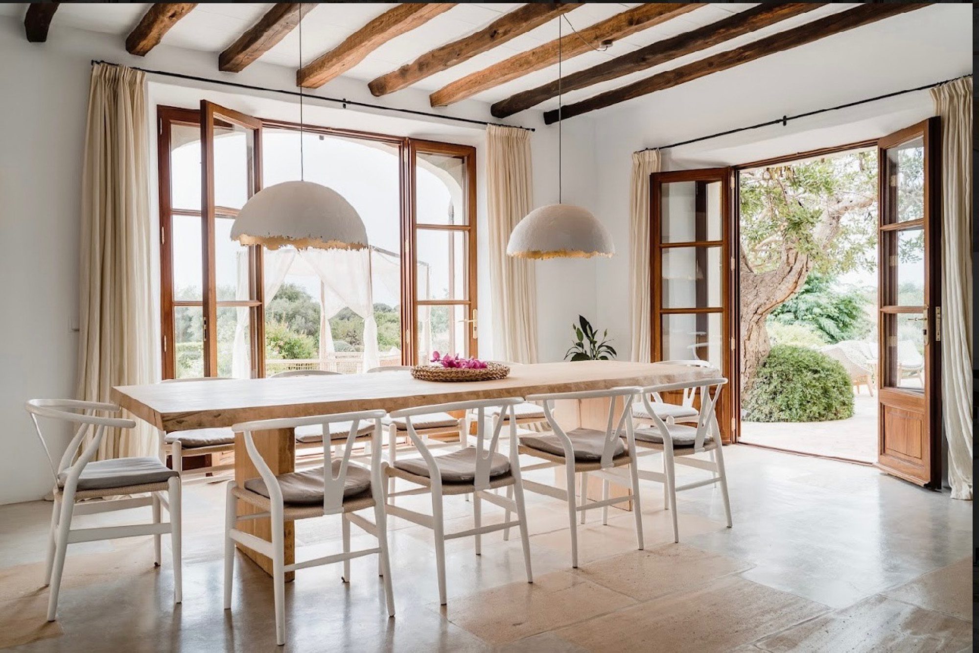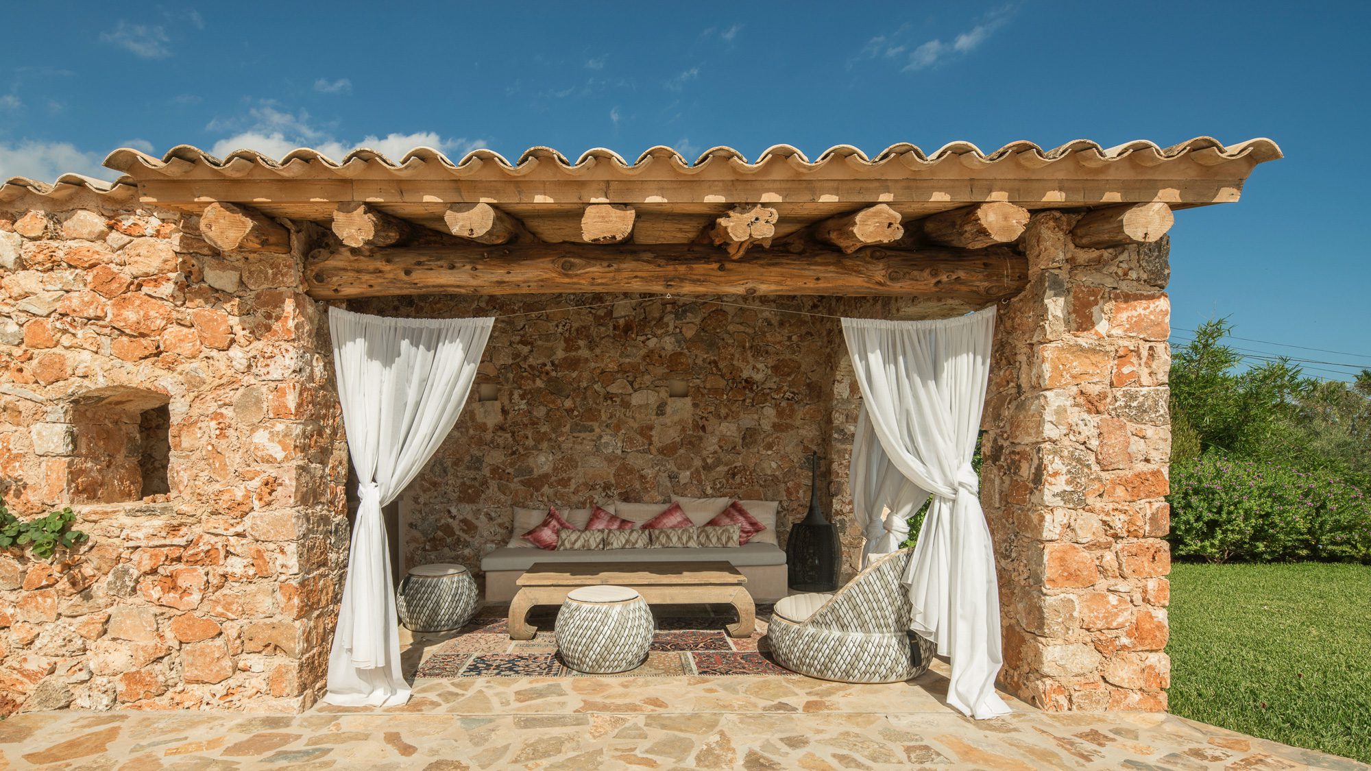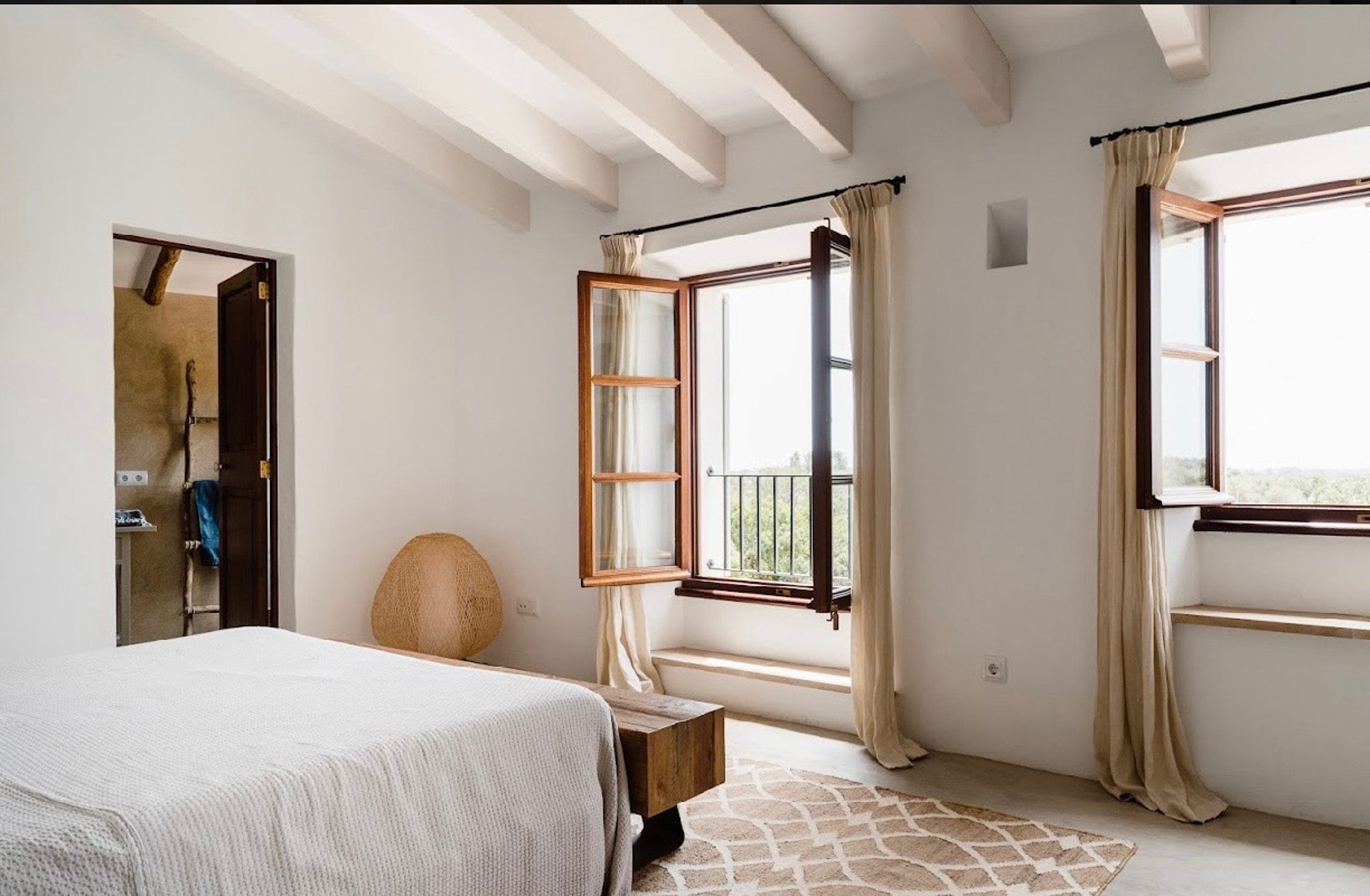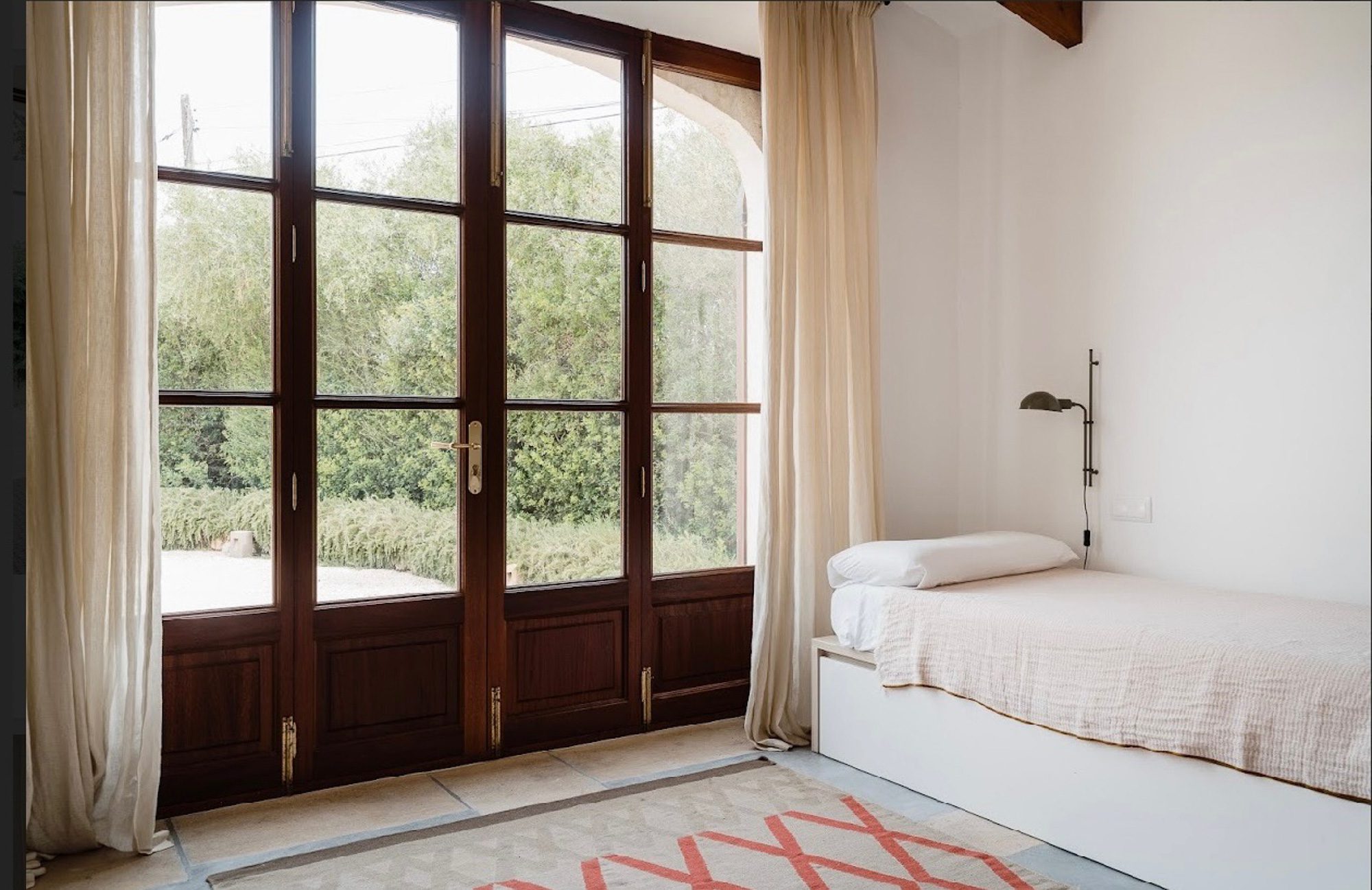 The south-facing garden and extensive grounds merge seamlessly into the fields beyond, thus extending the sense of space. From the first floor of the house, you can see the sea; the nearest sandy beaches are a short drive away at the edge of the Mondrago National Park.