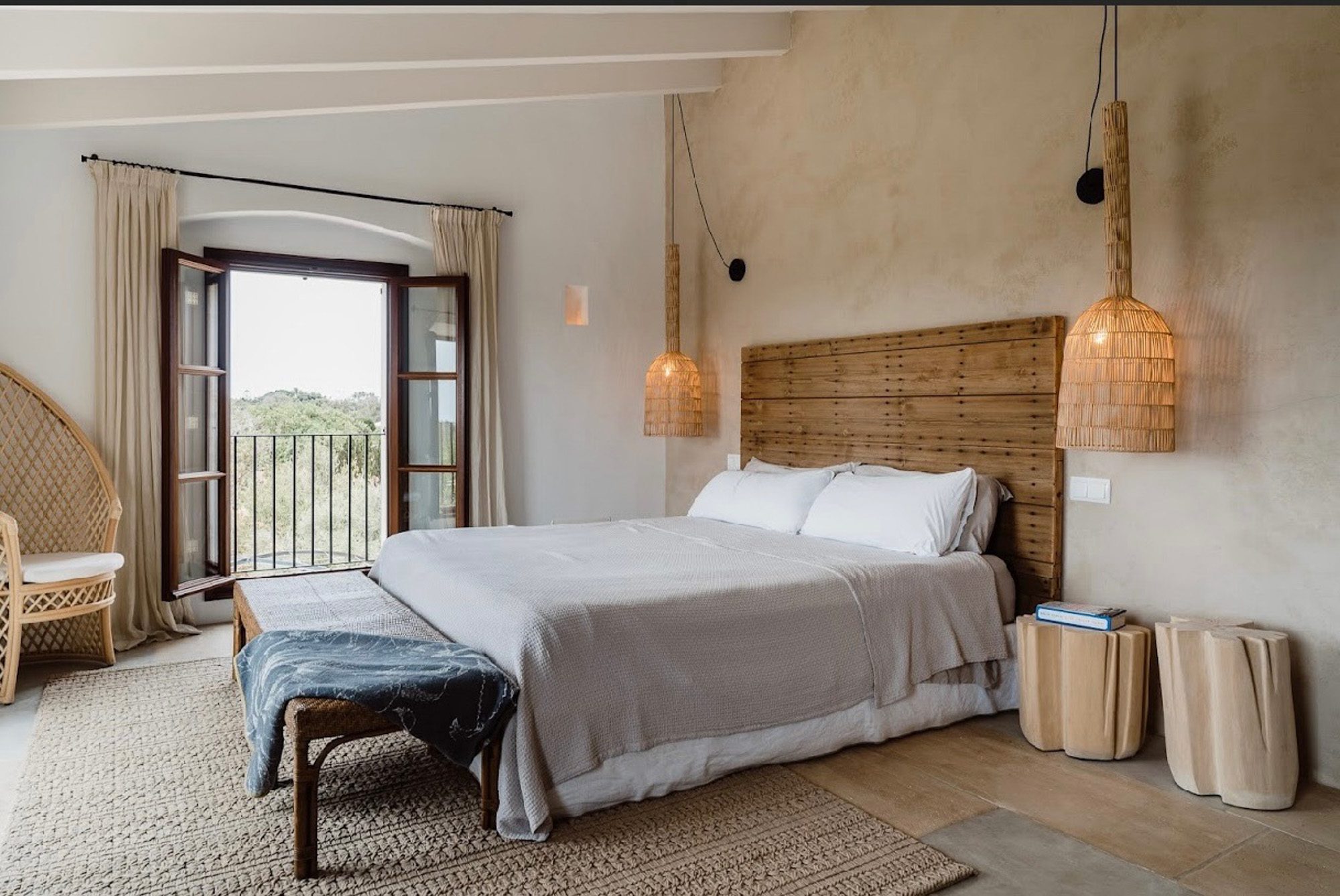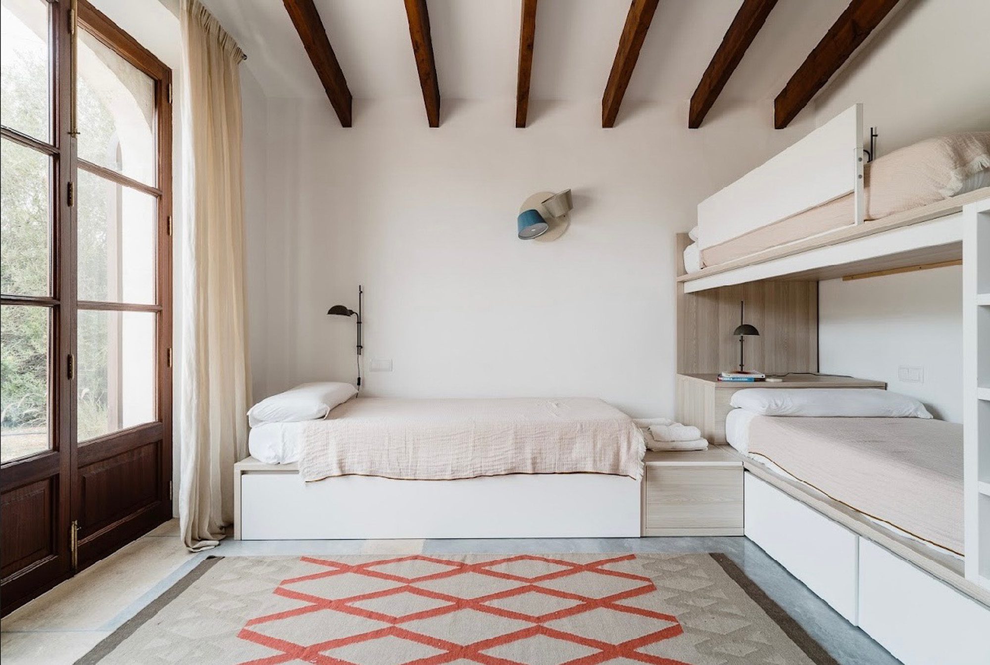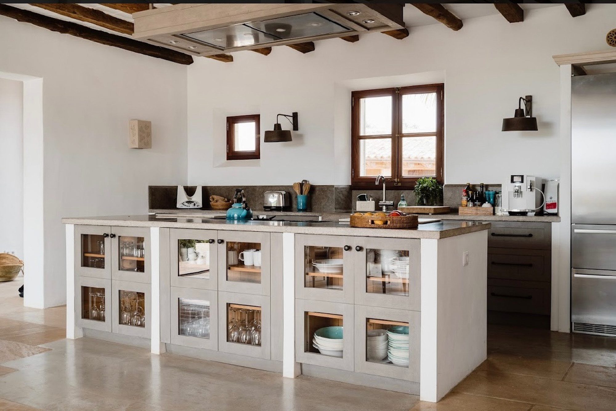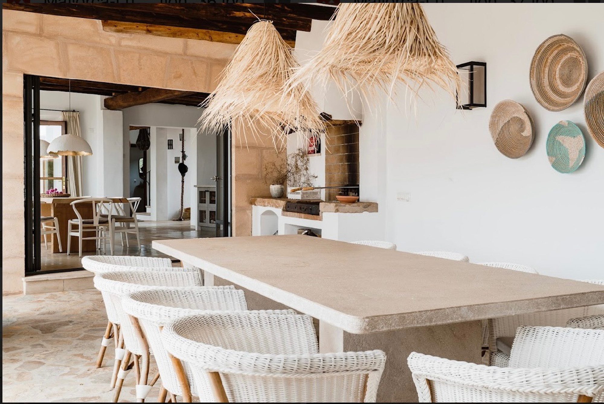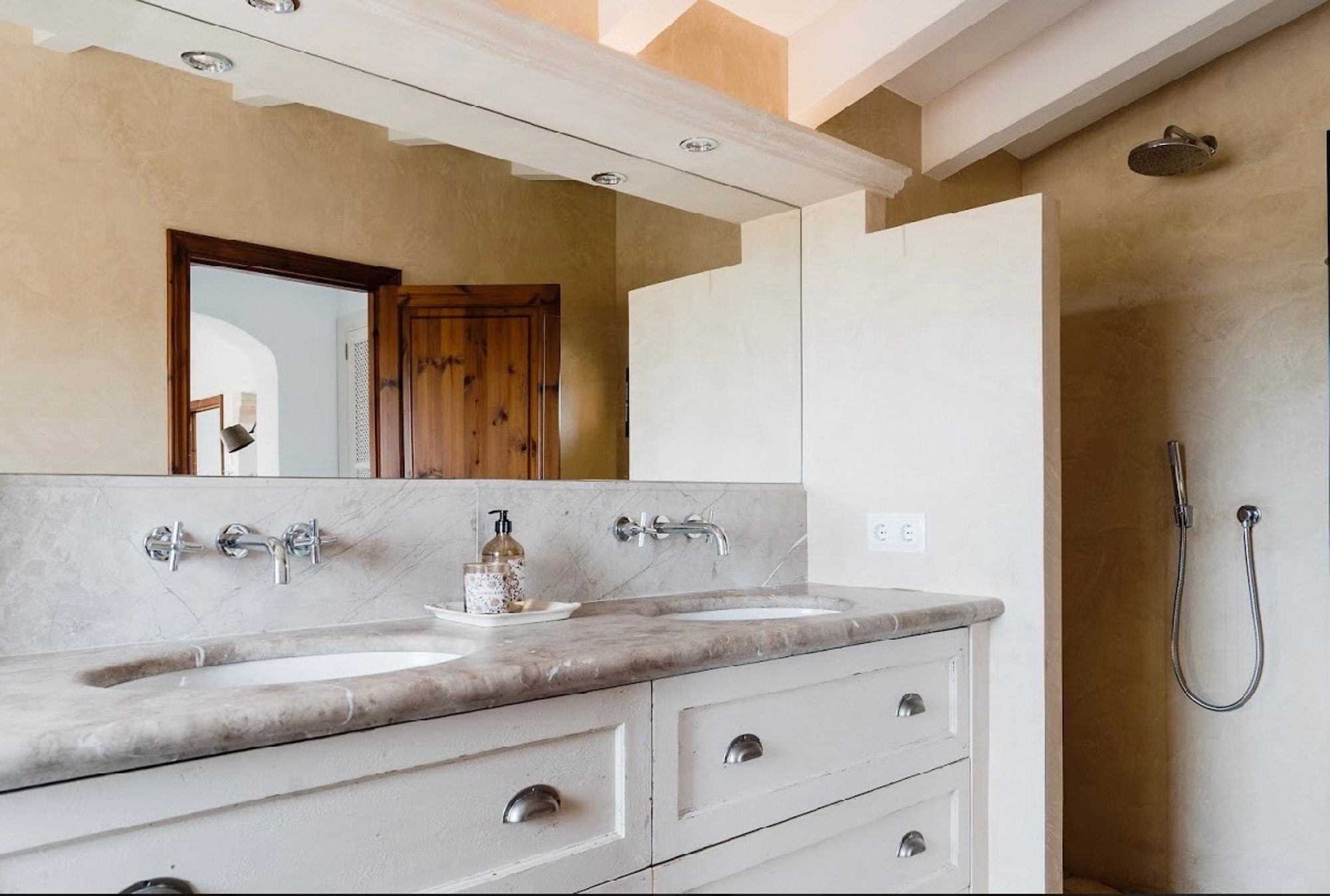 The south-facing garden and extensive grounds merge seamlessly into the fields beyond, thus extending the sense of space. From the first floor of the house, you can see the sea; the nearest sandy beaches are a short drive away at the edge of the Mondrago National Park.