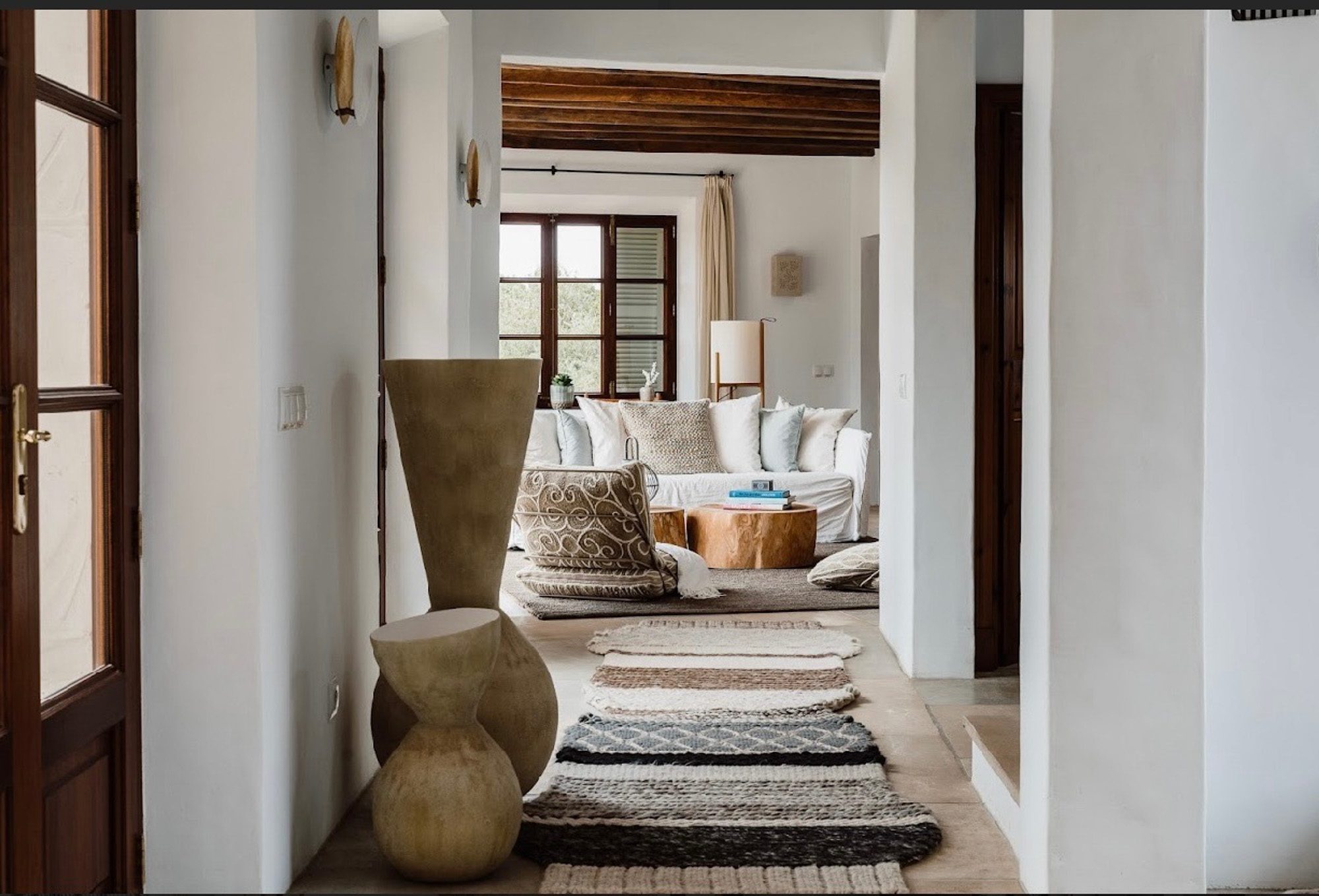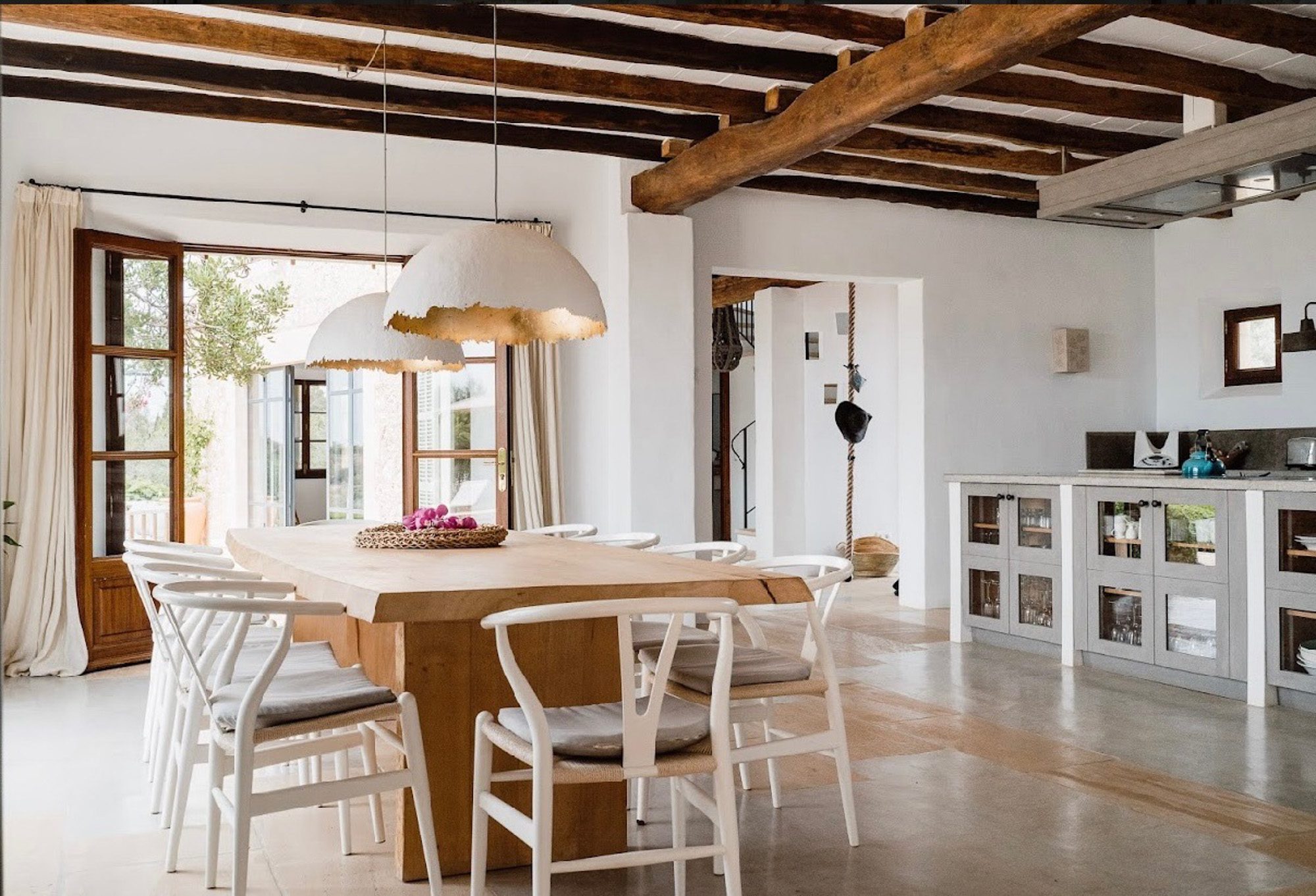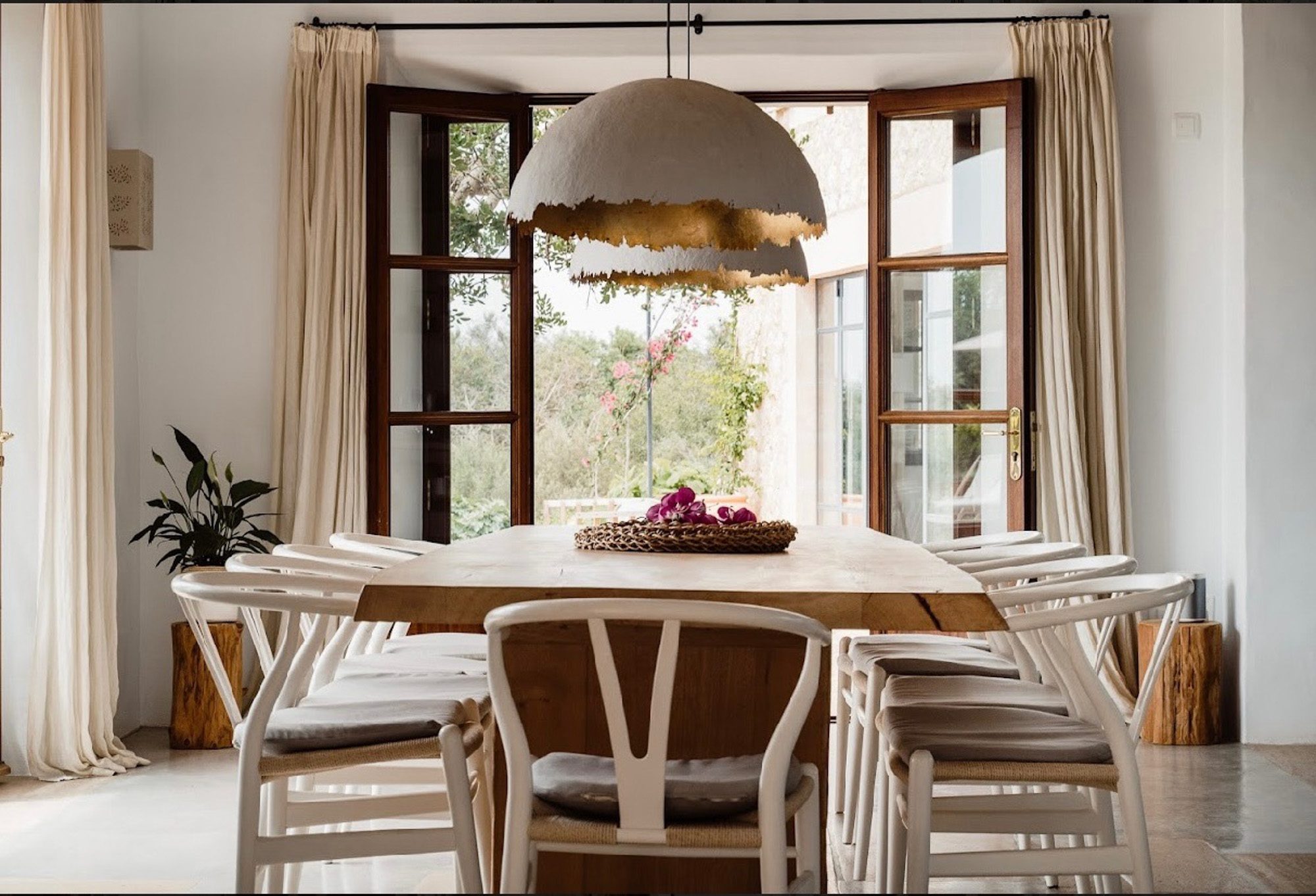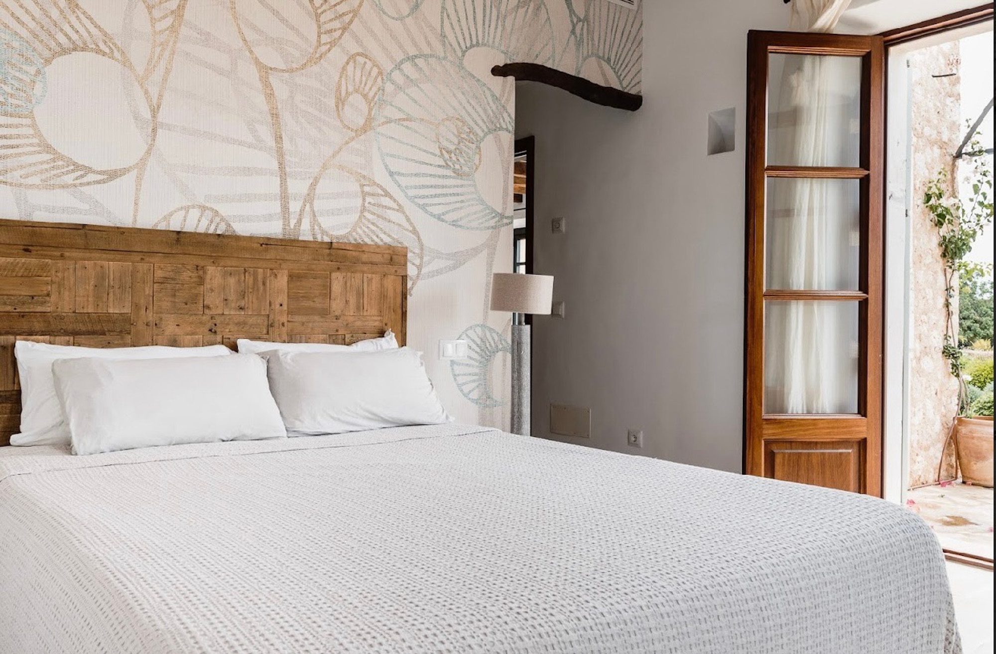 The south-facing garden and extensive grounds merge seamlessly into the fields beyond, thus extending the sense of space. From the first floor of the house, you can see the sea; the nearest sandy beaches are a short drive away at the edge of the Mondrago National Park.