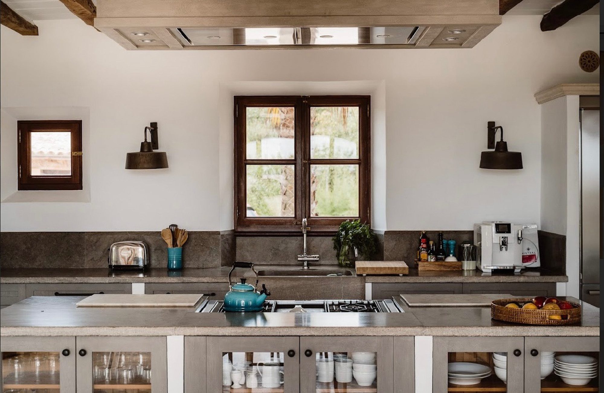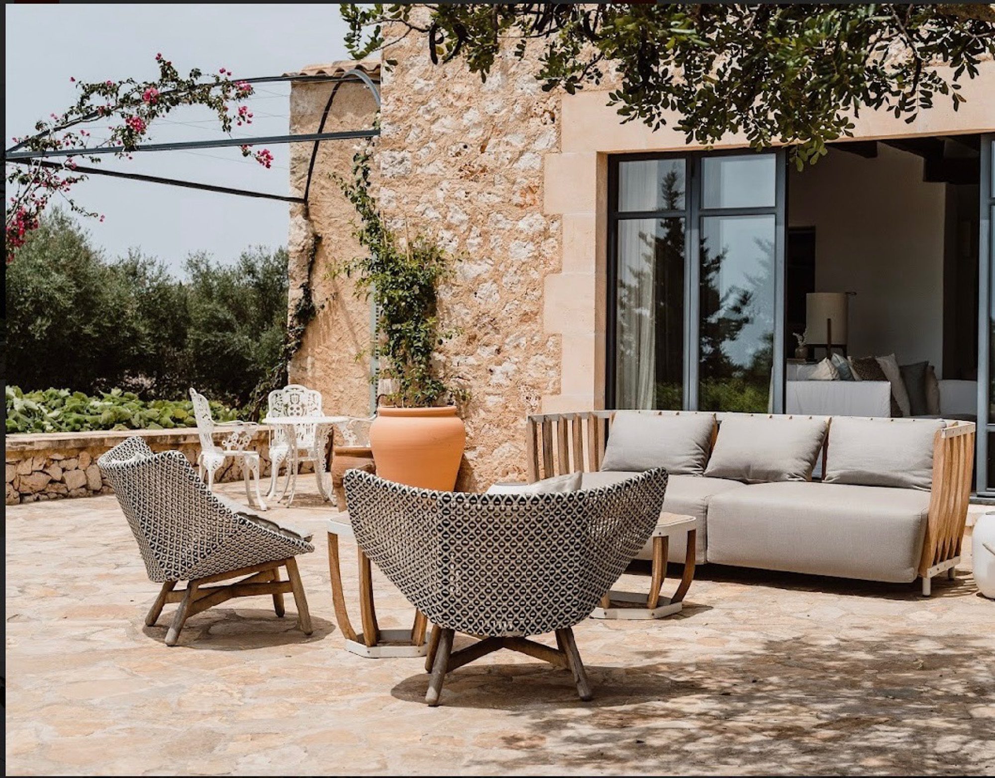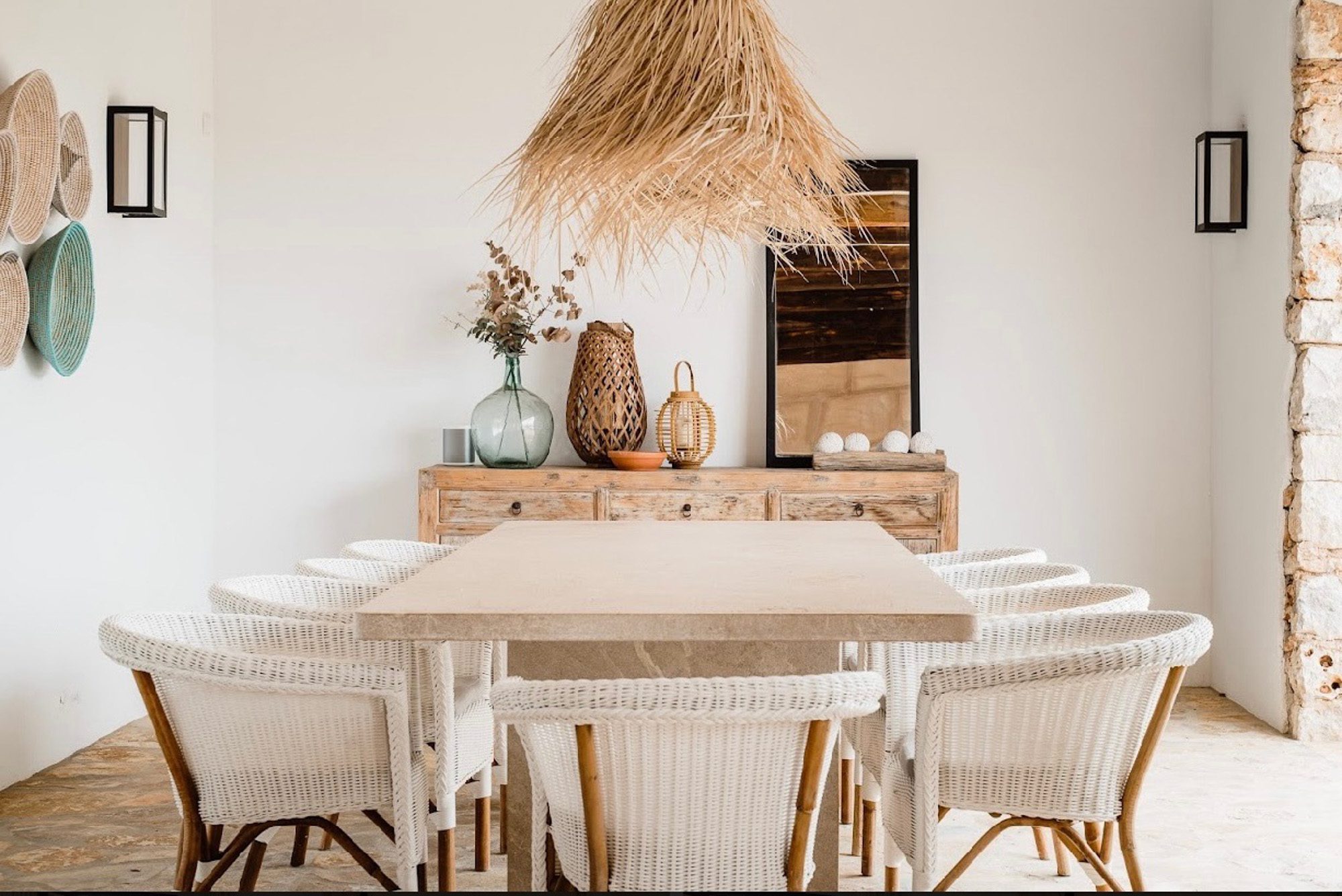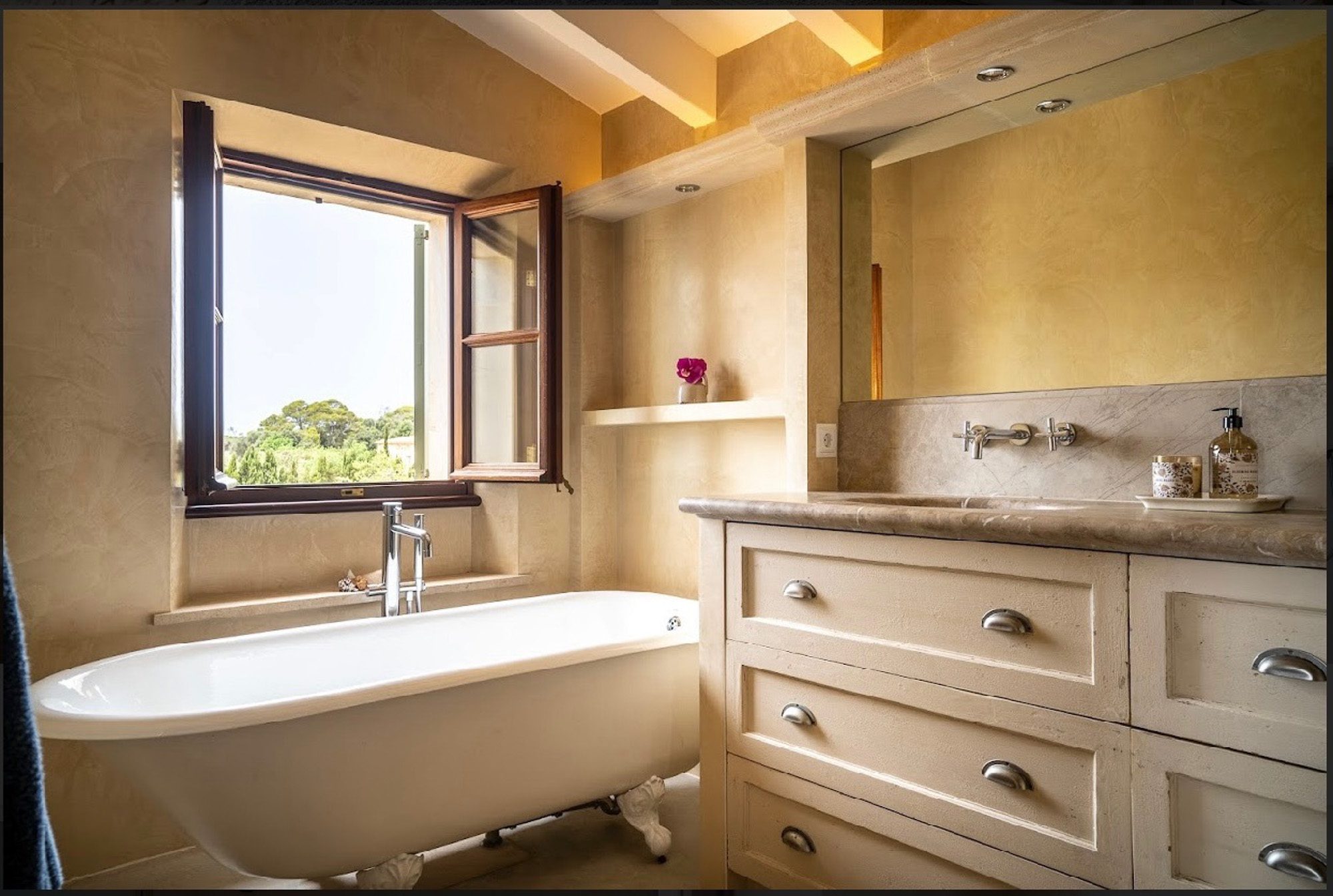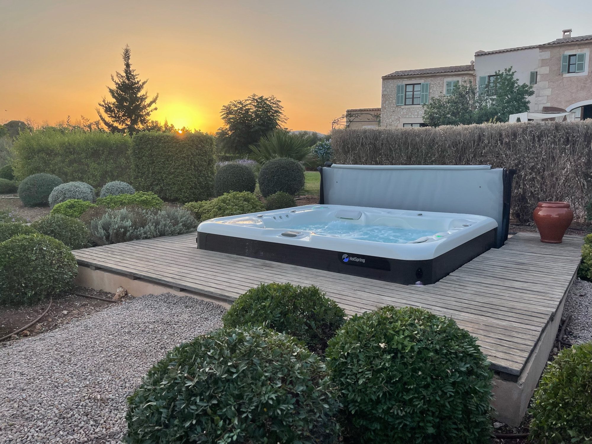 The south-facing garden and extensive grounds merge seamlessly into the fields beyond, thus extending the sense of space. From the first floor of the house, you can see the sea; the nearest sandy beaches are a short drive away at the edge of the Mondrago National Park.