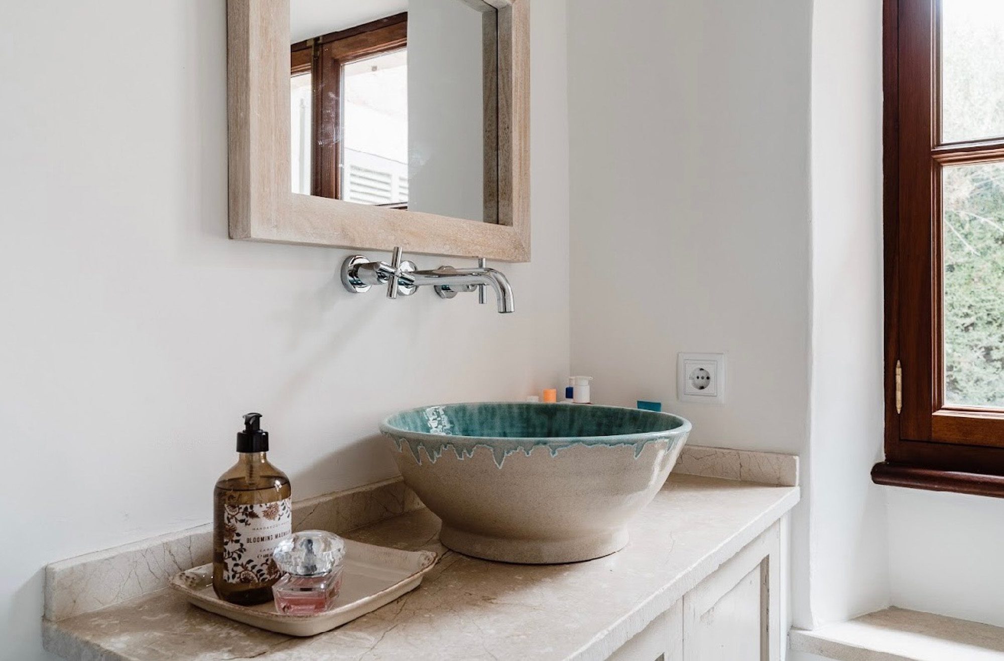 It's set back from the coast, but from the first floor you can spy the sea. The old road to Mondrago runs alongside the property borders, but there's minimal outside noise. S'Alqueria Blanca is a small town a four-minute drive from the villa; it has a few restaurants and bars, a plaza and church and some shops for essentials. Portopetro is a fishing village between Mondrago Natural Park and Cala d'Or which has renowned eateries and laidback bars with harbour views. Beaches S'Amarador and Mondrago are the closest, both on the fringes of Mondrago Natural Park, a five to 10 minute drive away. Both are attractive spots with white sands curved around turquoise waters, and S'Amarador's calm, shallow waters make it family-friendly.