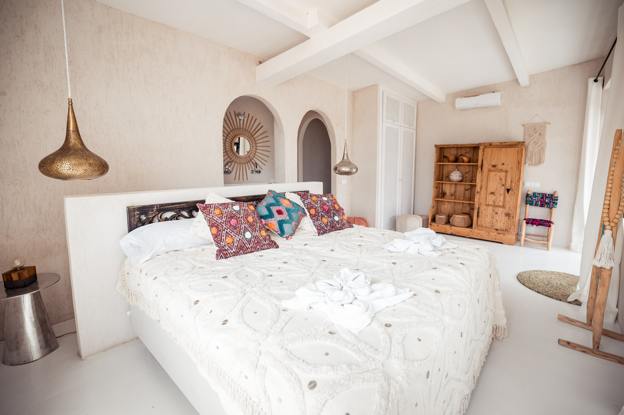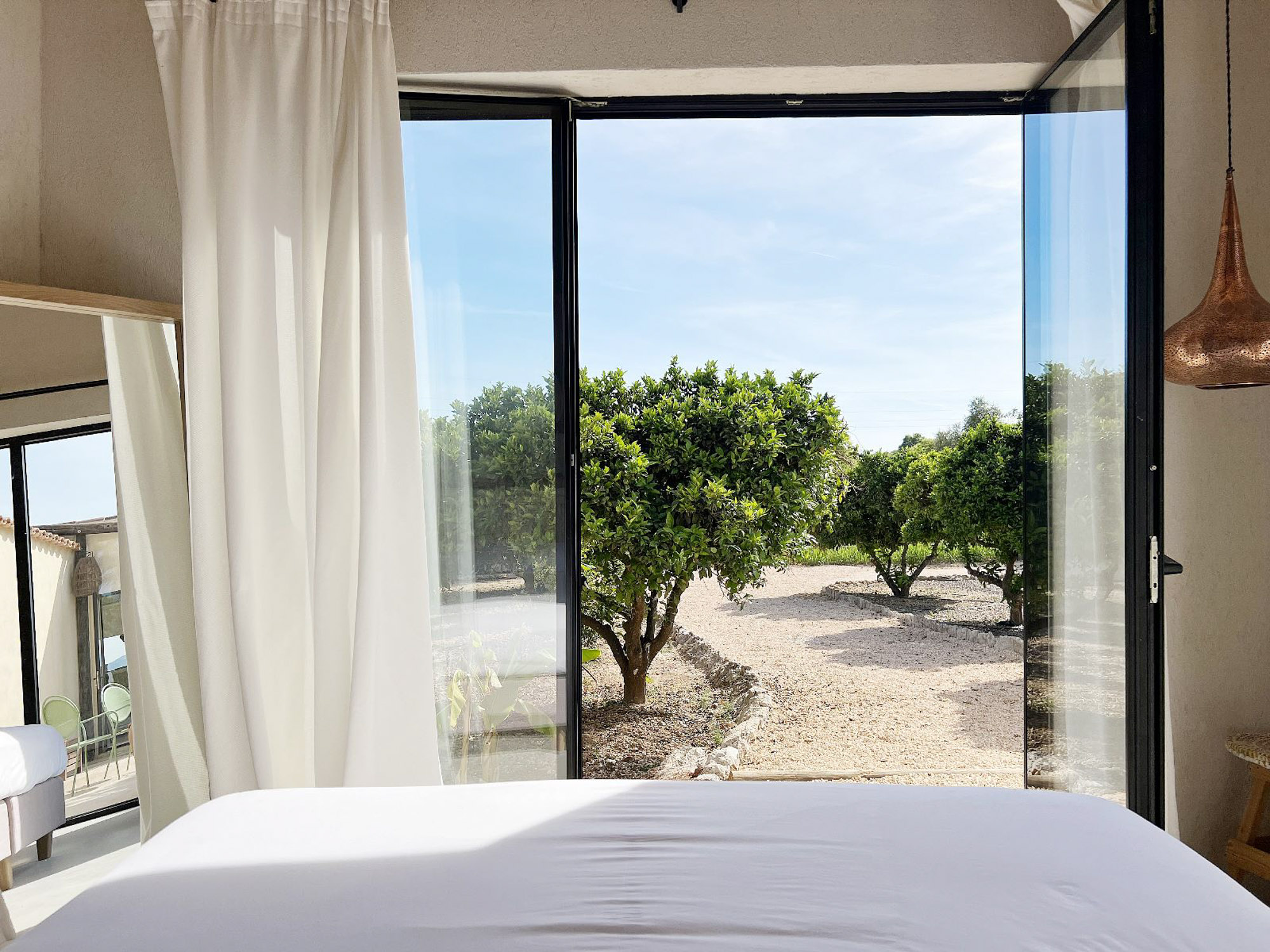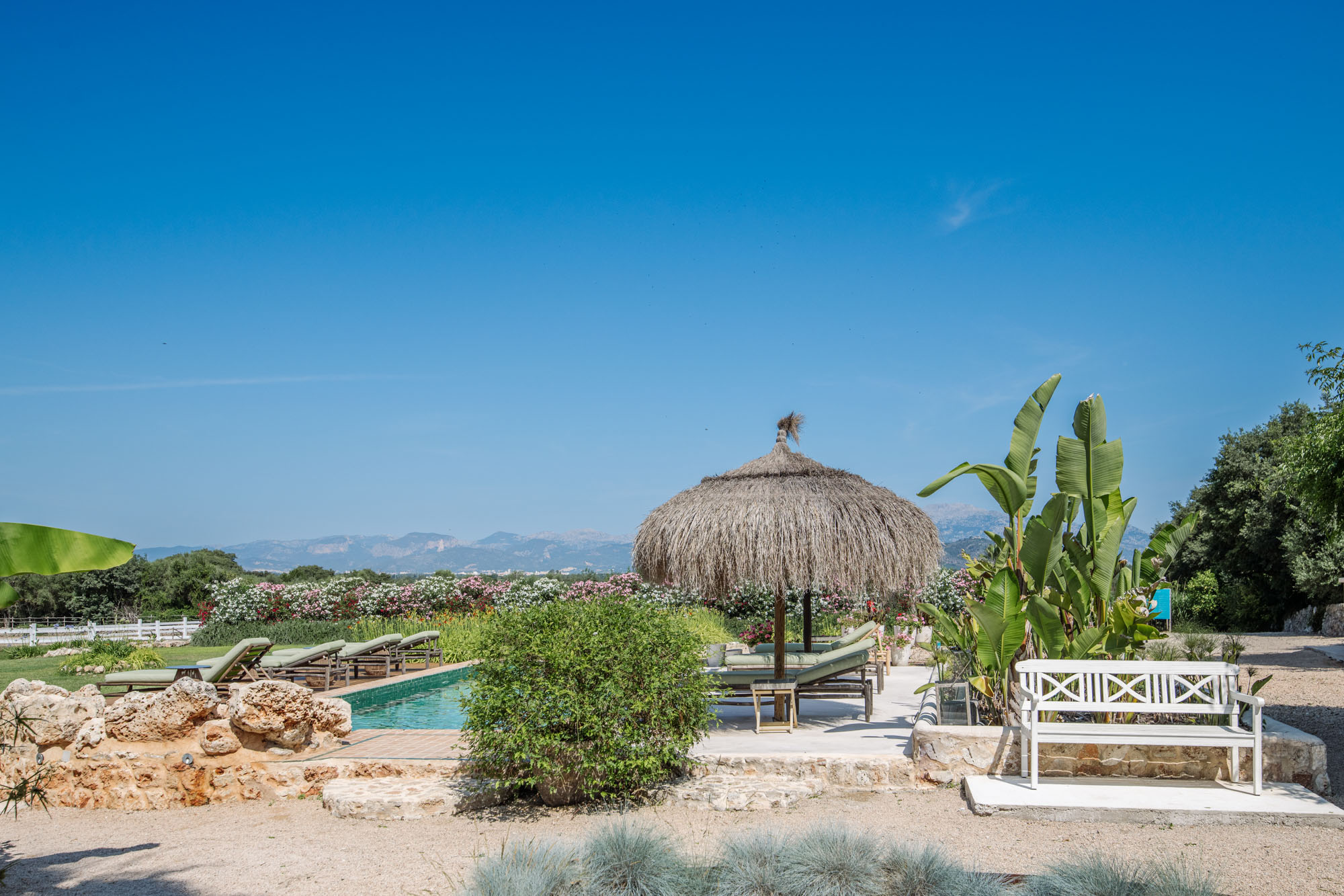 Within the Mediterranean gardens, there’s an inviting tiled pool with handmade wooden loungers and large parasols on the surrounding terrace. There’s also a pétanque court. Fresh vegetables are grown in the organic garden, fruit in the orchard, and olive oil and honey are produced from the Finca’s 100 olive trees and 15 beehives. Riding, yoga instruction, and bike hire can be arranged.