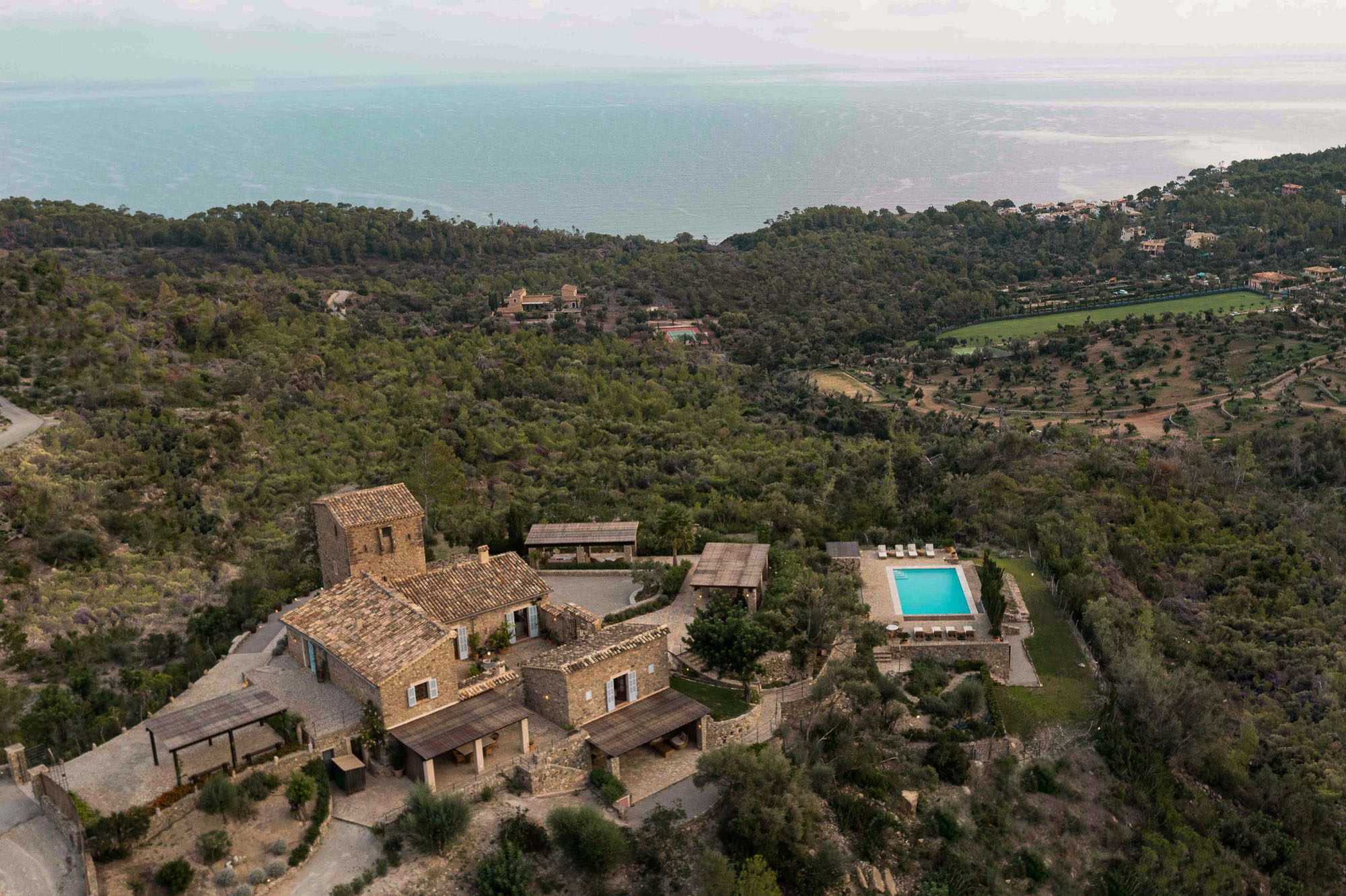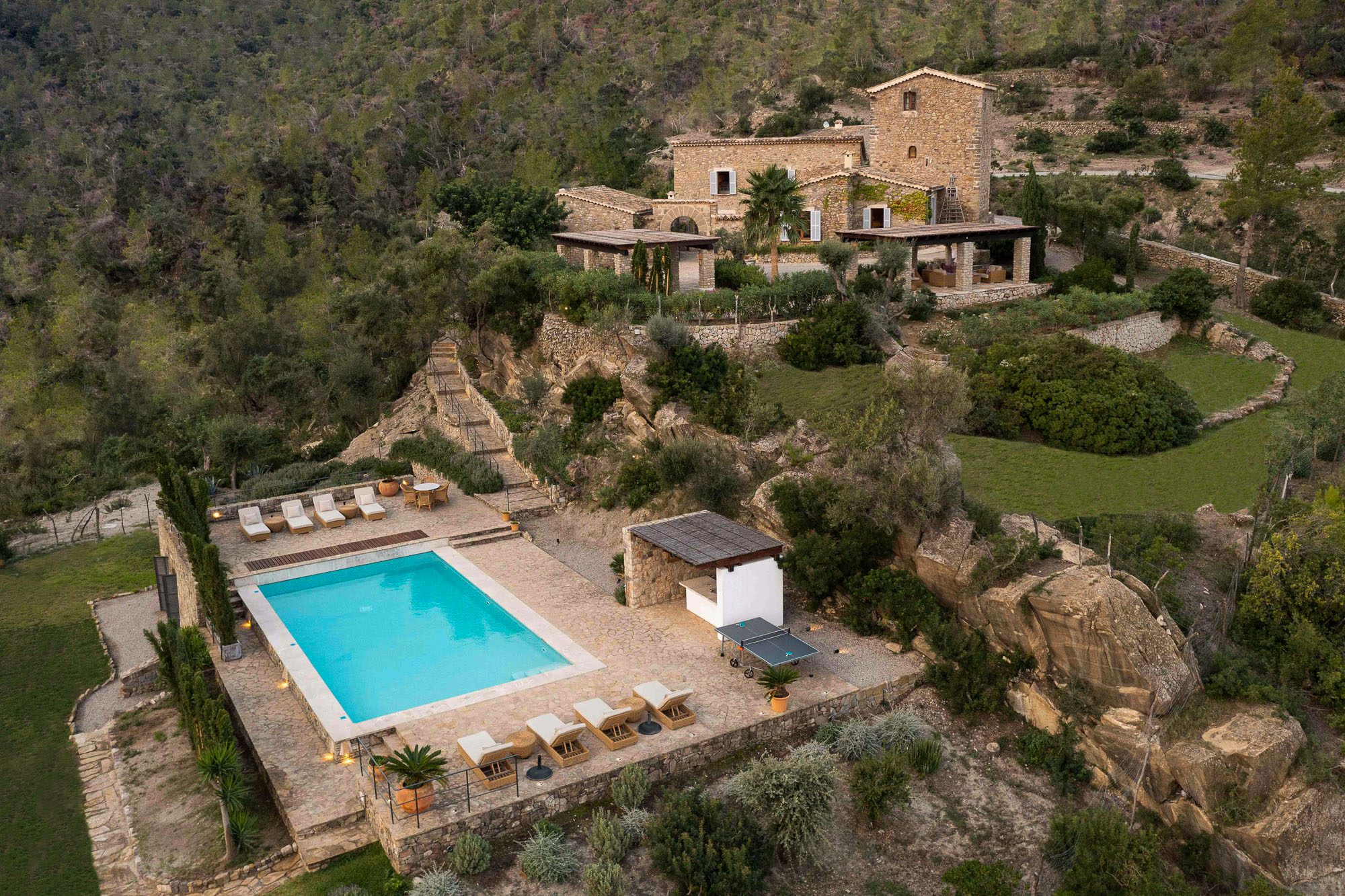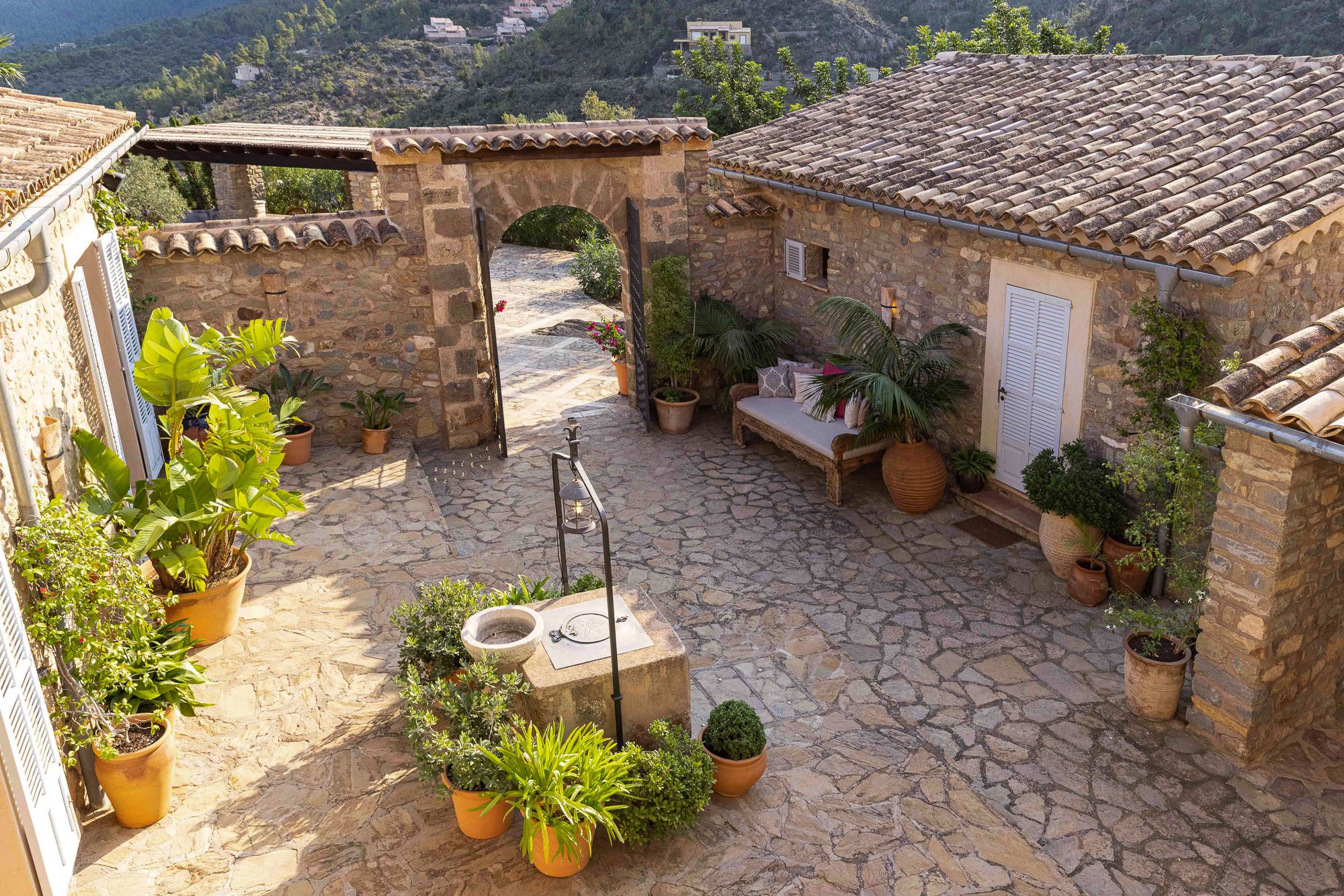 Set in the hills, surrounded by gardens, and views both of the mountains and the Mediterranean sea, it's very peaceful with its own gated driveway and a great place for family or group holiday. The charming town of Banyalbufar, picturesque Esporles and Son Bunyola beach are all within a half hour's drive.