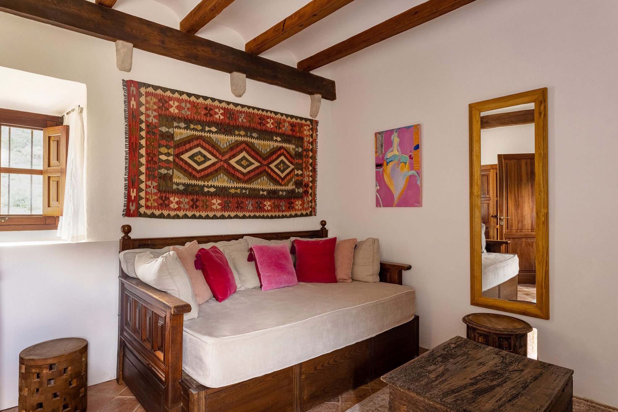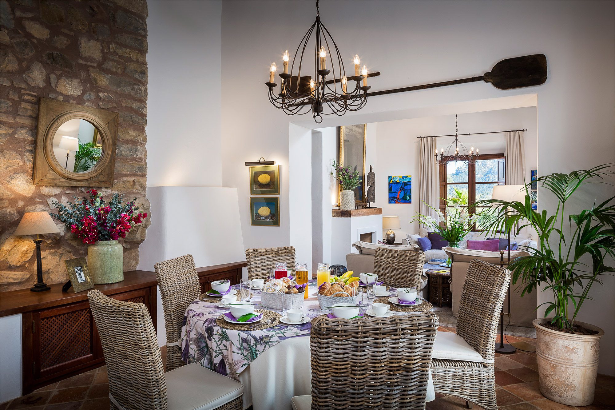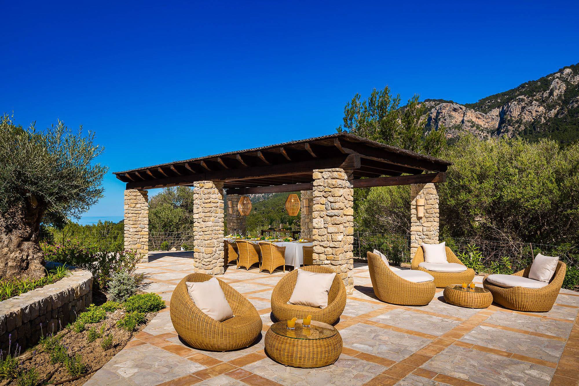 Set in the hills, surrounded by gardens, and views both of the mountains and the Mediterranean sea, it's very peaceful with its own gated driveway and a great place for family or group holiday. The charming town of Banyalbufar, picturesque Esporles and Son Bunyola beach are all within a half hour's drive.