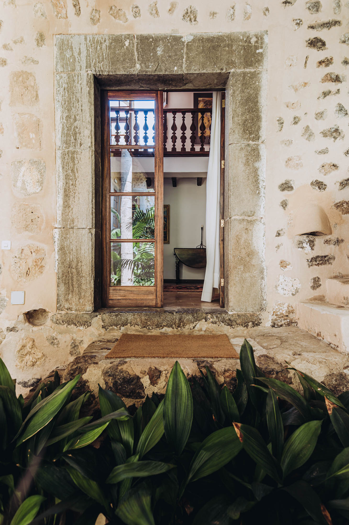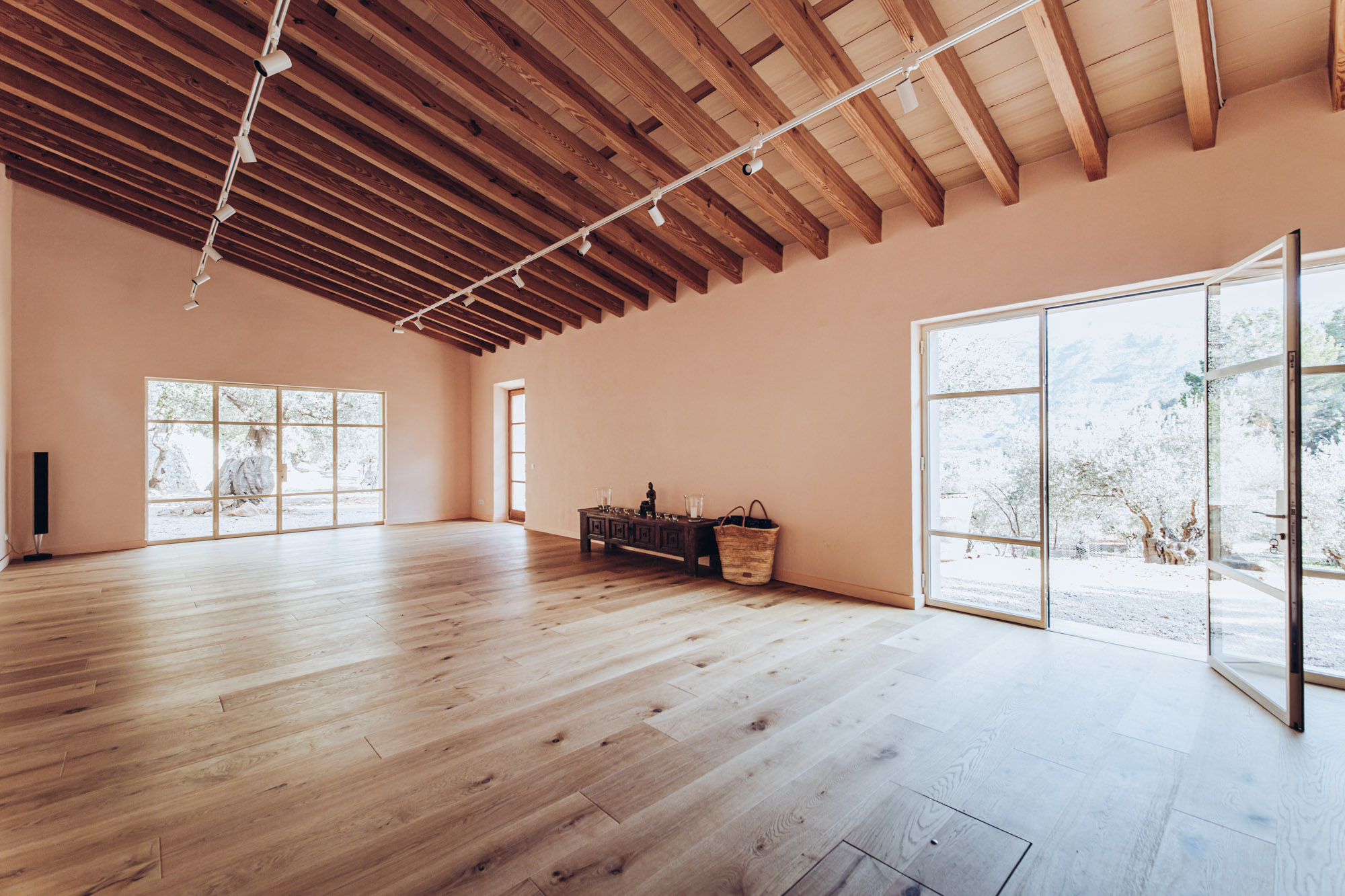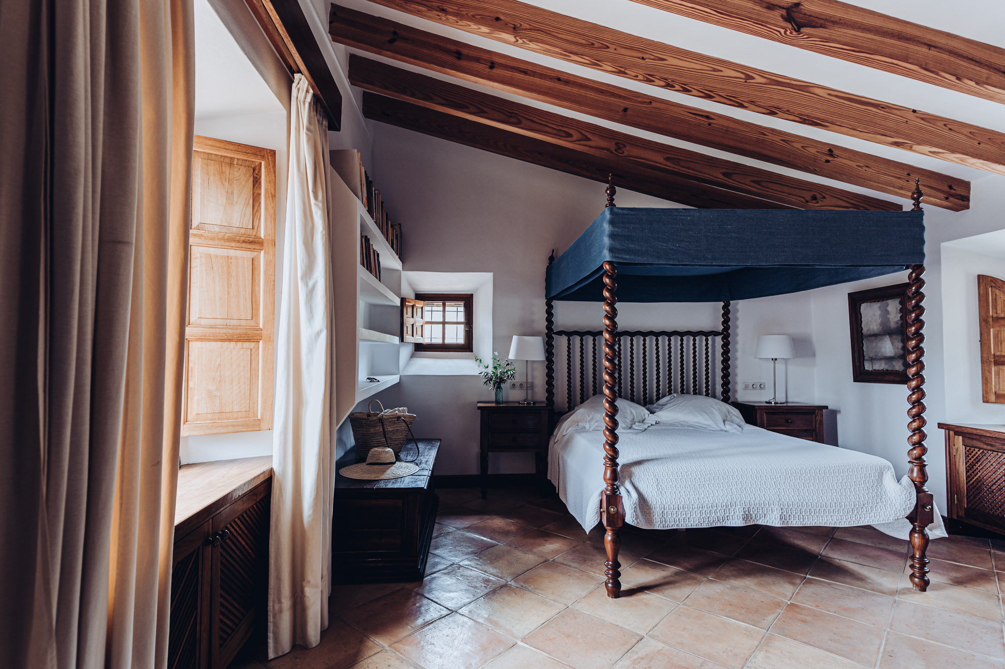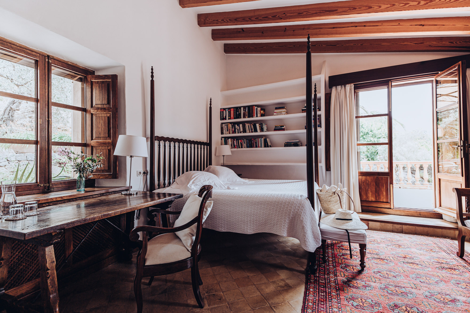 As the amber sun sets across the valley, you could watch the colours of the mountains turn pink from this privileged spot — nestled high in the hills, and far away from the crowds. Originally used to produce olive oil, Son Salas is now centred around a verdant courtyard, the heart of the home. The dining room still features large stone pieces from the original pressing system.