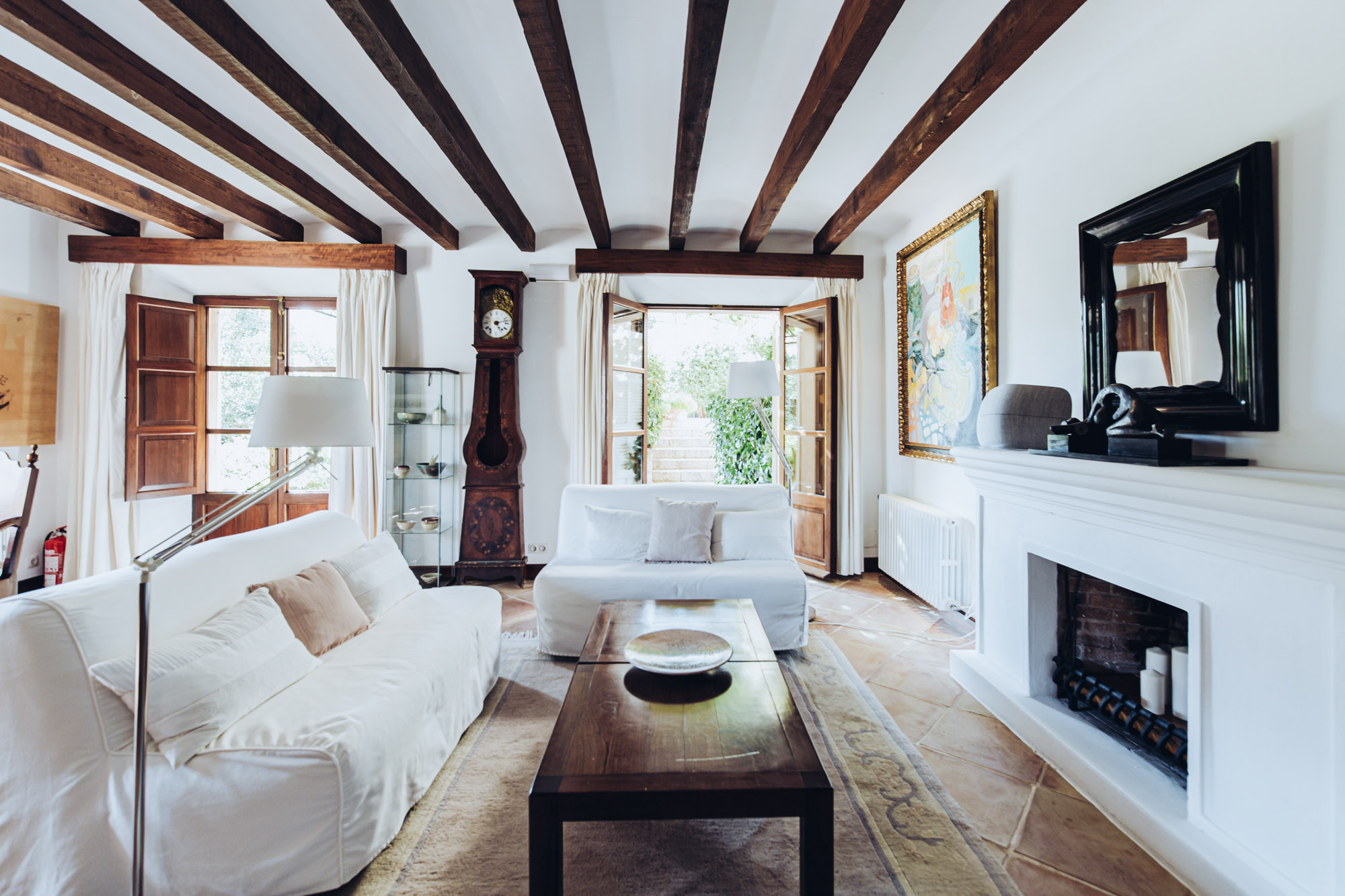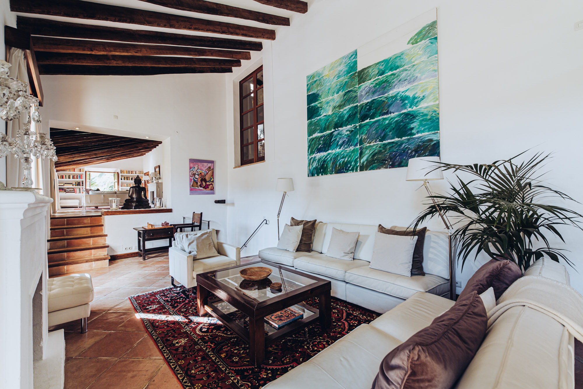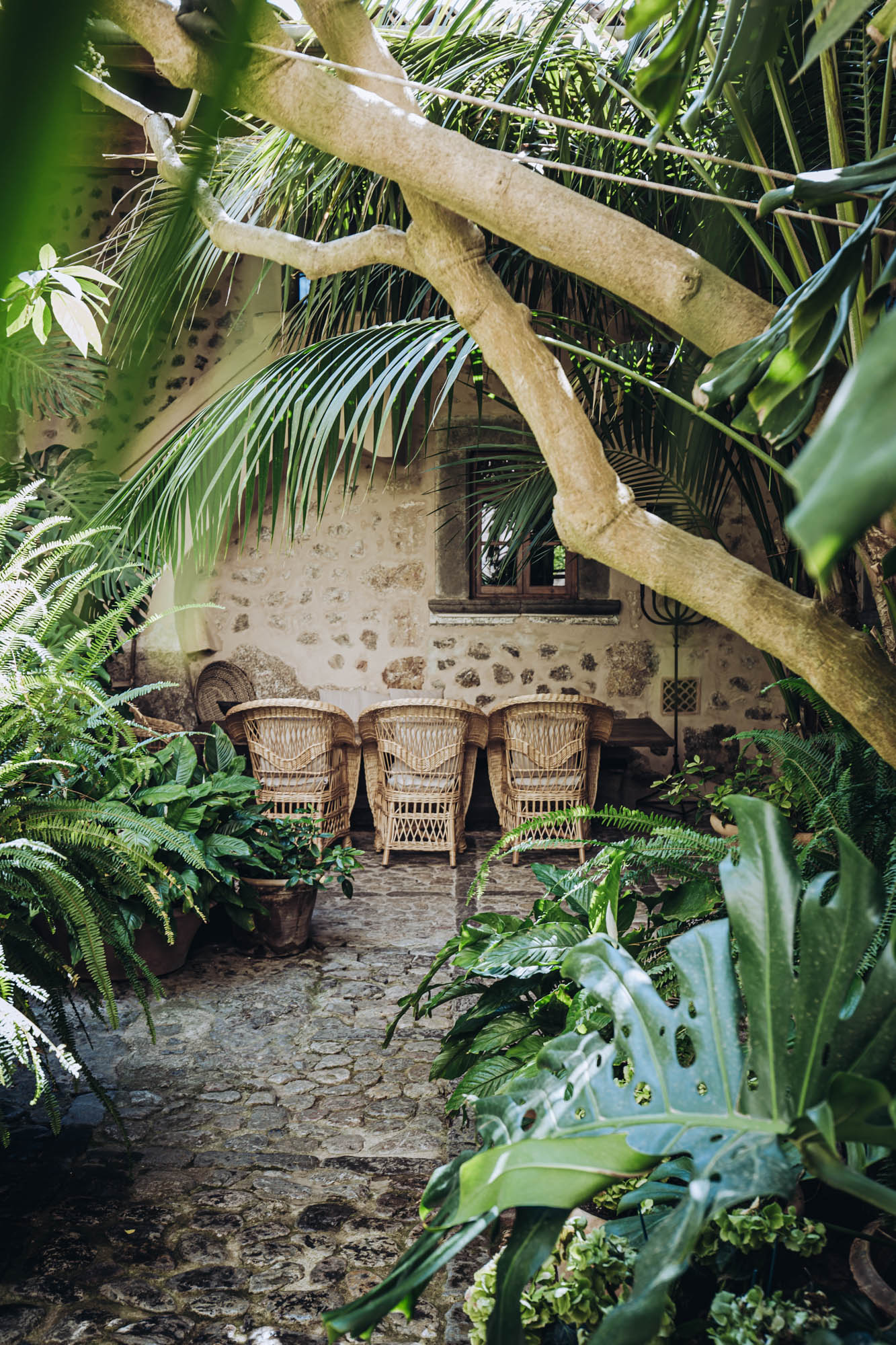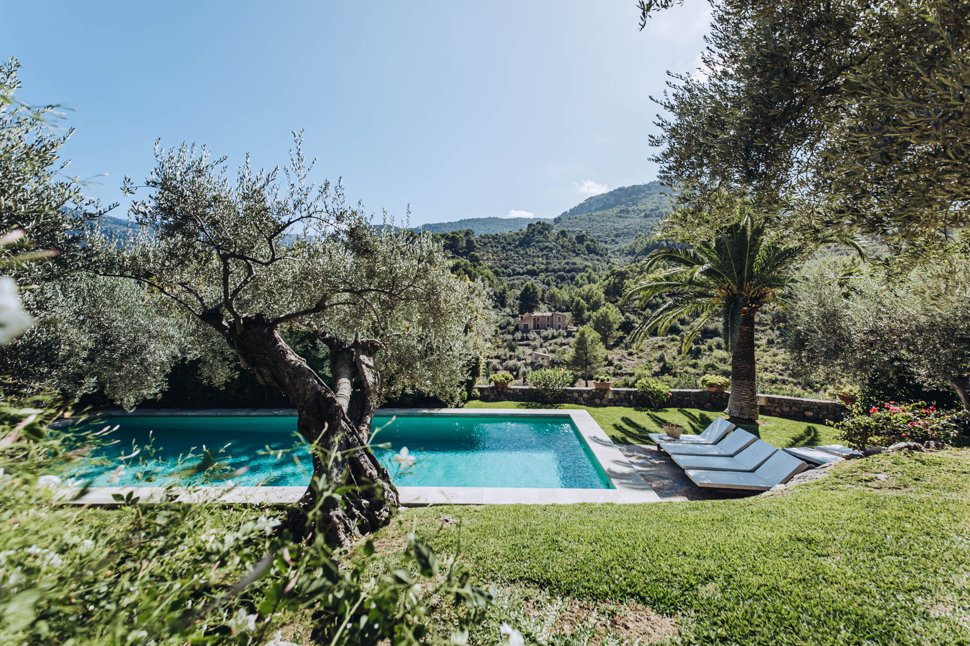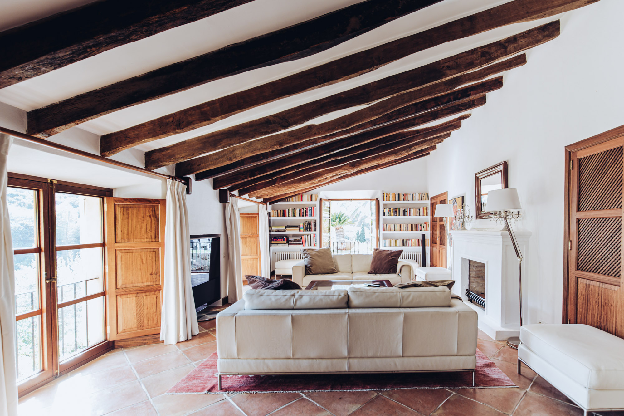 As the amber sun sets across the valley, you could watch the colours of the mountains turn pink from this privileged spot — nestled high in the hills, and far away from the crowds. Originally used to produce olive oil, Son Salas is now centred around a verdant courtyard, the heart of the home. The dining room still features large stone pieces from the original pressing system.