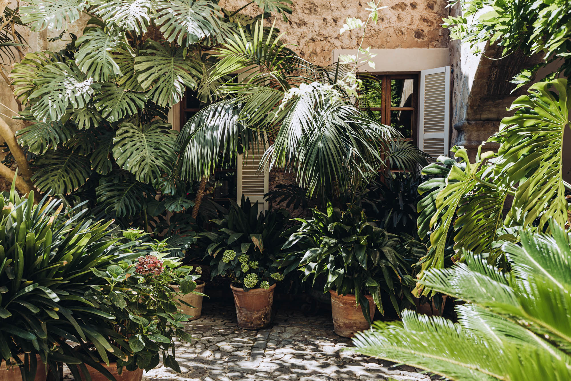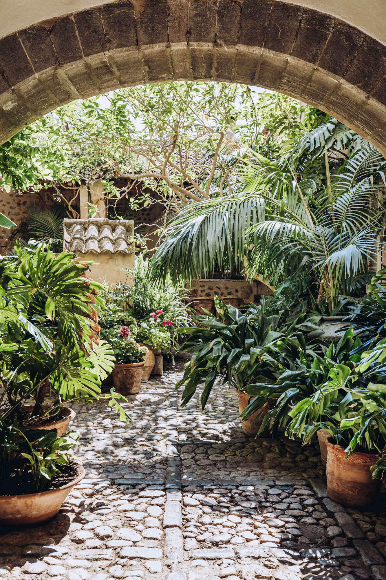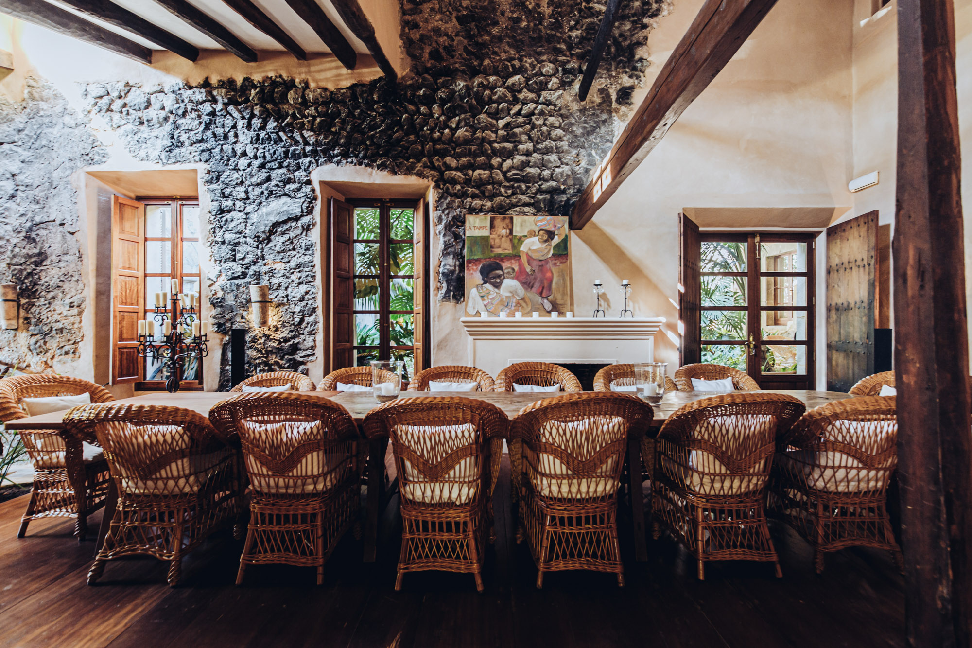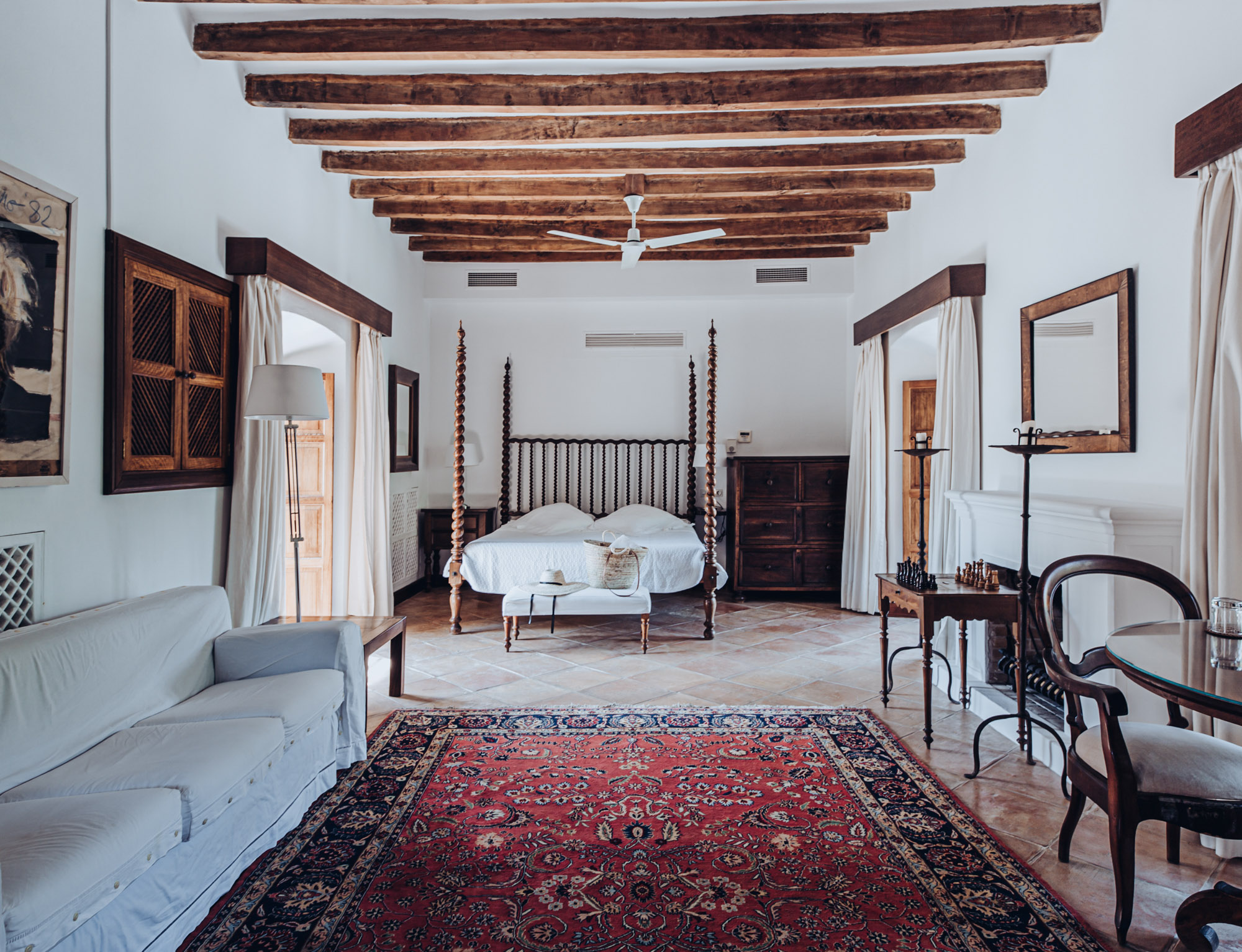 As the amber sun sets across the valley, you could watch the colours of the mountains turn pink from this privileged spot — nestled high in the hills, and far away from the crowds. Originally used to produce olive oil, Son Salas is now centred around a verdant courtyard, the heart of the home. The dining room still features large stone pieces from the original pressing system.