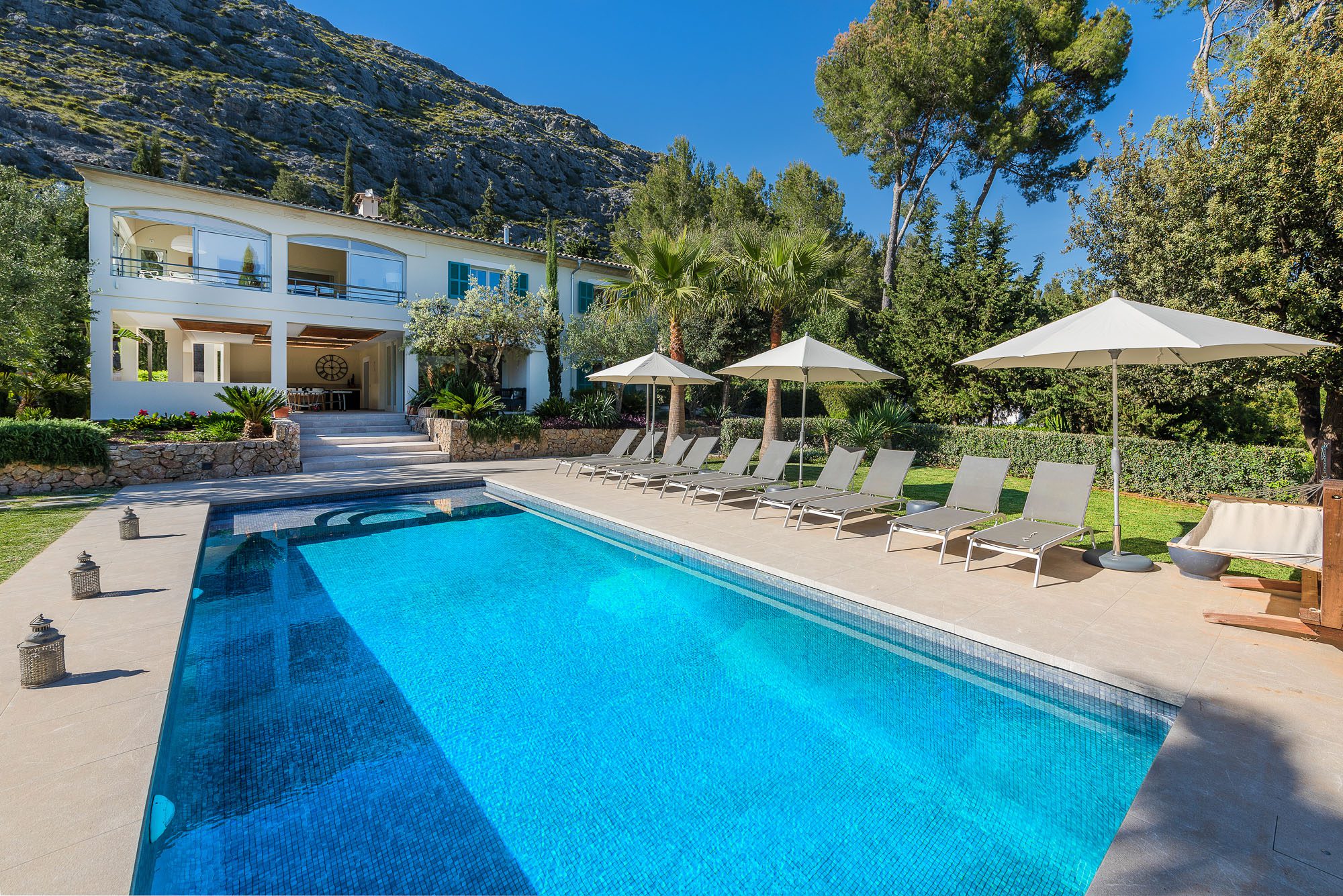 Surrounded by picturesque Spanish countryside, the villa is just a short stroll from the charming old town of Pollenca. Additionally, the famous turquoise waters and sandy beaches of Cala San Vicente and Puerto Pollenca are only five minutes away, making it a perfect location for peace and adventure.
