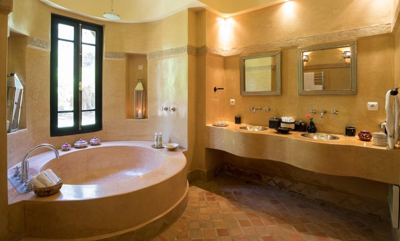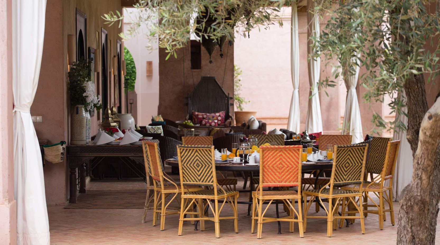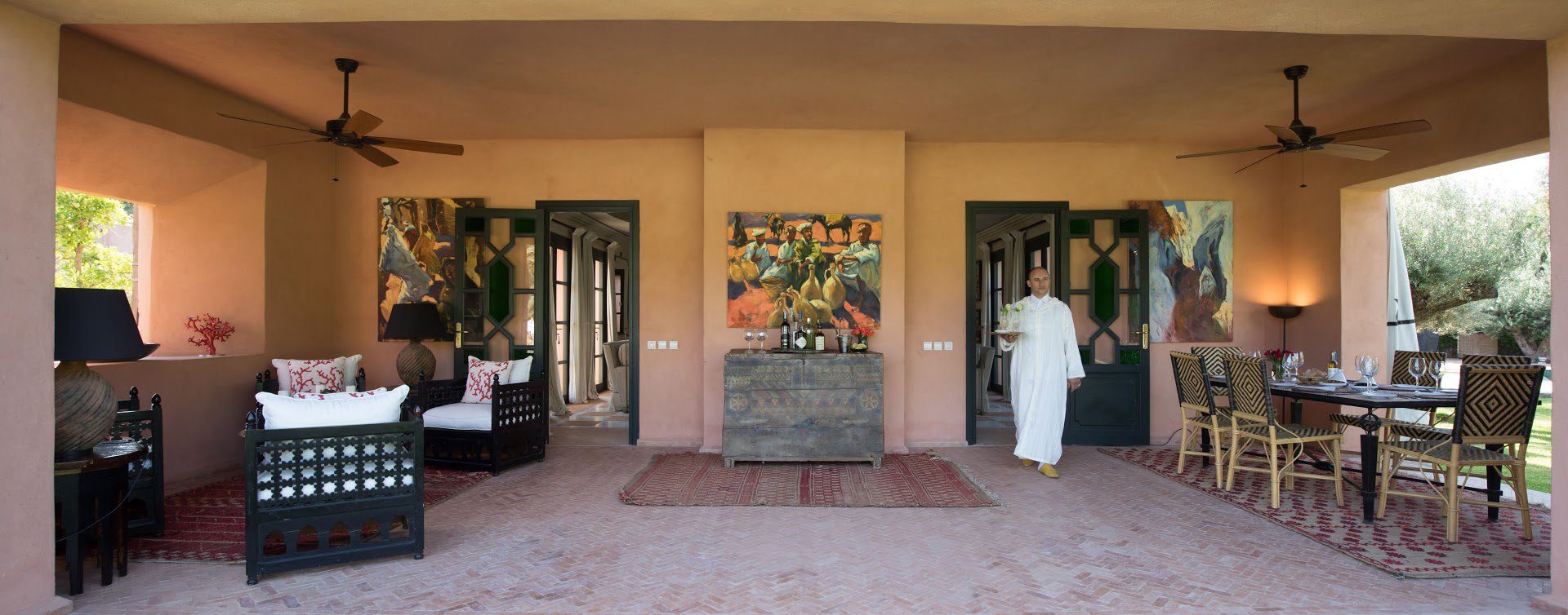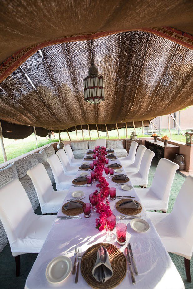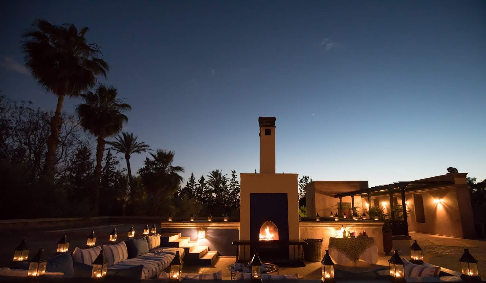 The largest villa has a vast Berber tent in the garden, with comfortable seating where all guests can gather for evening drinks. The large lawns and spacious terraces can be set up for al fresco dining, as well as a new outdoor cinema. Lit by lanterns, with the palms and olives as a backdrop, it's a memorable setting for dinner. Mealtimes are up to you, and the menus include Moroccan and European dishes.
