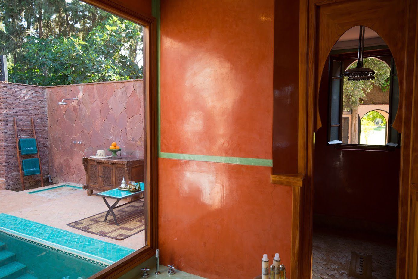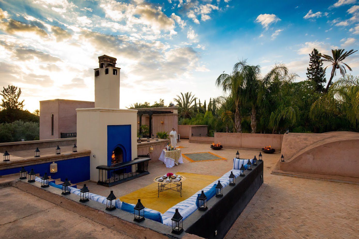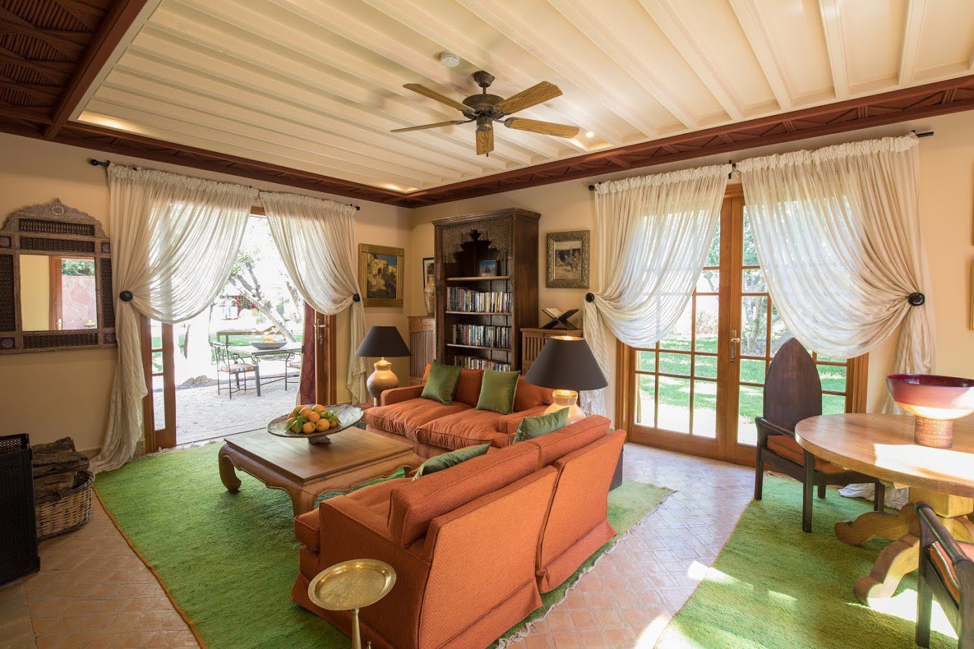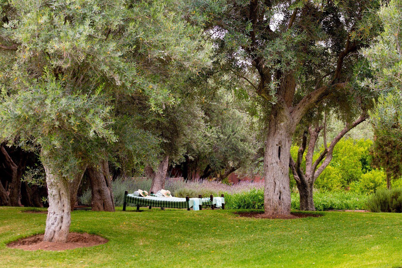The largest villa has a vast Berber tent in the garden, with comfortable seating where all guests can gather for evening drinks. The large lawns and spacious terraces can be set up for al fresco dining, as well as a new outdoor cinema. Lit by lanterns, with the palms and olives as a backdrop, it's a memorable setting for dinner. Mealtimes are up to you, and the menus include Moroccan and European dishes.