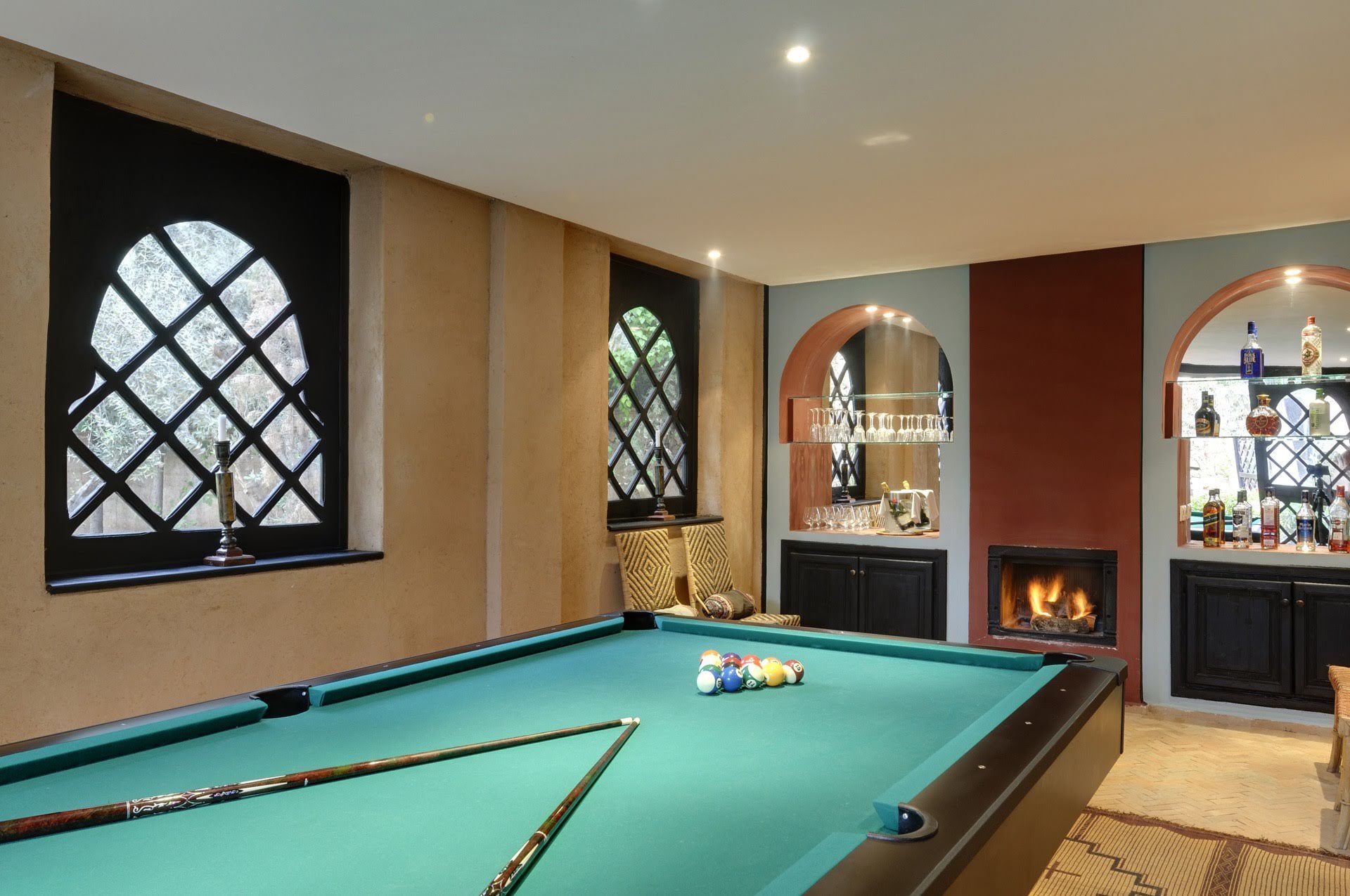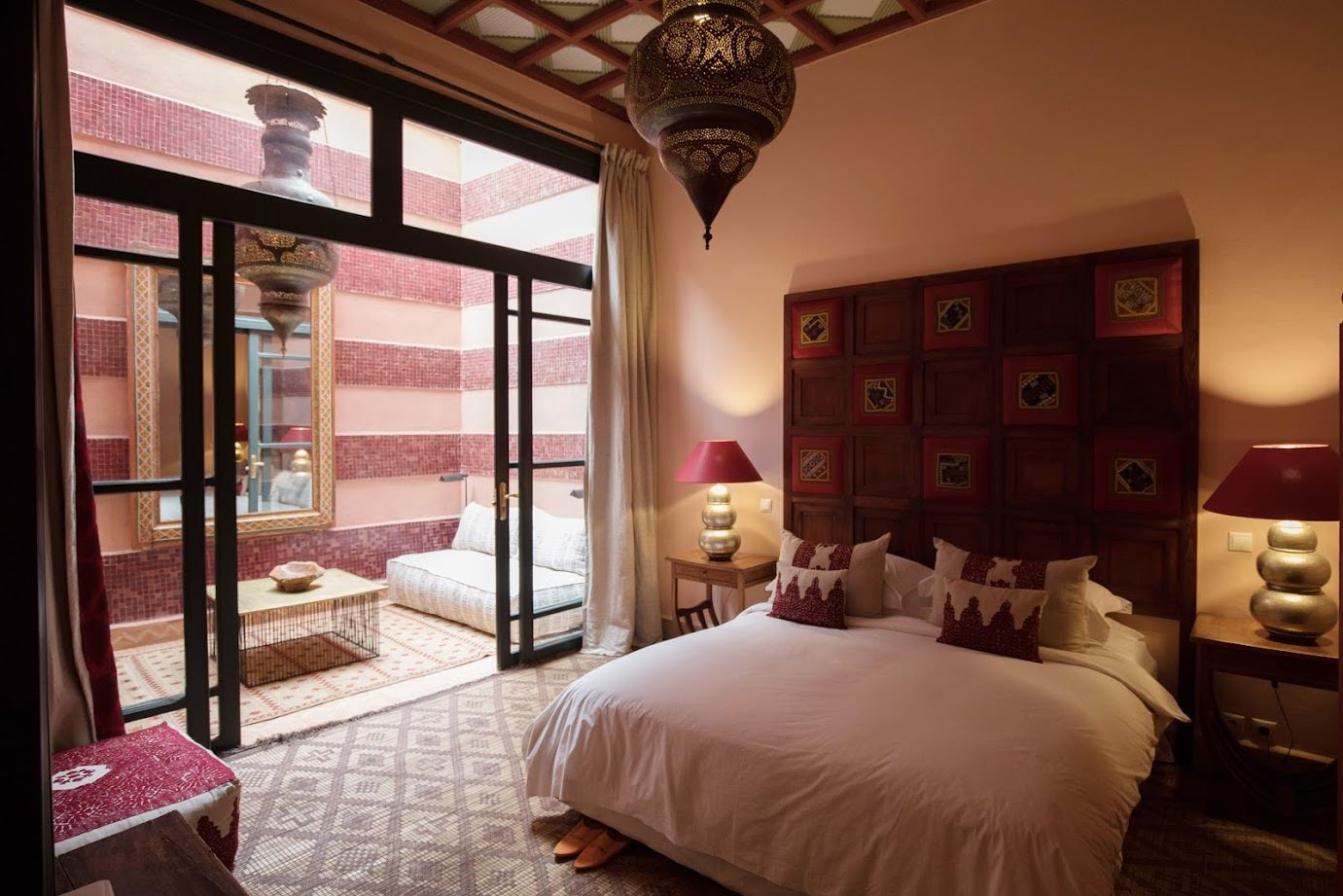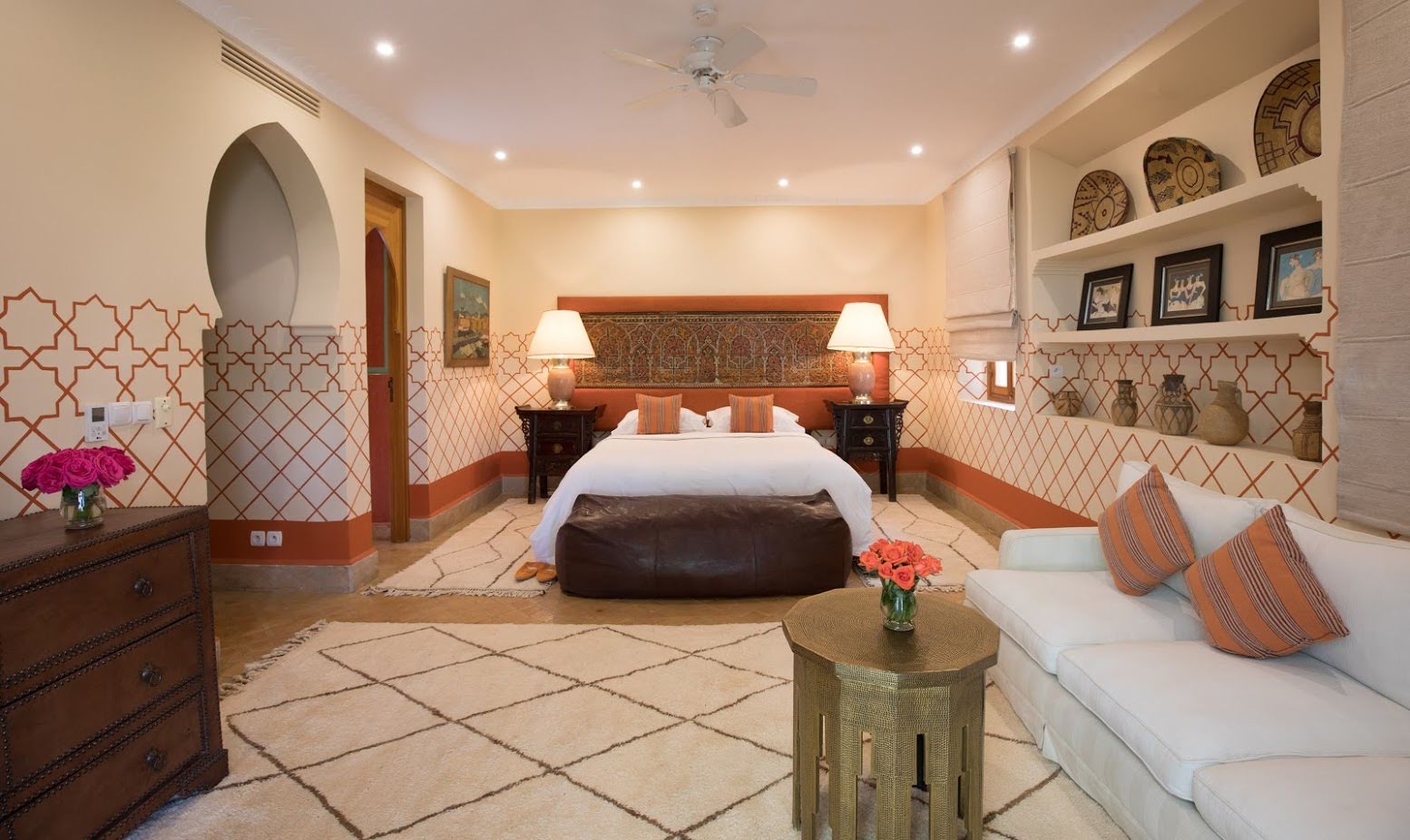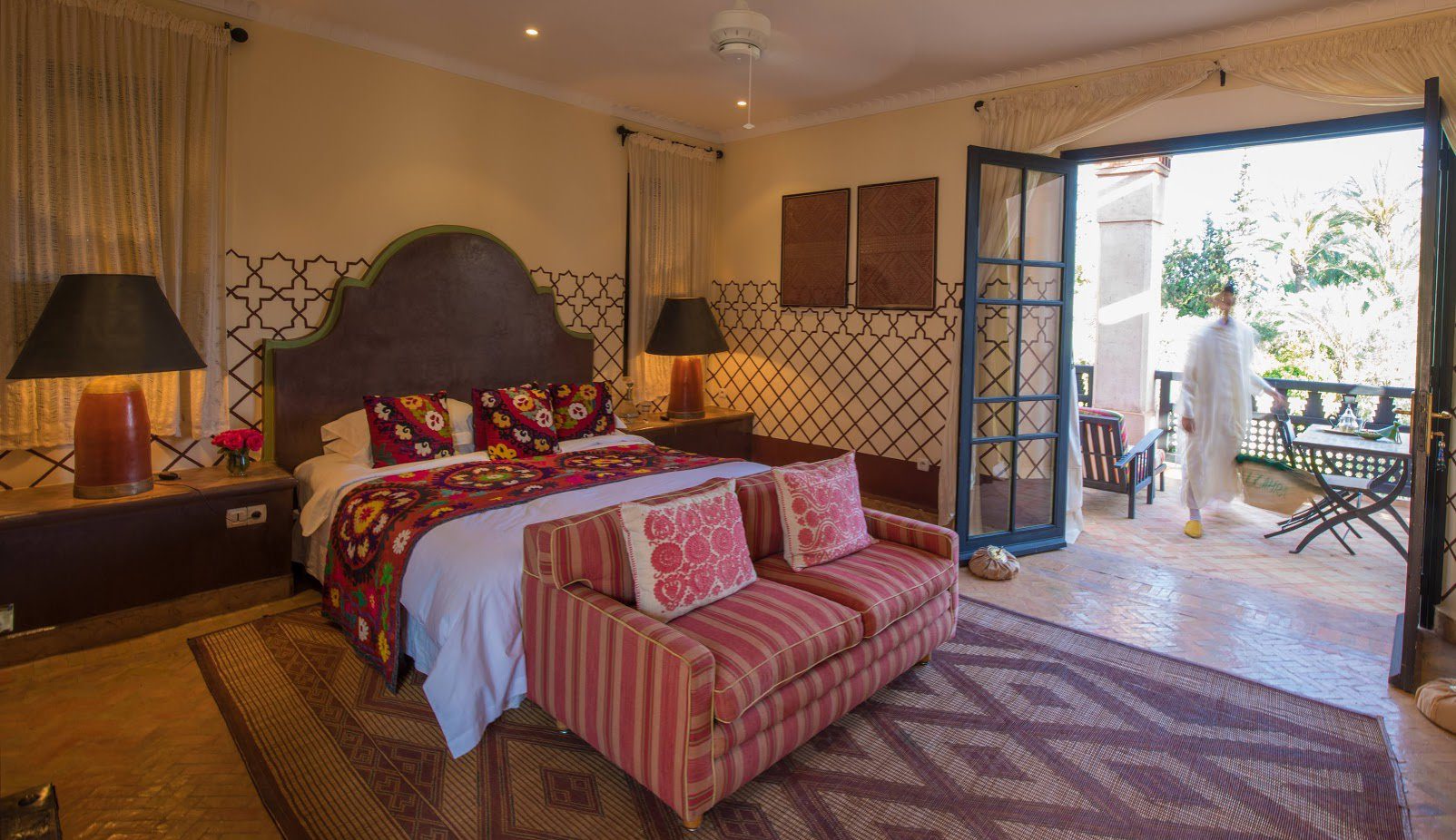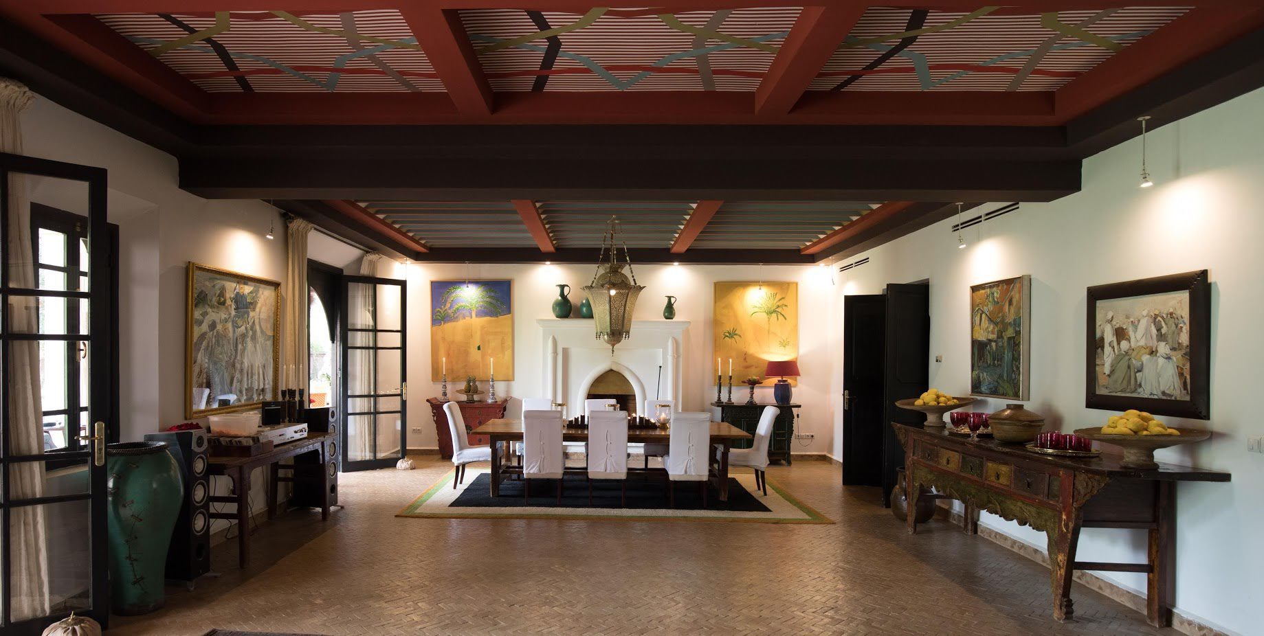 The largest villa has a vast Berber tent in the garden, with comfortable seating where all guests can gather for evening drinks. The large lawns and spacious terraces can be set up for al fresco dining, as well as a new outdoor cinema. Lit by lanterns, with the palms and olives as a backdrop, it's a memorable setting for dinner. Mealtimes are up to you, and the menus include Moroccan and European dishes.