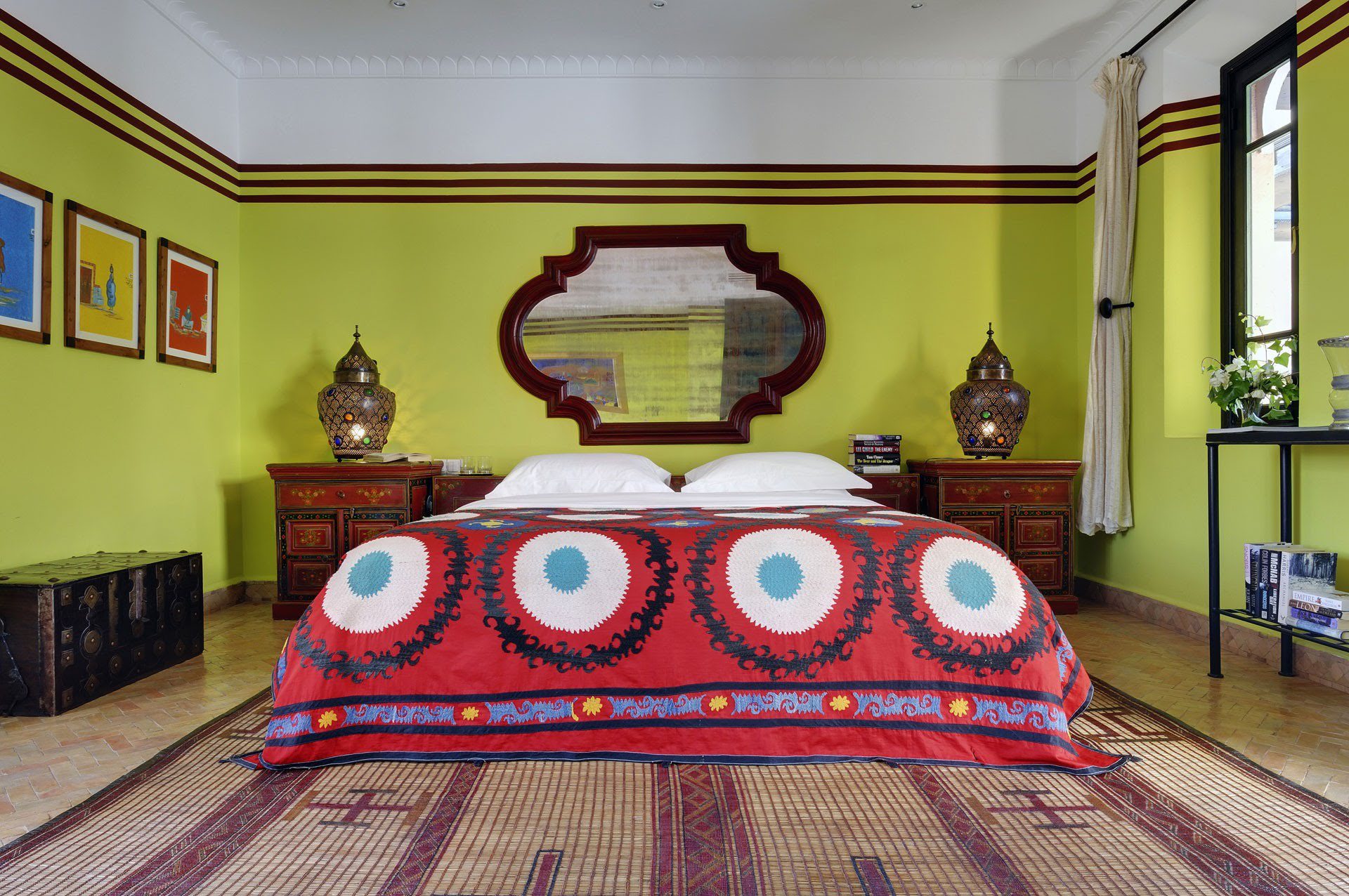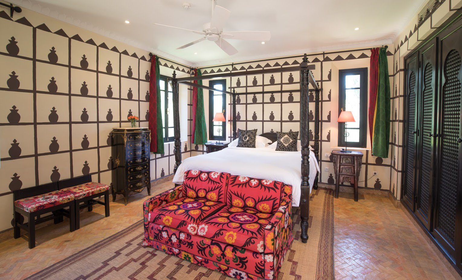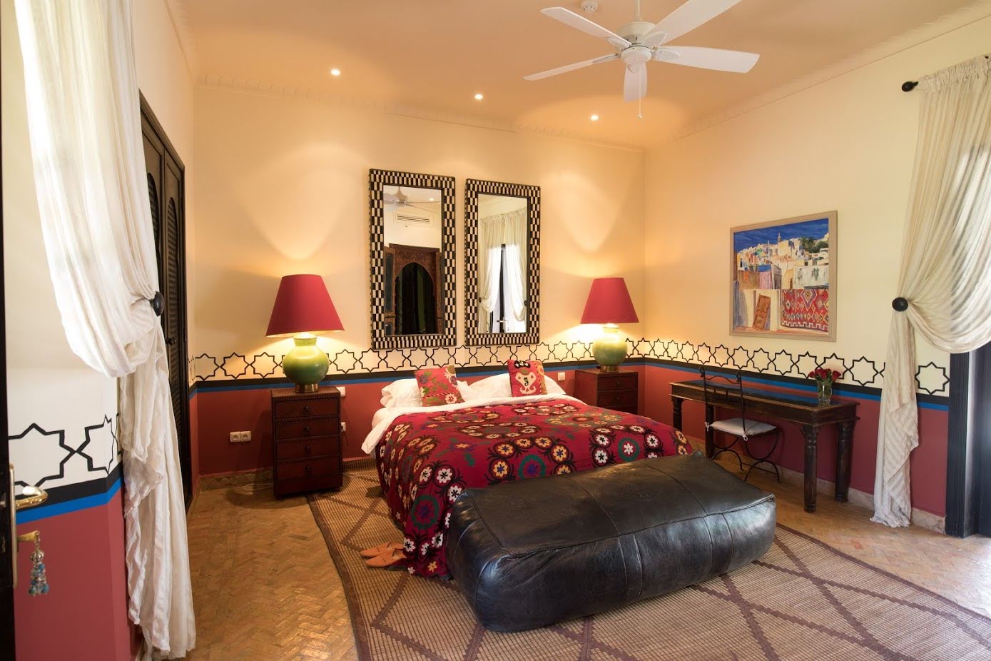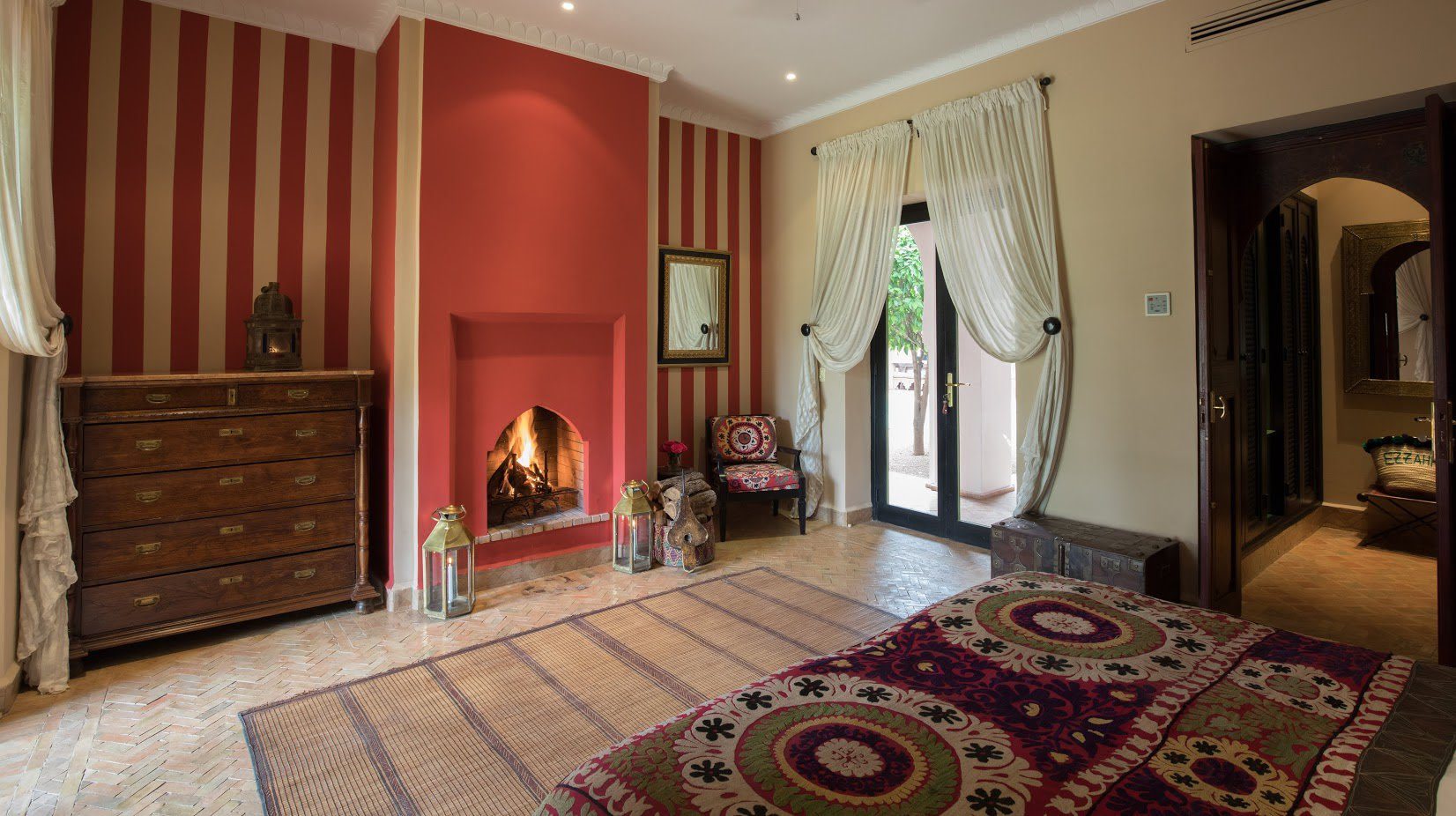 The largest villa has a vast Berber tent in the garden, with comfortable seating where all guests can gather for evening drinks. The large lawns and spacious terraces can be set up for al fresco dining, as well as a new outdoor cinema. Lit by lanterns, with the palms and olives as a backdrop, it's a memorable setting for dinner. Mealtimes are up to you, and the menus include Moroccan and European dishes.