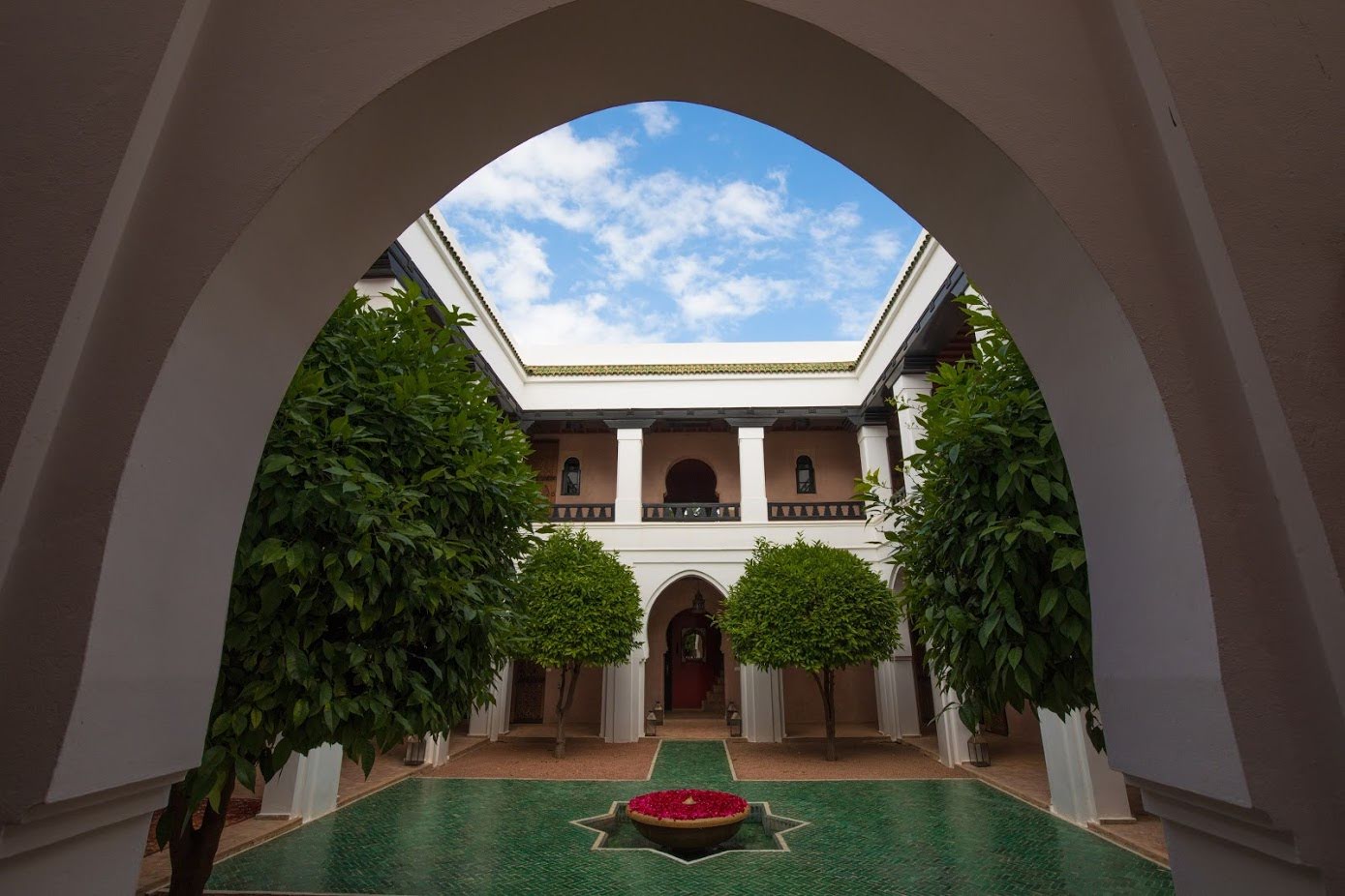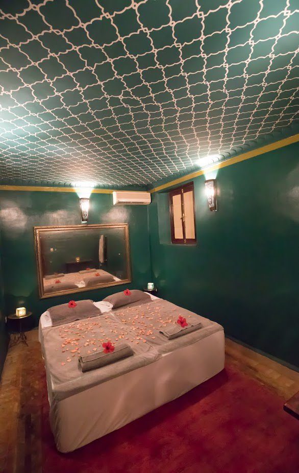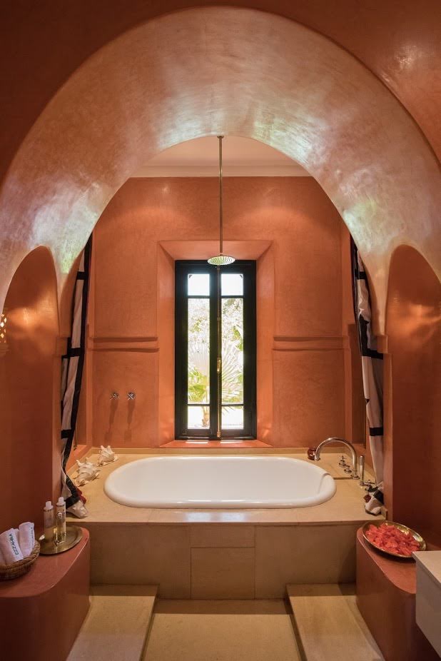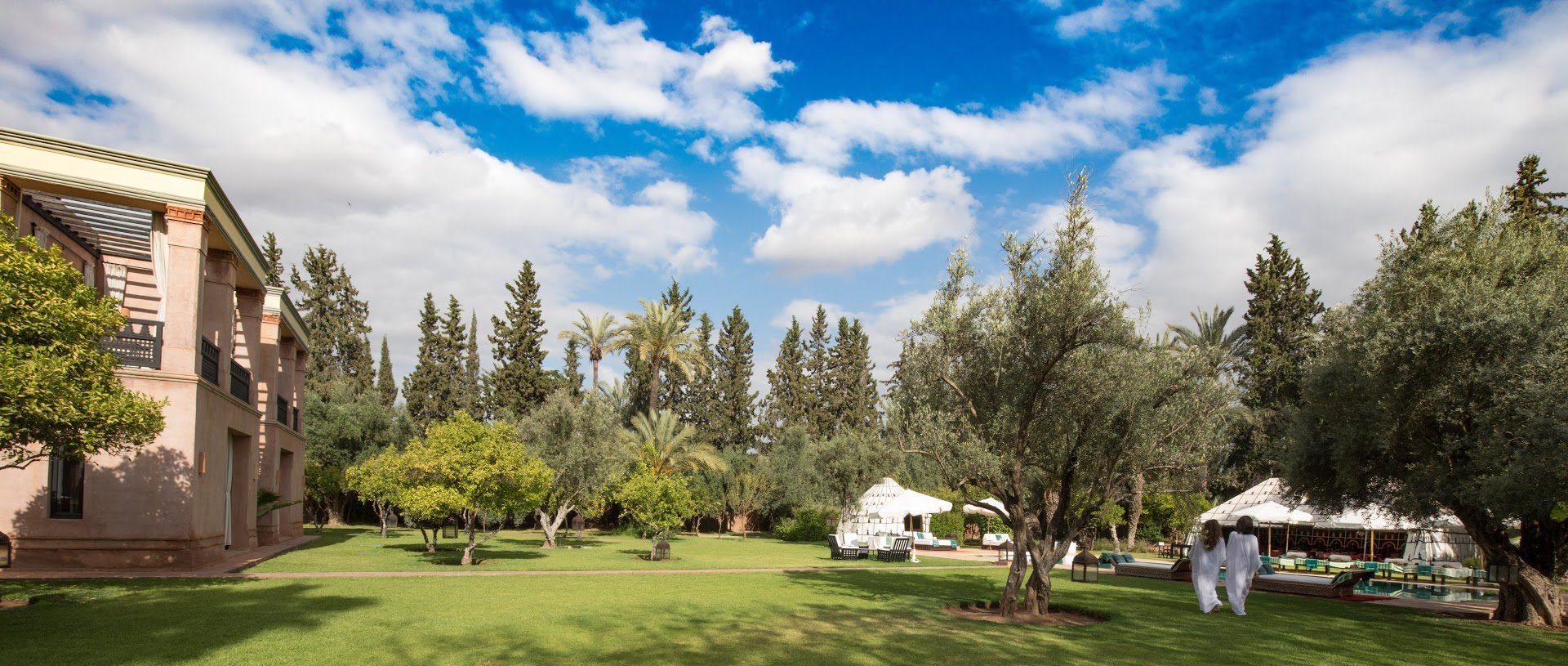 It's situated in the exclusive Palmeraie region of Marrakech. Five exceptionally stylish villas, each surrounded by large gardens planted with ancient olive trees, date palms, orange, and pomegranate trees, accommodate 30 guests. Each villa has a private pool, relaxing daybeds, and an attentive team of staff, including excellent cooks. A spa, with a hammam, steam room, and unlimited treatments are included in your stay.