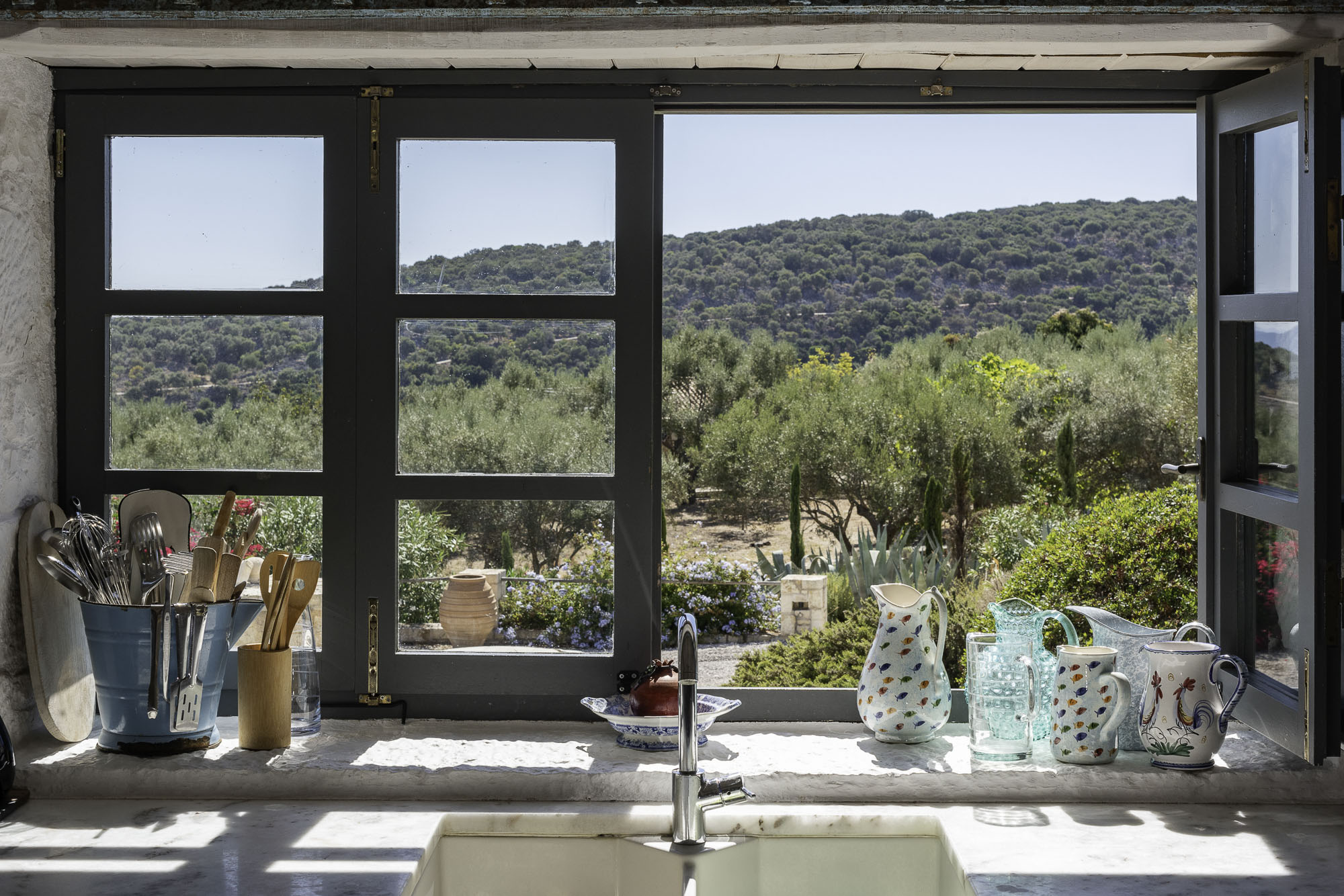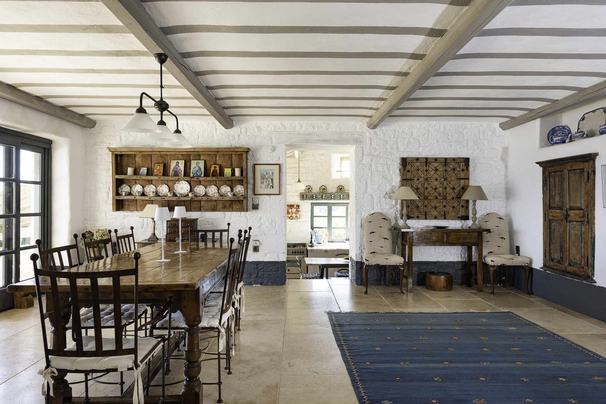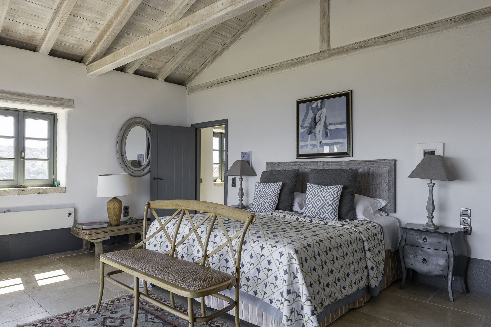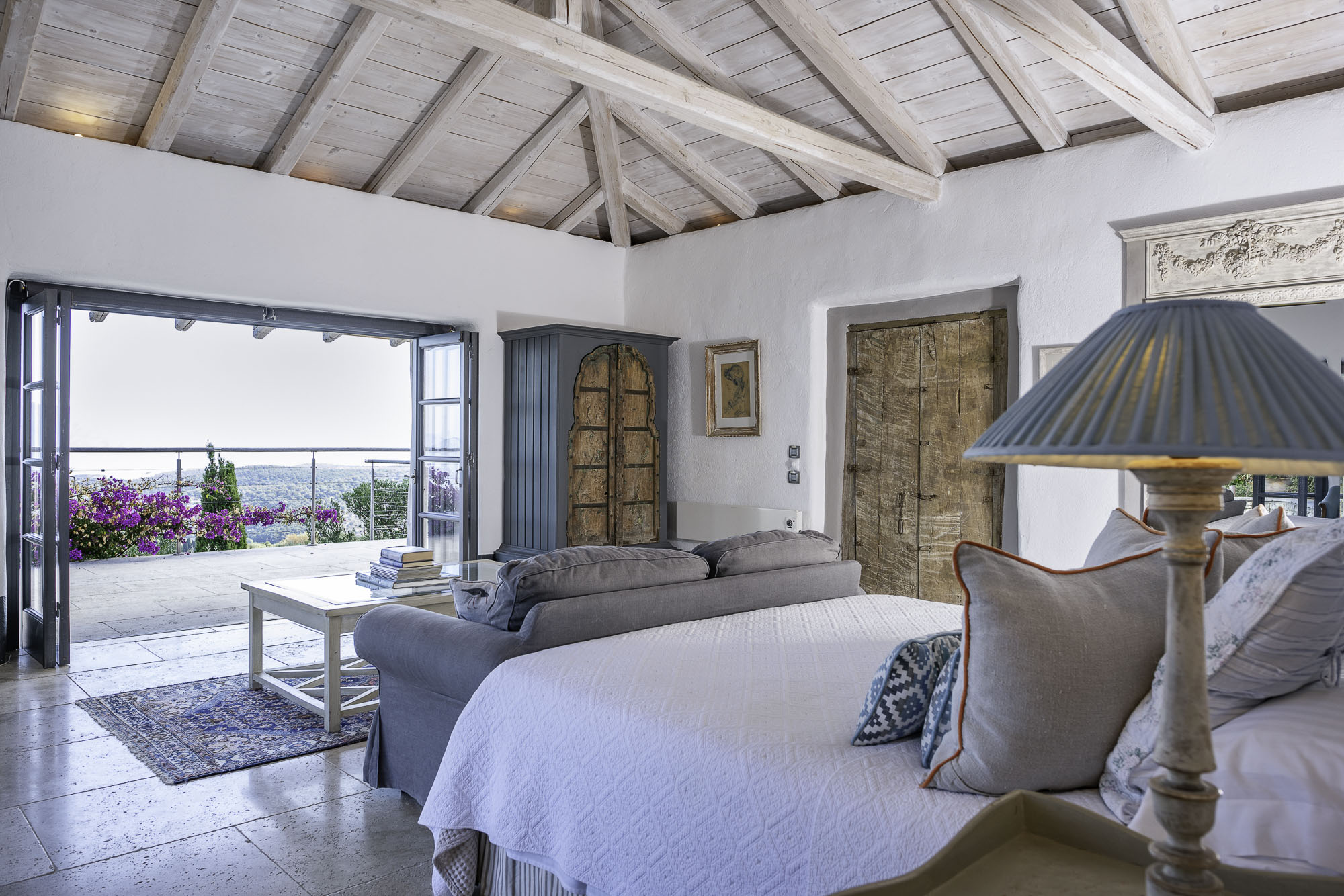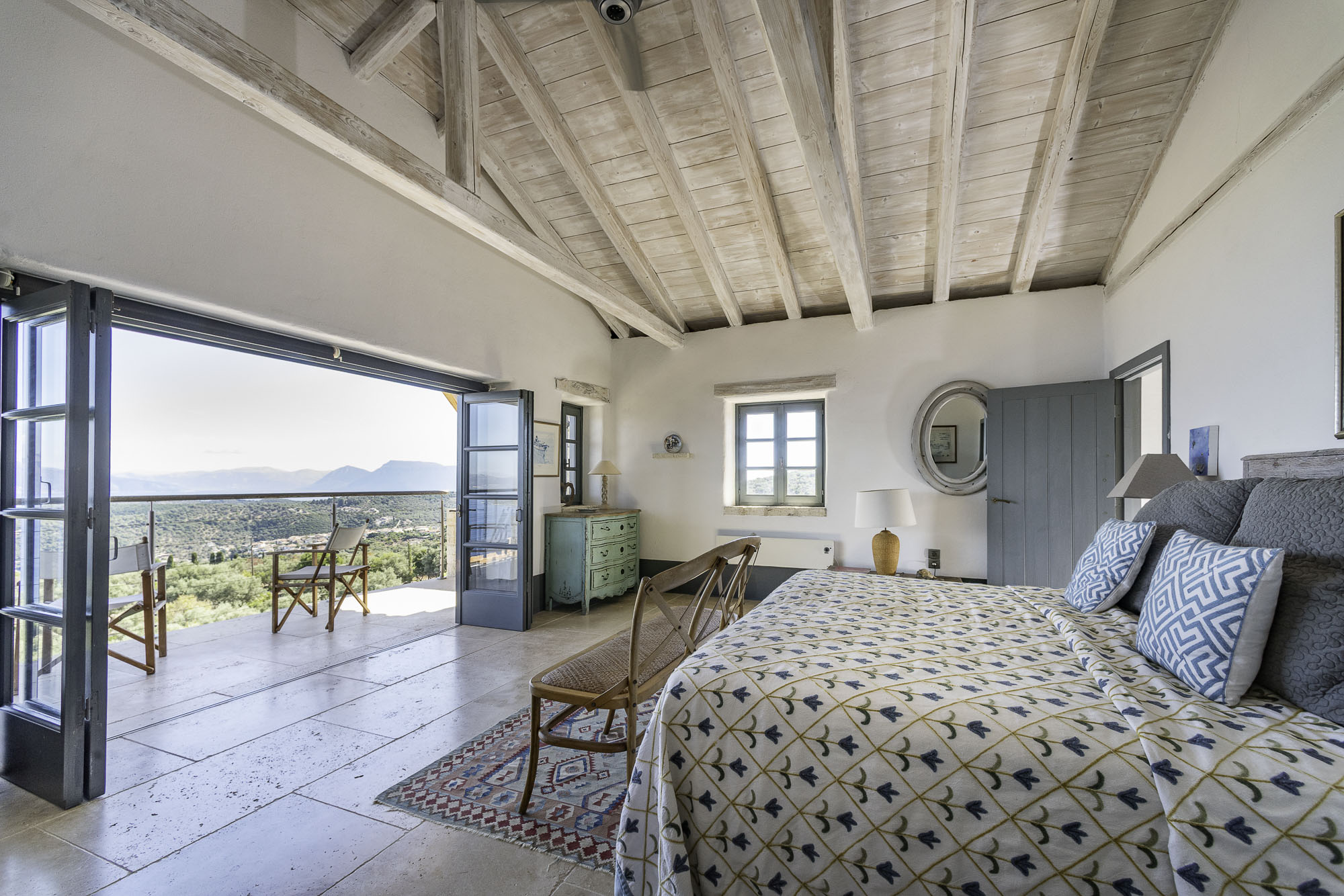 Featuring whitewashed walls, hewn stone windowsills, pebble mosaic bathroom floors, handcrafted wooden headboards, and a unique mix of furnishings. The living space in the main house is generous, with wide glass doors open from the living/dining area to the terrace. The spacious and comfortable bedrooms are all en suite, with two in the main house (split across two floors) and a further two in the guest house. Two pull-out beds can be added to any room for an additional two guests.