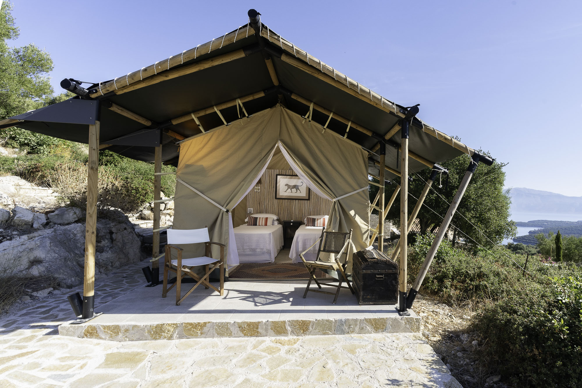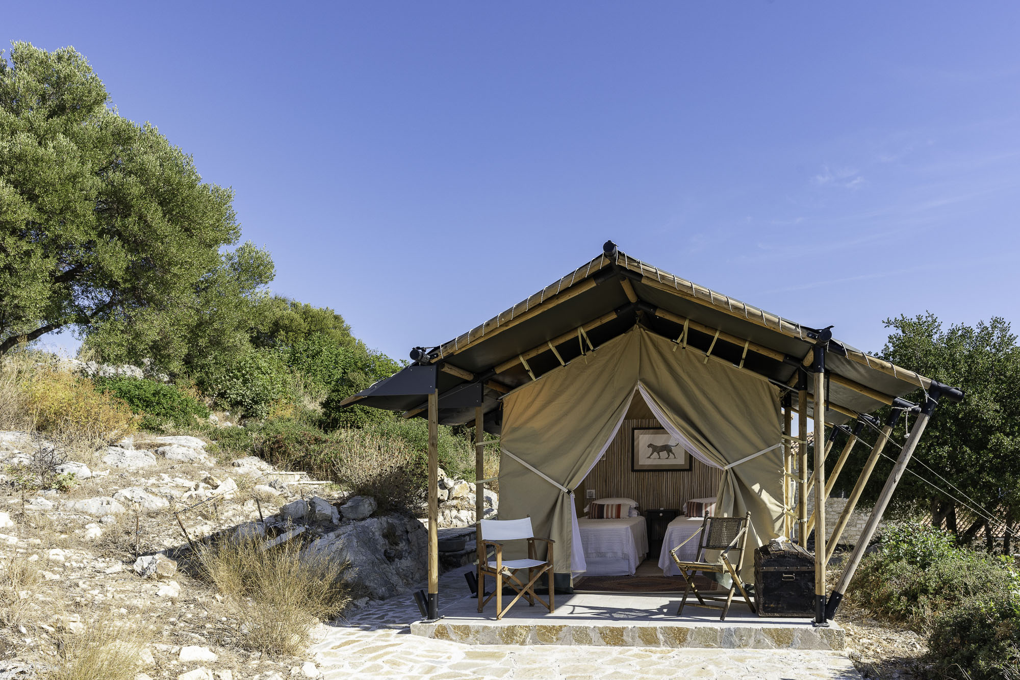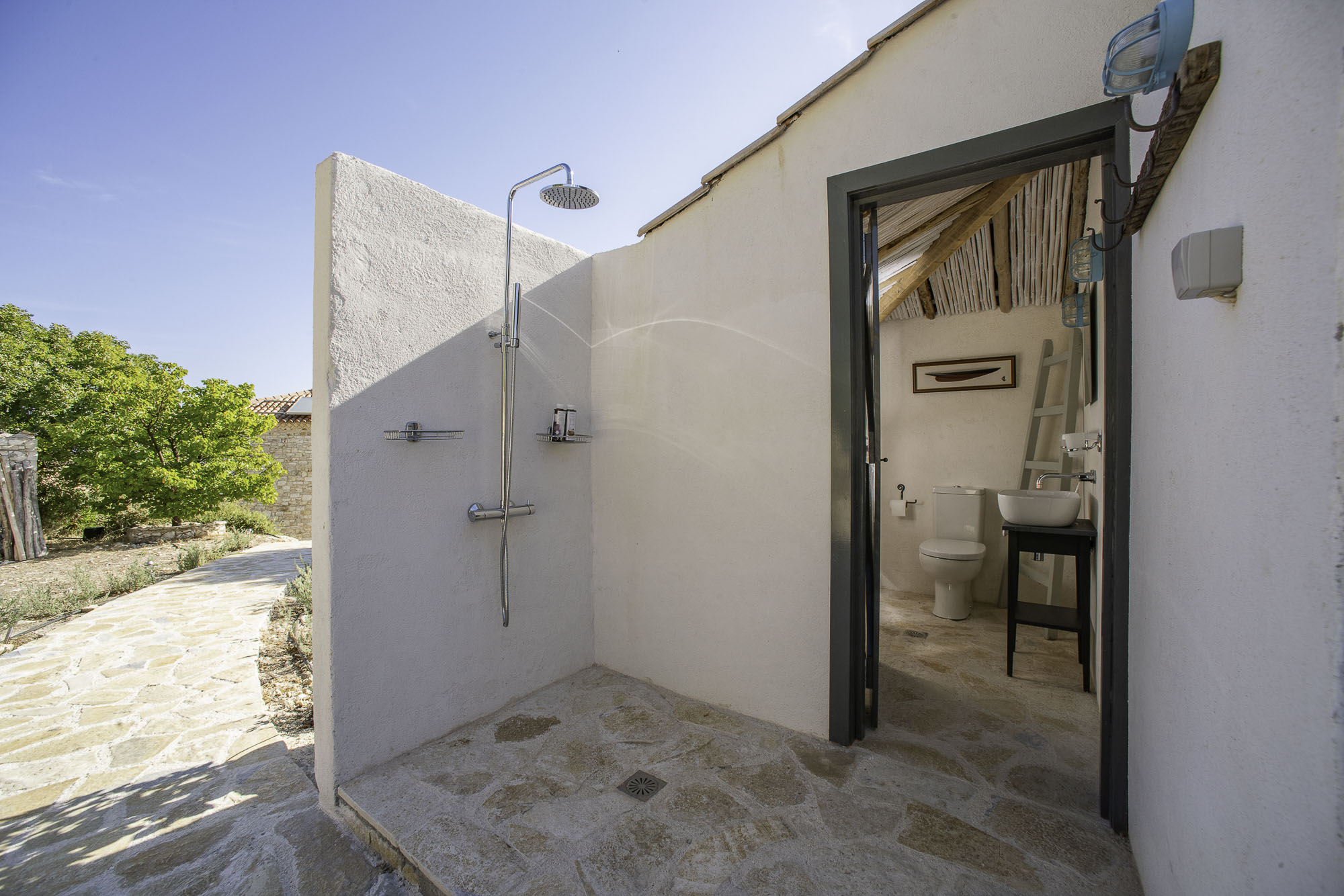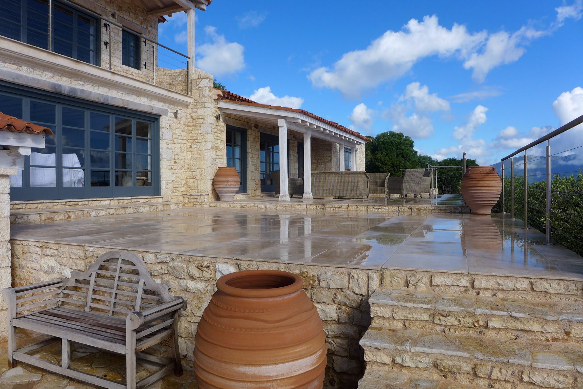 Featuring whitewashed walls, hewn stone windowsills, pebble mosaic bathroom floors, handcrafted wooden headboards, and a unique mix of furnishings. The living space in the main house is generous, with wide glass doors open from the living/dining area to the terrace. The spacious and comfortable bedrooms are all en suite, with two in the main house (split across two floors) and a further two in the guest house. Two pull-out beds can be added to any room for an additional two guests.