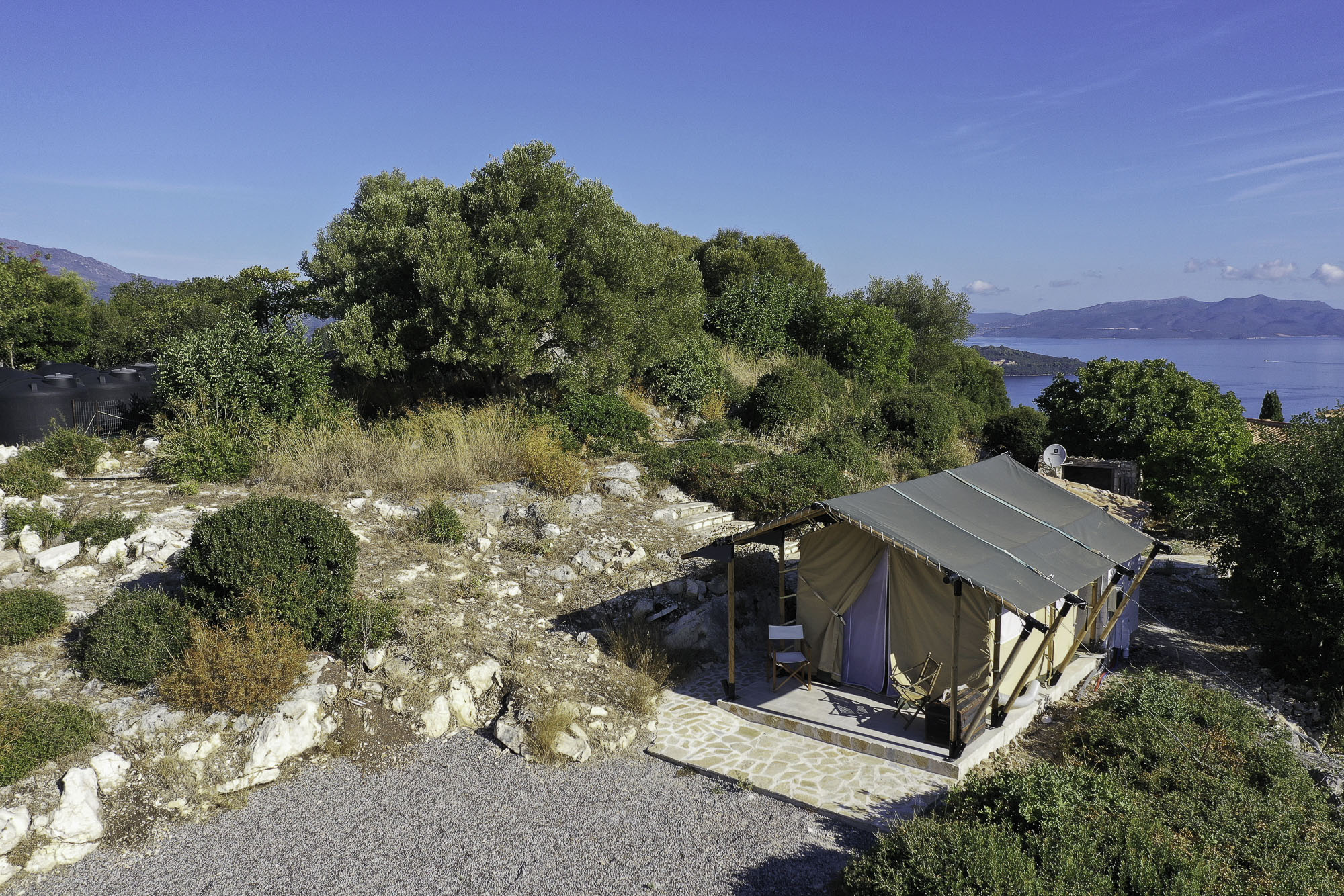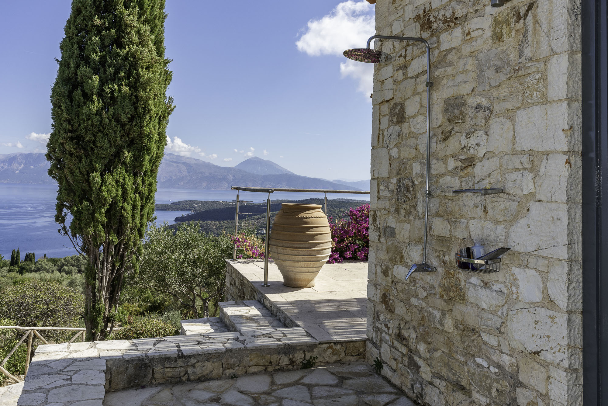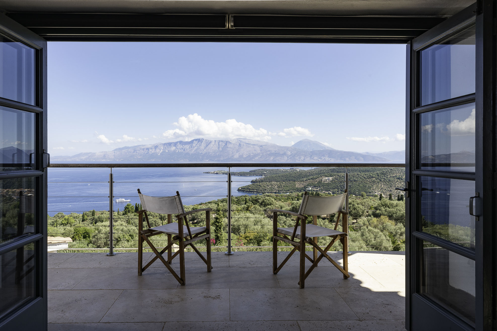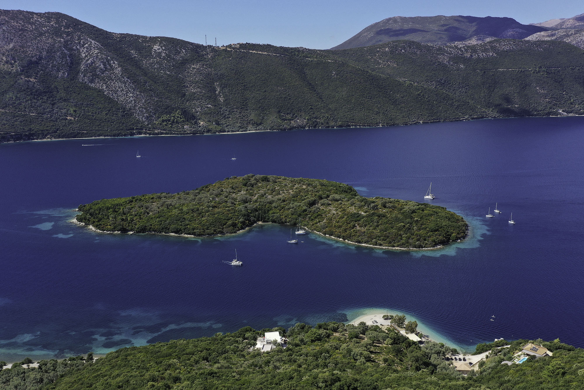 The nearest village, Spartochori, is less than five minutes away, with inviting shops and traditional restaurants. At the same time, Vathi, the island’s lively capital with a wider variety of dining options, is a 10-15 minute drive. For beach days, Agrilia on the west coast is ideal for snorkelling, with sandy stretches and abundant fish, while nearby Loutrolimni offers a quiet, expansive beach often frequented only by locals. Korokofolia, just beyond Fanari Cape, is another lovely option. In this part of the Ionian, boating is a dream, with countless islands to explore and hidden bays perfect for anchoring and swimming. Local tavernas and sophisticated lunch spots are scattered along the coast, ensuring a delightful mix of options wherever you sail.