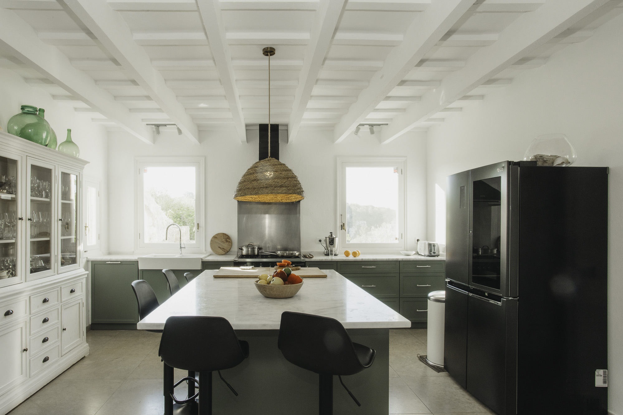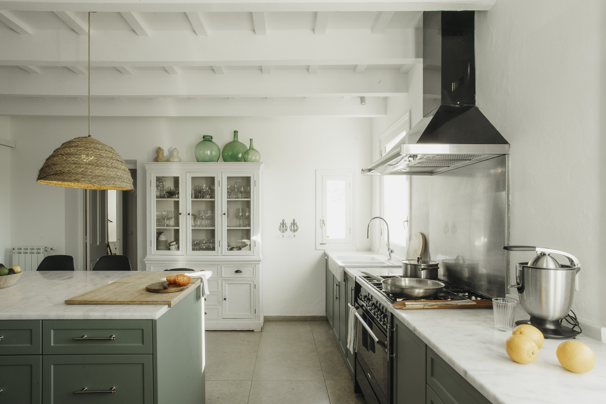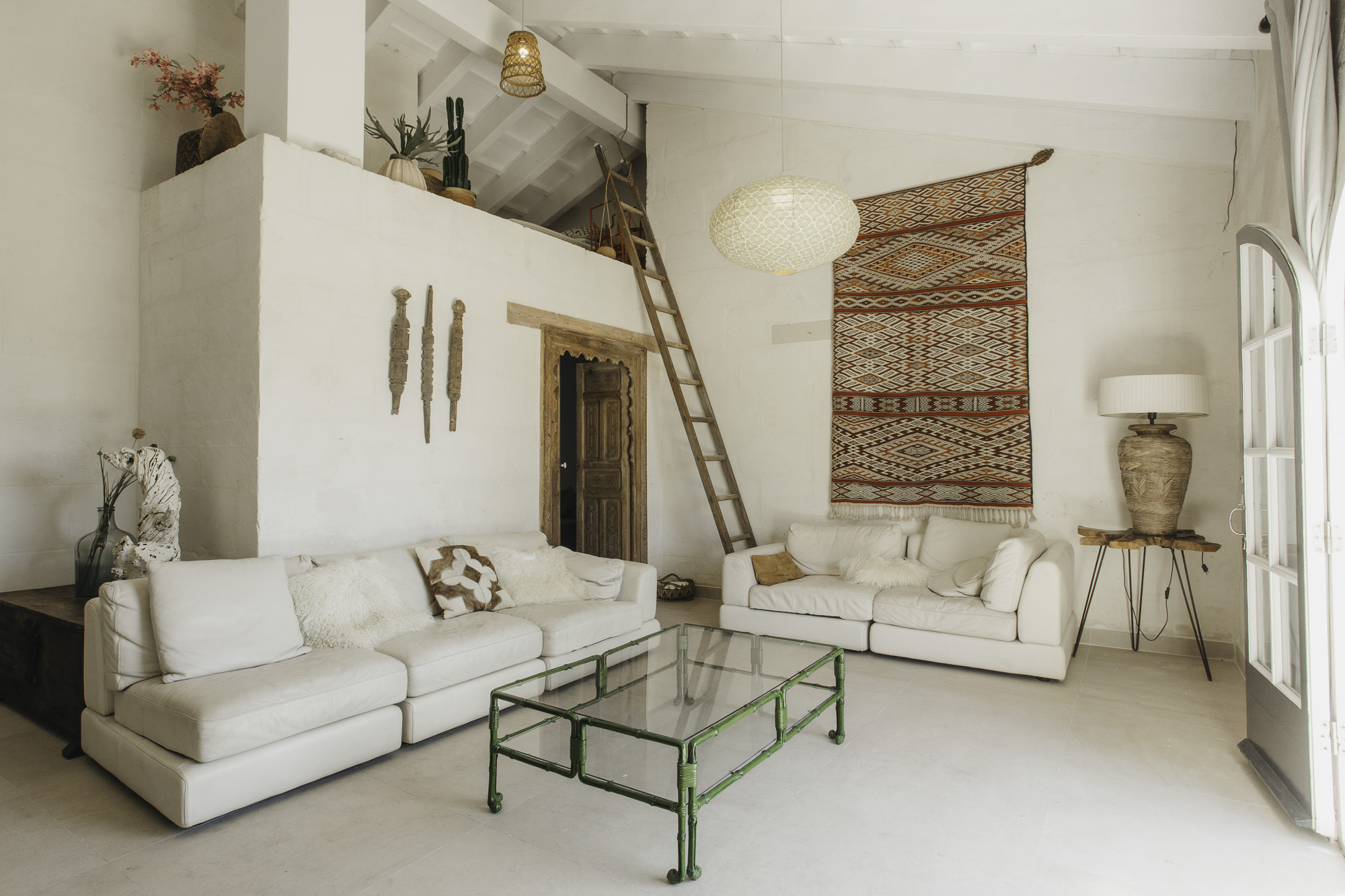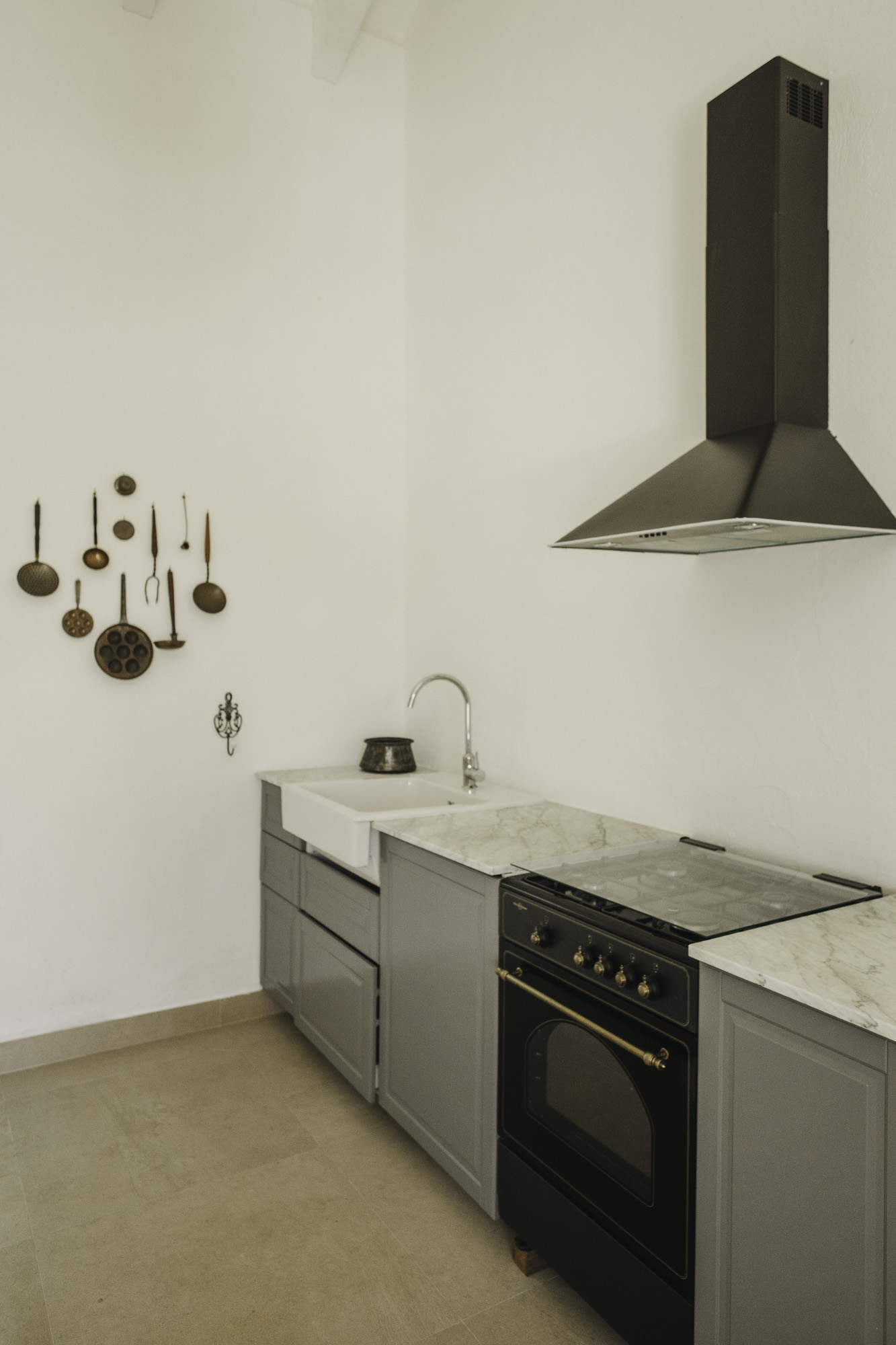 The main house features seven beautifully appointed bedrooms across two floors, while an additional two bedrooms are located in the charming guesthouse. Living spaces include a cosy library, a refined TV room, and an expansive lounge area that offers both intimacy and spaciousness, ensuring tranquillity even at full capacity. The kitchen opens to a large indoor dining table with seating for 14, providing stunning views of the Binigaus Valley. A standout feature is the King Suite, which includes a private sun terrace and awe-inspiring vistas of the Mediterranean and the estate's canyon.