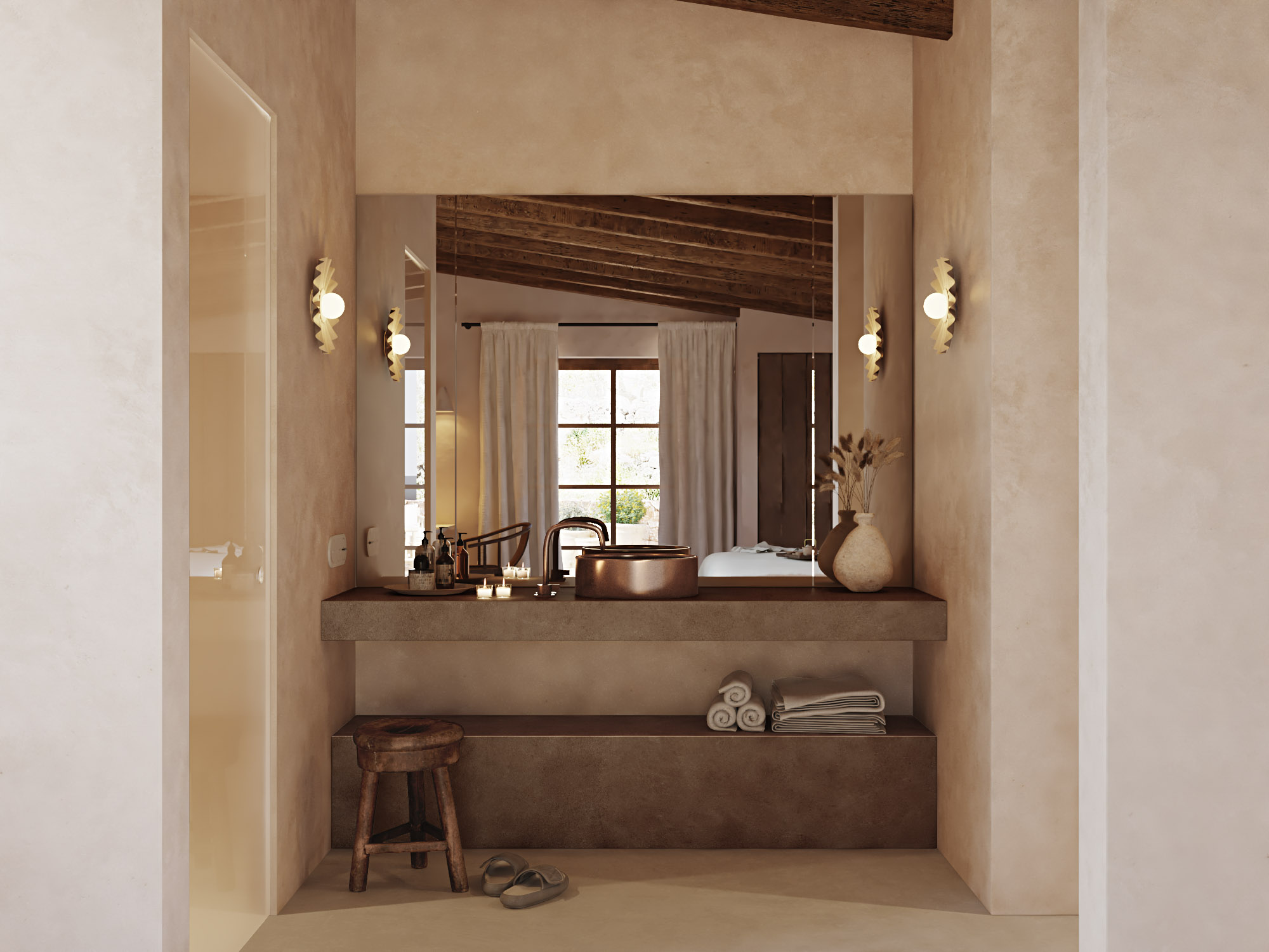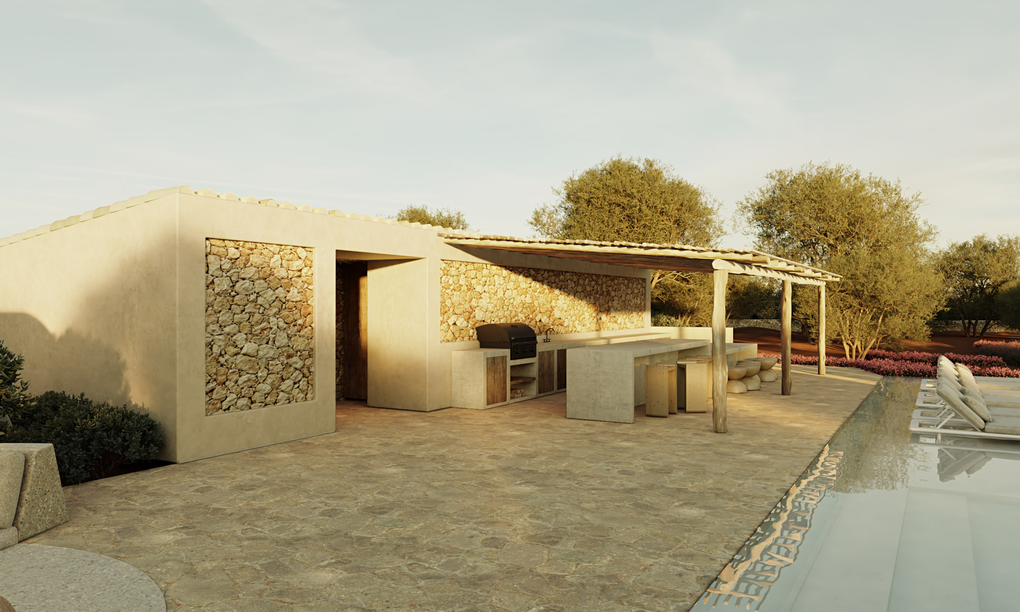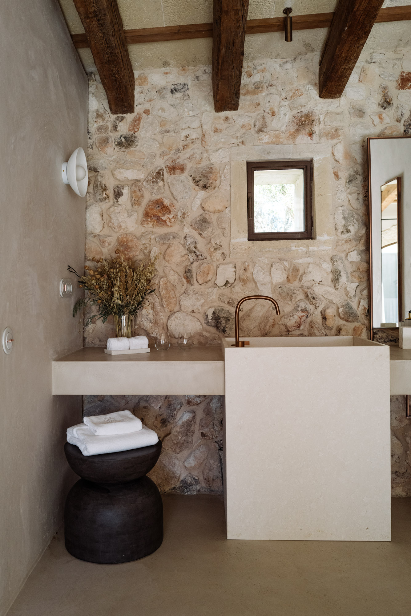 Whether you seek the warmth or the shade, the outdoor chill-out area offers the perfect spot to unwind. As the evening unfolds, light the fire pit and fire up the barbeque to prepare a fresh catch while watching the sunset. Santa Ana sits within a wonderfully private 210-hectare estate, offering complete privacy and tranquility. Just steps from the accommodation, lush gardens bloom with fragrant Mediterranean flowers and herbs, while the surrounding land is predominantly woodland.