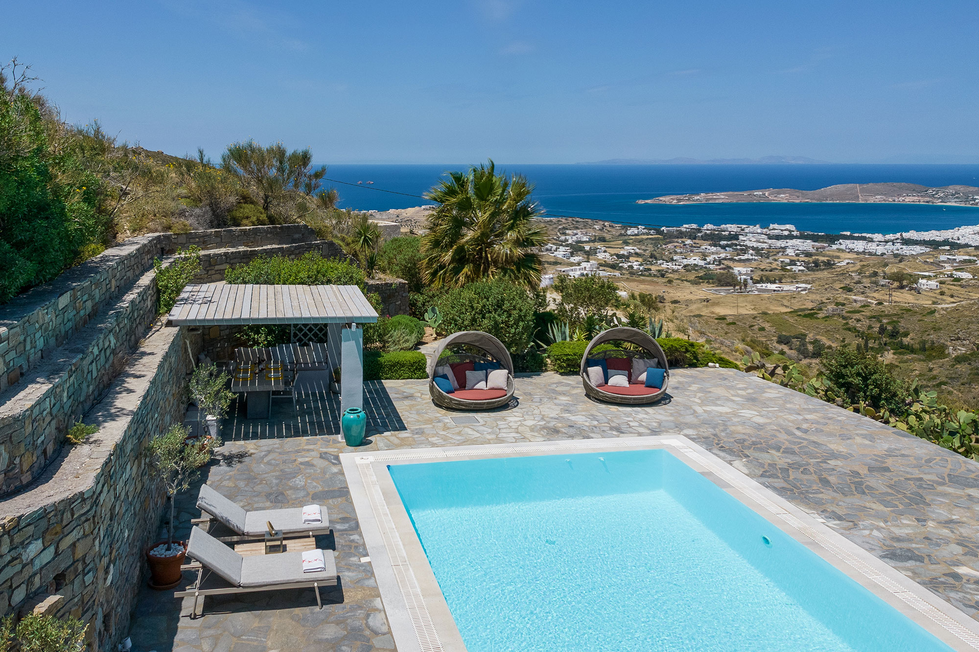 The views from the terrace and infinity pool are wonderfully far-reaching. The villa is quite central, a short drive from Parikia, so it is well-placed to explore the island.