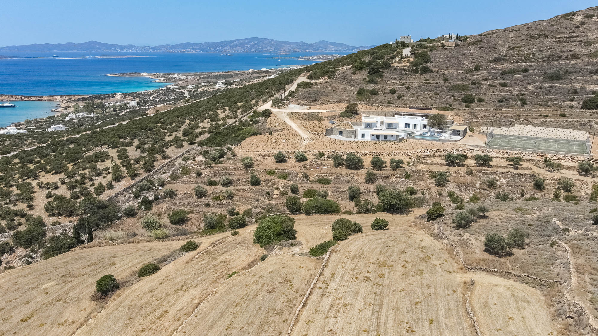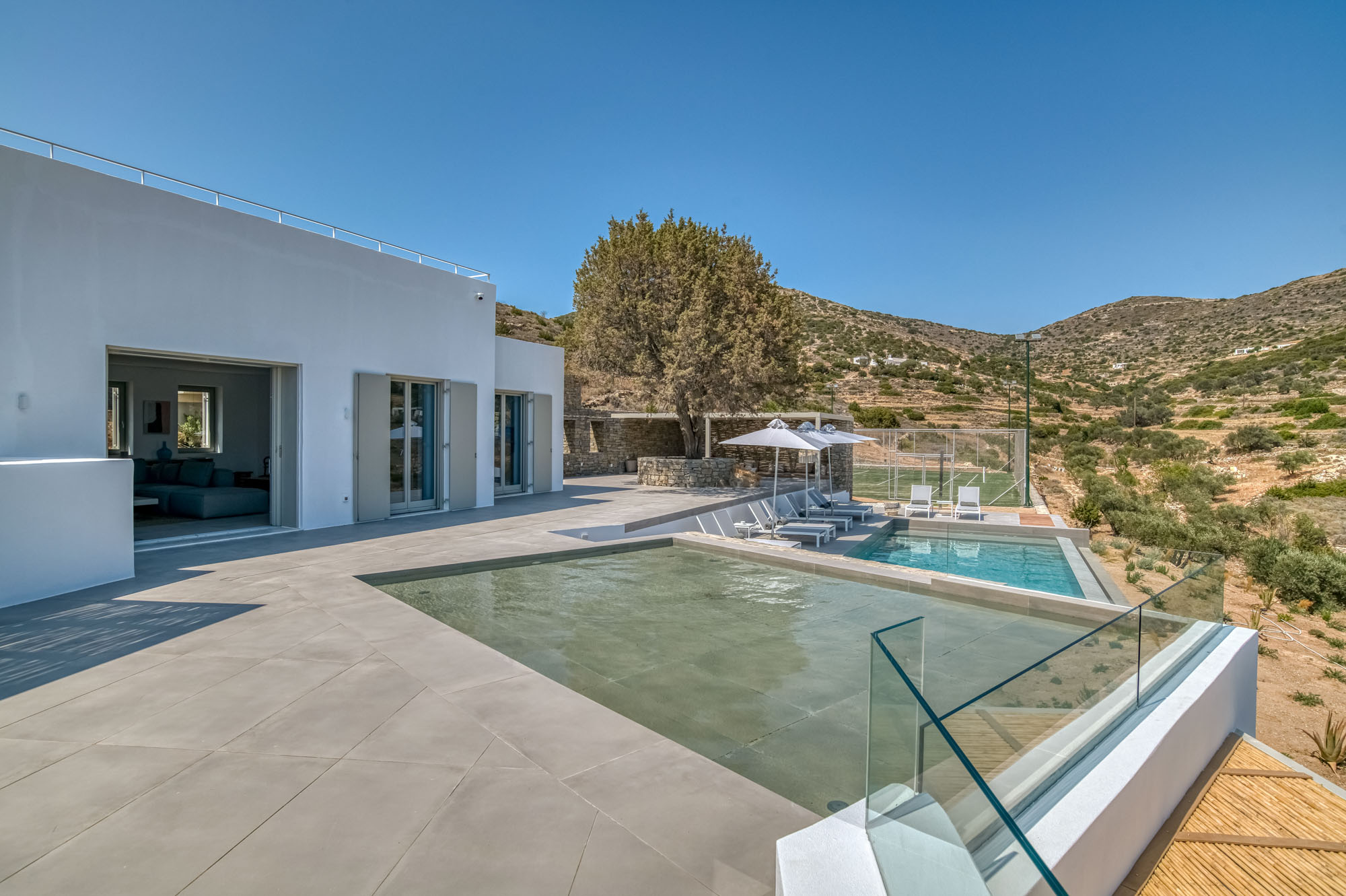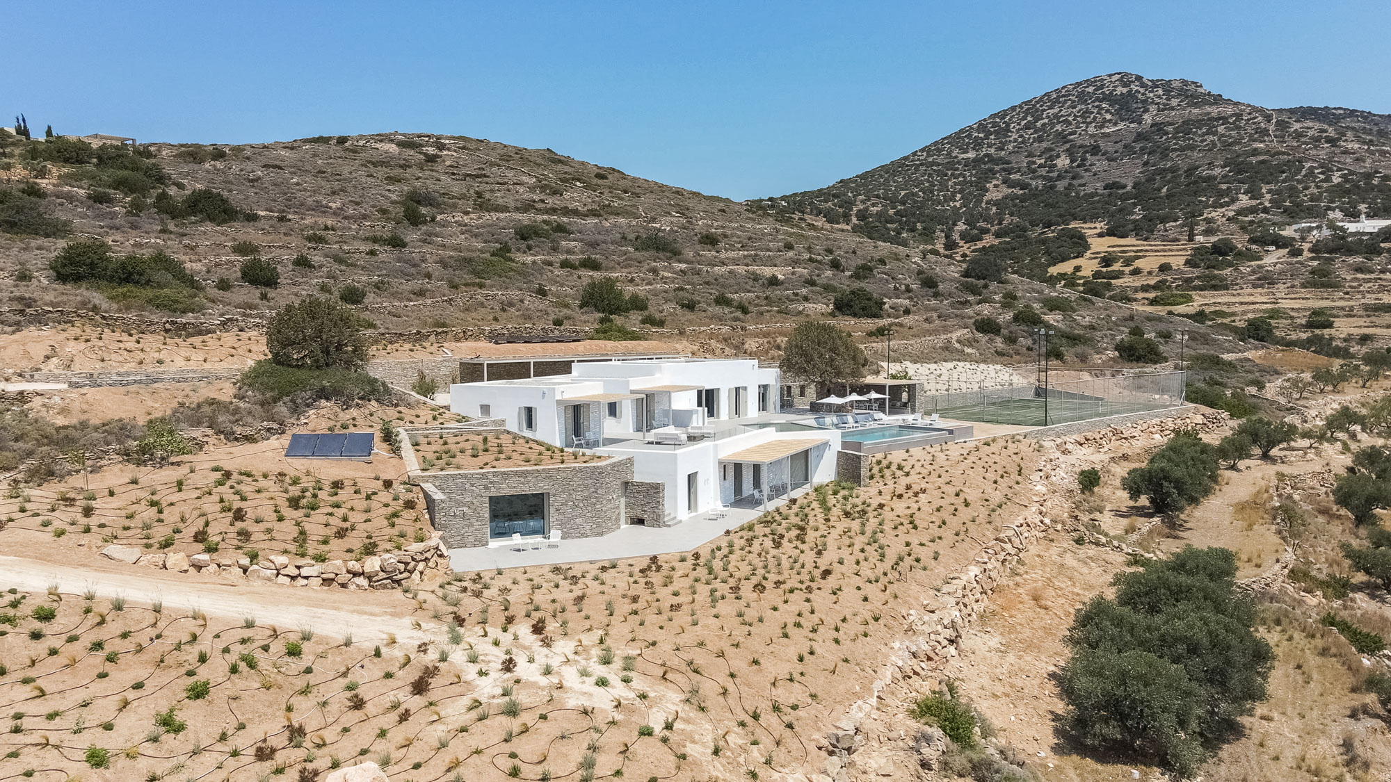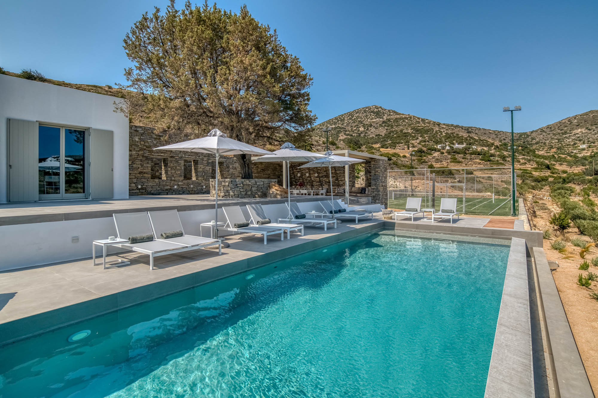 Designed for families and groups seeking space, style and exceptional outdoor living, the villa sleeps 14 guests in seven elegant en-suite bedrooms. With its infinity pool, children’s pool, tennis court and extensive terraces, Lily Rock offers a luxurious island villa on the peaceful south-west coast of Paros, with sweeping views across to Ios, Folegandros and Sikinos.