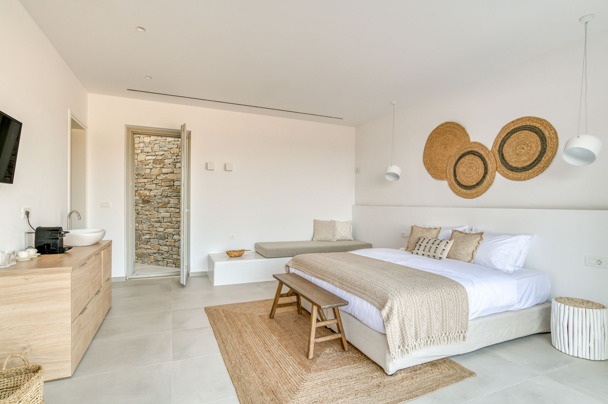 Similarly close to the charming coastal village of Aliki, known for its sandy beaches, sheltered coves, excellent seafood restaurants and lively evening scene. From this privileged location, guests can also explore the surrounding Cyclades by boat—venture to Koufonisia, Delos or the cosmopolitan island of Mykonos for an unforgettable day on the water. Lily Rock offers both tranquillity and easy access to the best of Paros.