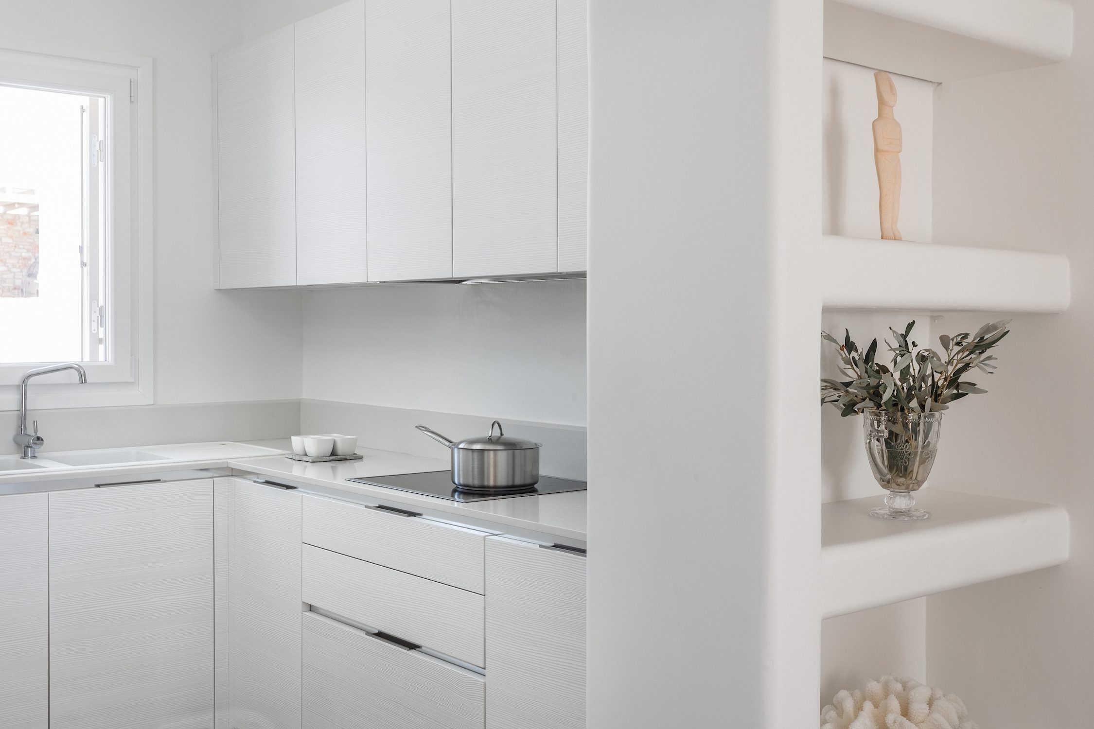 A short 10-15-minute walk will take you to the peaceful, unorganised beaches of Aspros Gremos and Ziadis. For a more lively scene, Aspro Beach, with its beachside restaurants, Aspro and Blue Oyster, is close by. The villa is also just a short drive from the larger town of Naoussa, allowing guests to explore nearby attractions while enjoying the tranquillity of this serene coastal location.