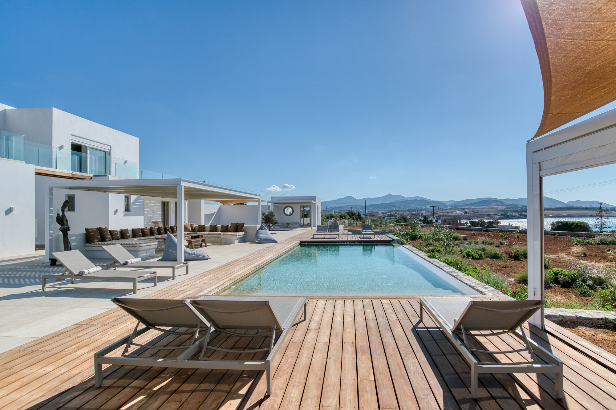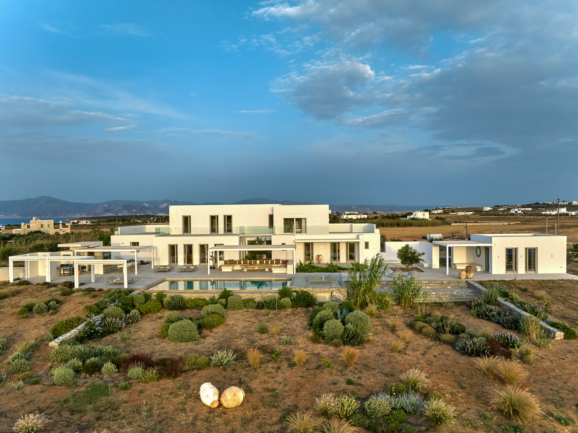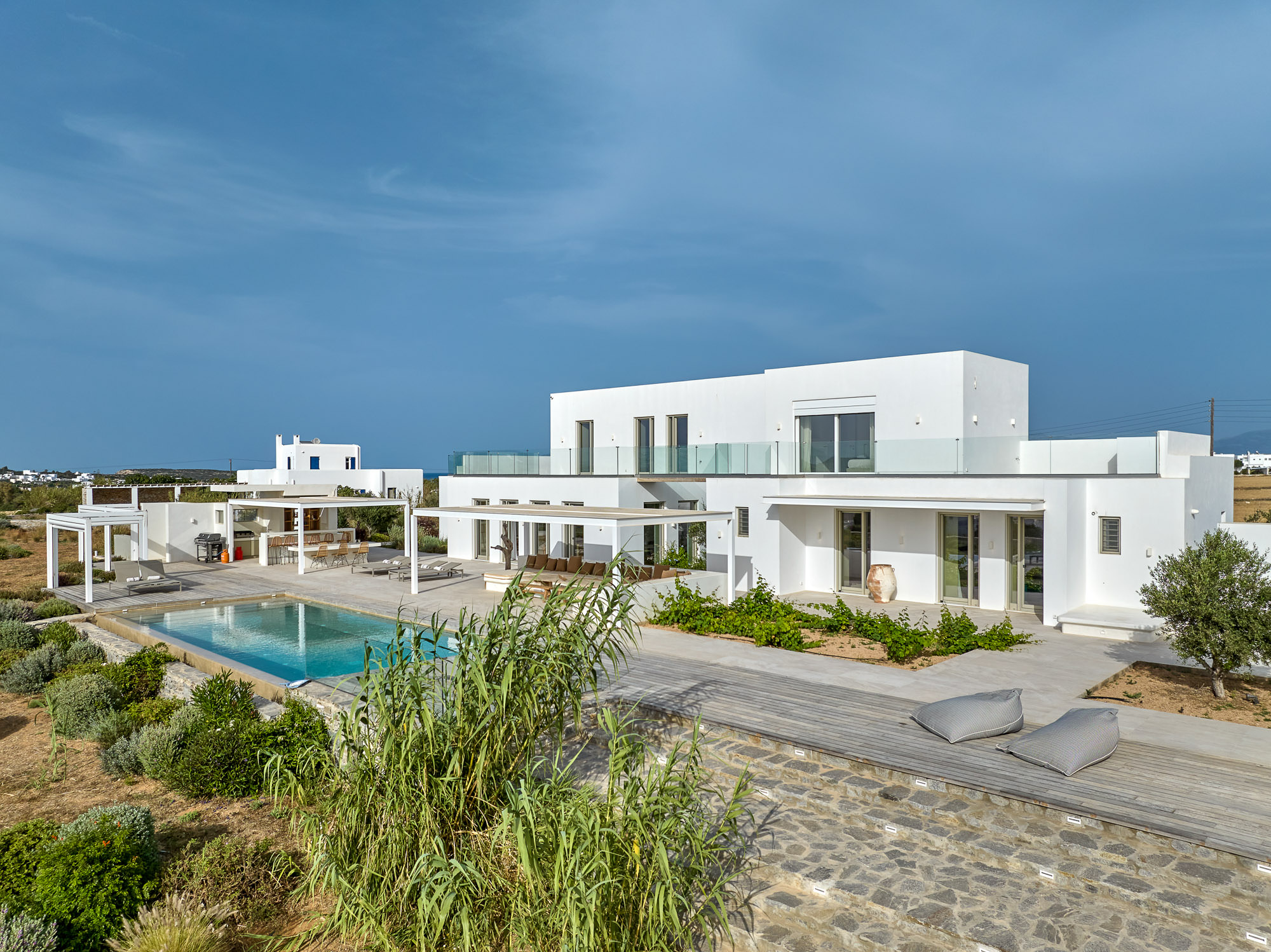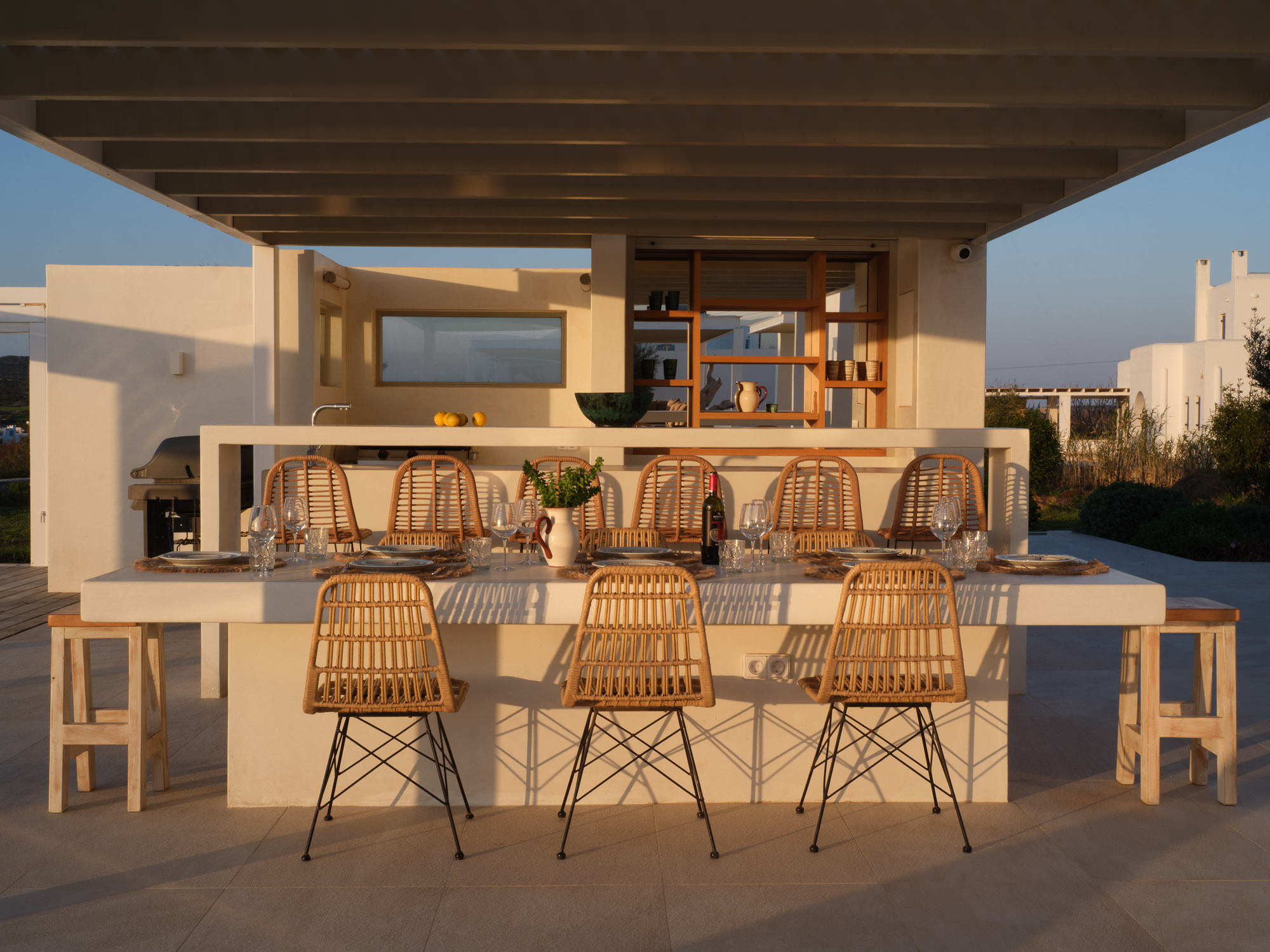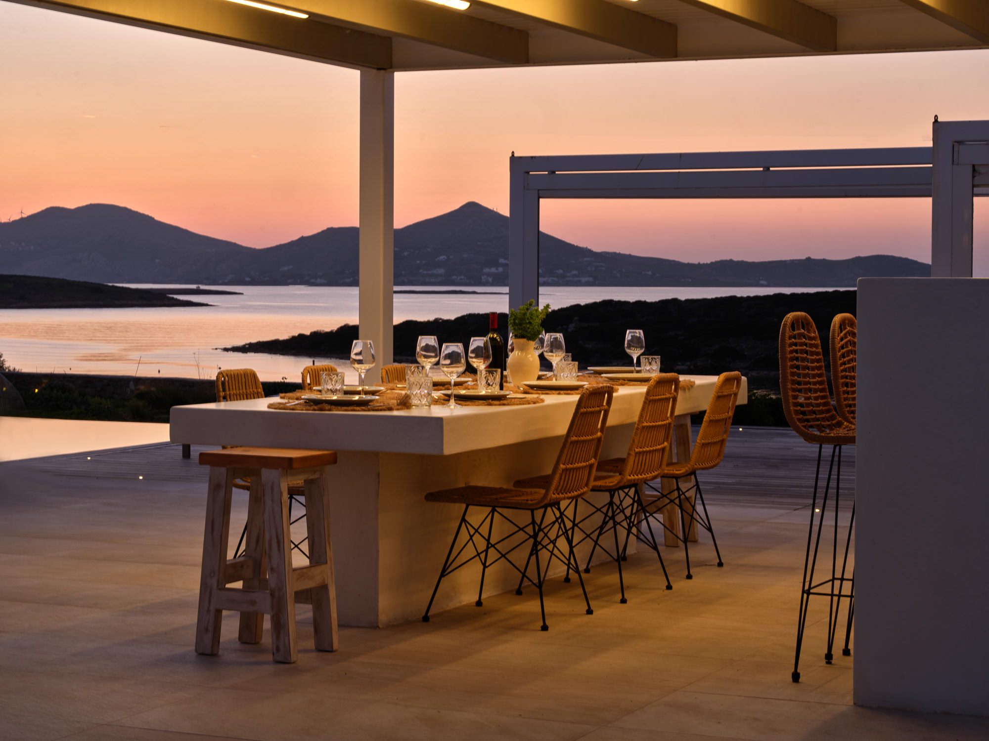 Xifara’s calm shoreline, known for its golden sands and clear waters, is ideal for swimming or windsurfing just moments from the villa. A short drive leads to Naoussa’s lively town centre, where restaurants, nightlife, and boutiques await. At the same time, nearby Santa Maria is known for its striking beaches and laid-back resort atmosphere, offering a seamless blend of quiet and local vibrancy.