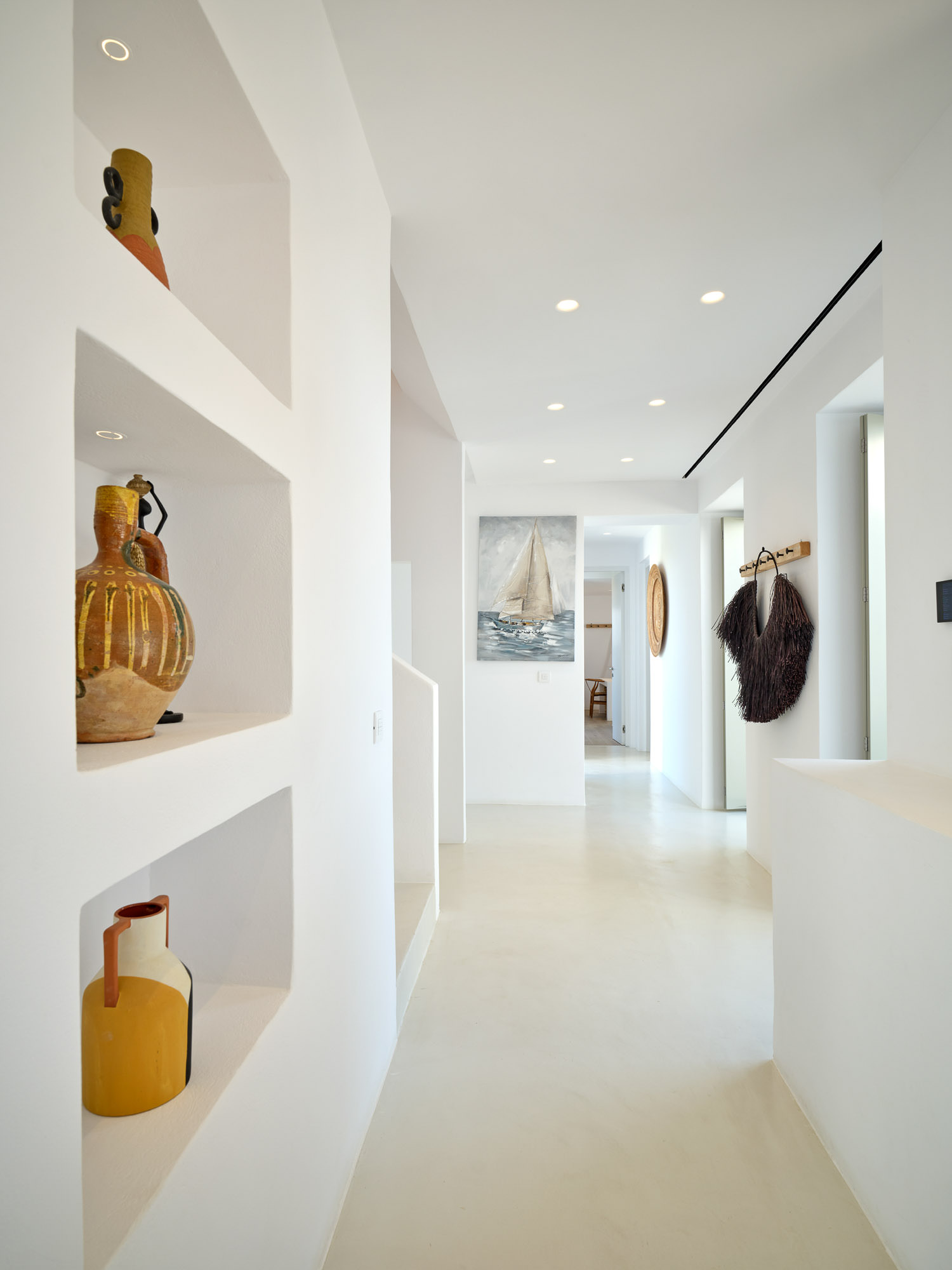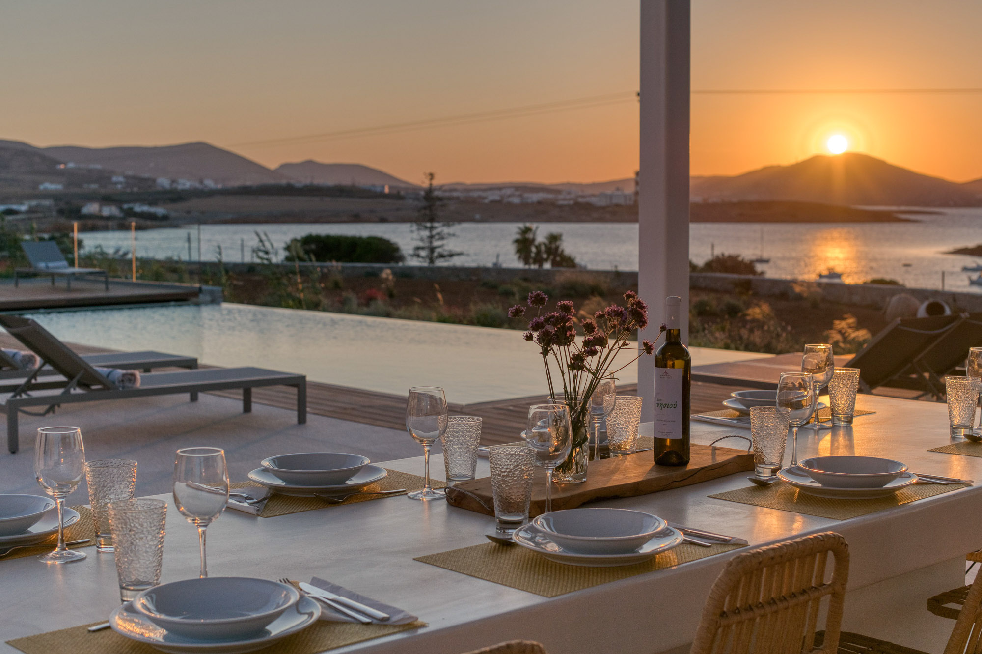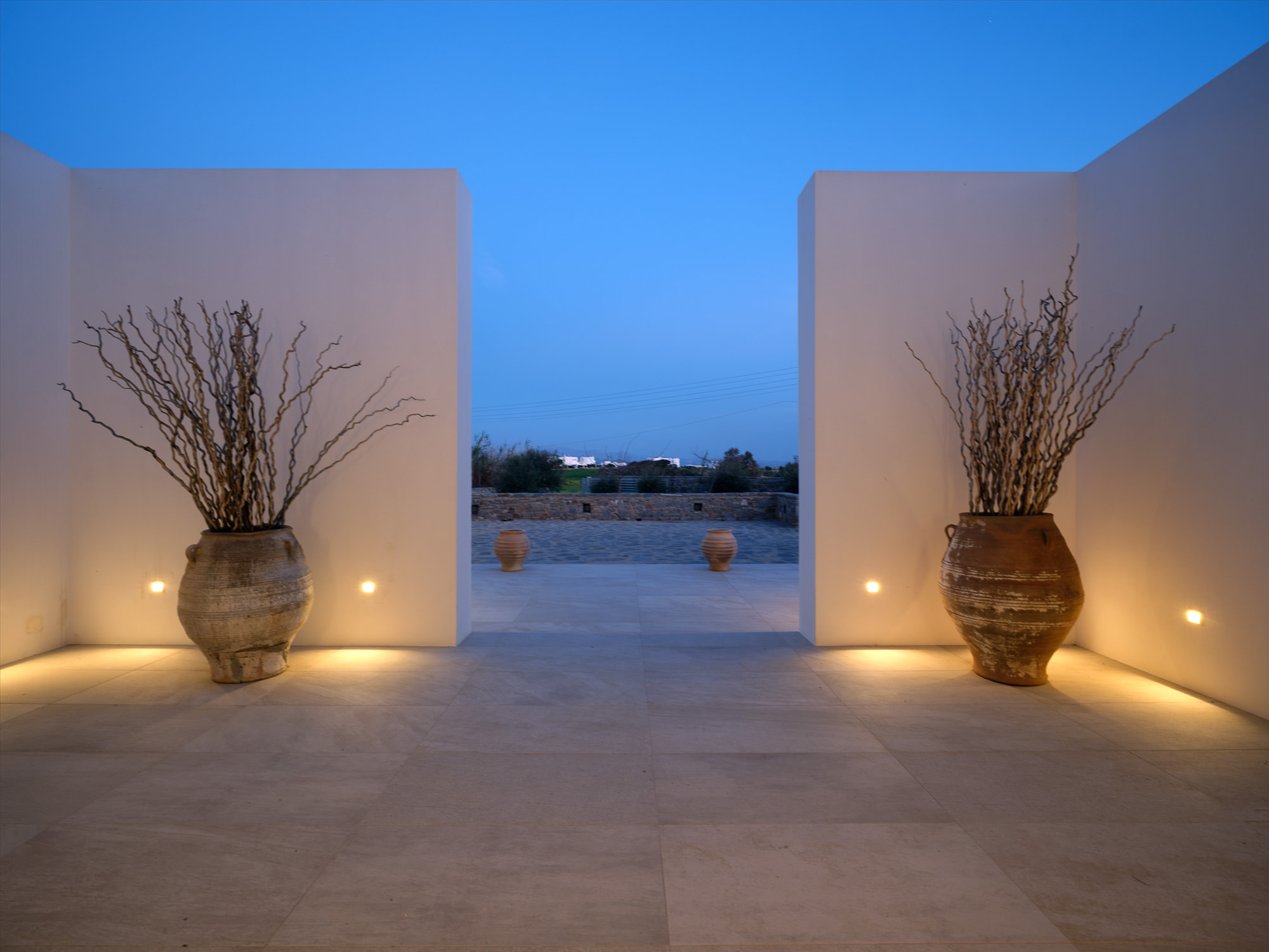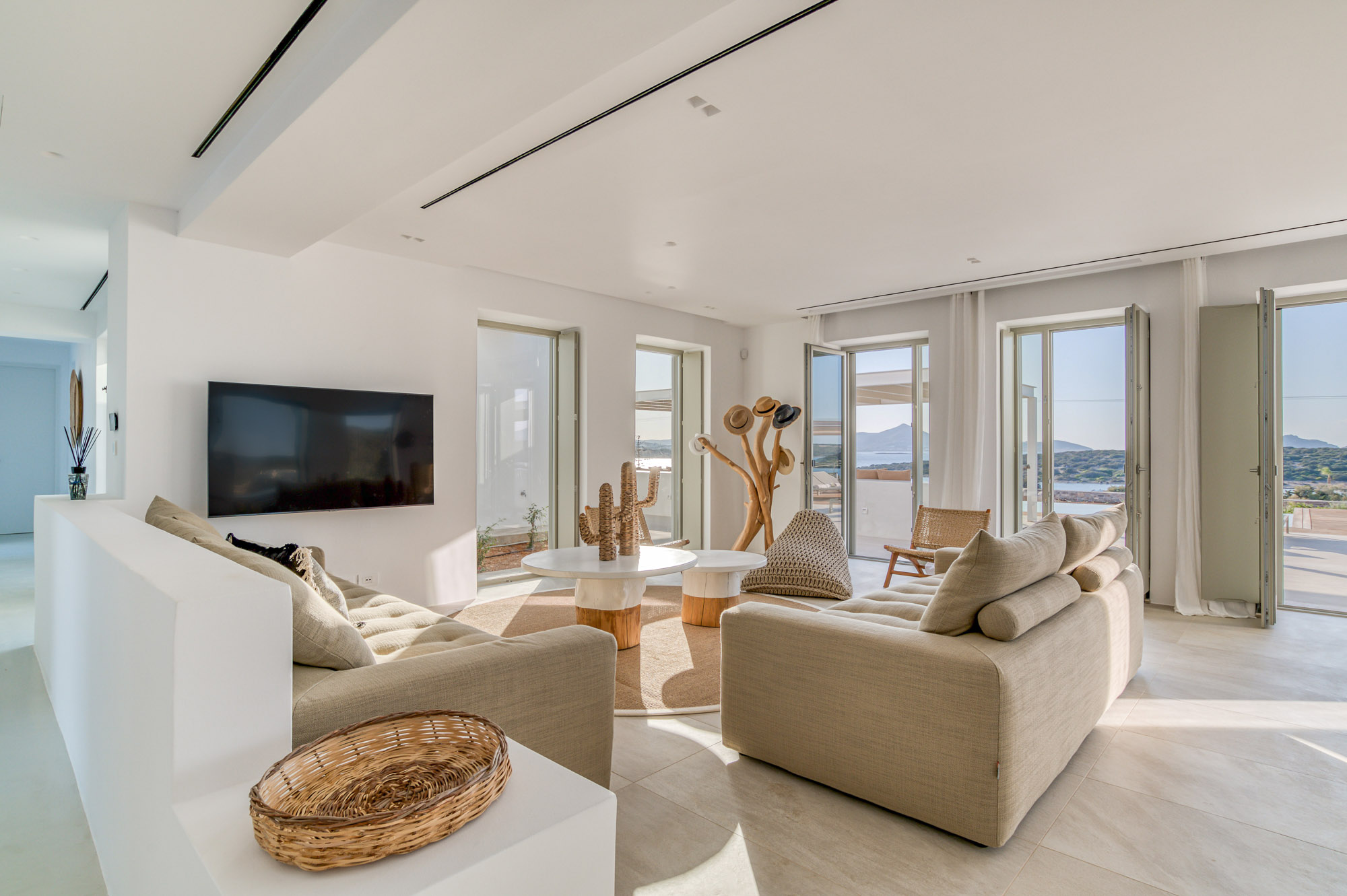 Xifara’s calm shoreline, known for its golden sands and clear waters, is ideal for swimming or windsurfing just moments from the villa. A short drive leads to Naoussa’s lively town centre, where restaurants, nightlife, and boutiques await. At the same time, nearby Santa Maria is known for its striking beaches and laid-back resort atmosphere, offering a seamless blend of quiet and local vibrancy.