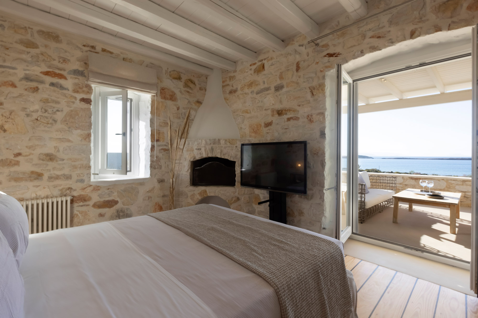 From here, guests can enjoy swimming, sunbathing and a range of water sports. The picturesque village of Naousa is just a 10-minute drive away, inviting you to wander around its charming harbour, explore boutique and artisan shops along narrow stone-paved streets, or visit the historic Venetian castle of Paros. This prime location combines natural beauty, leisure and authentic island charm.
