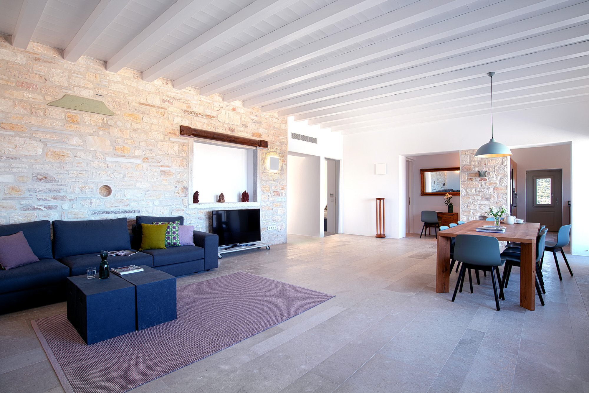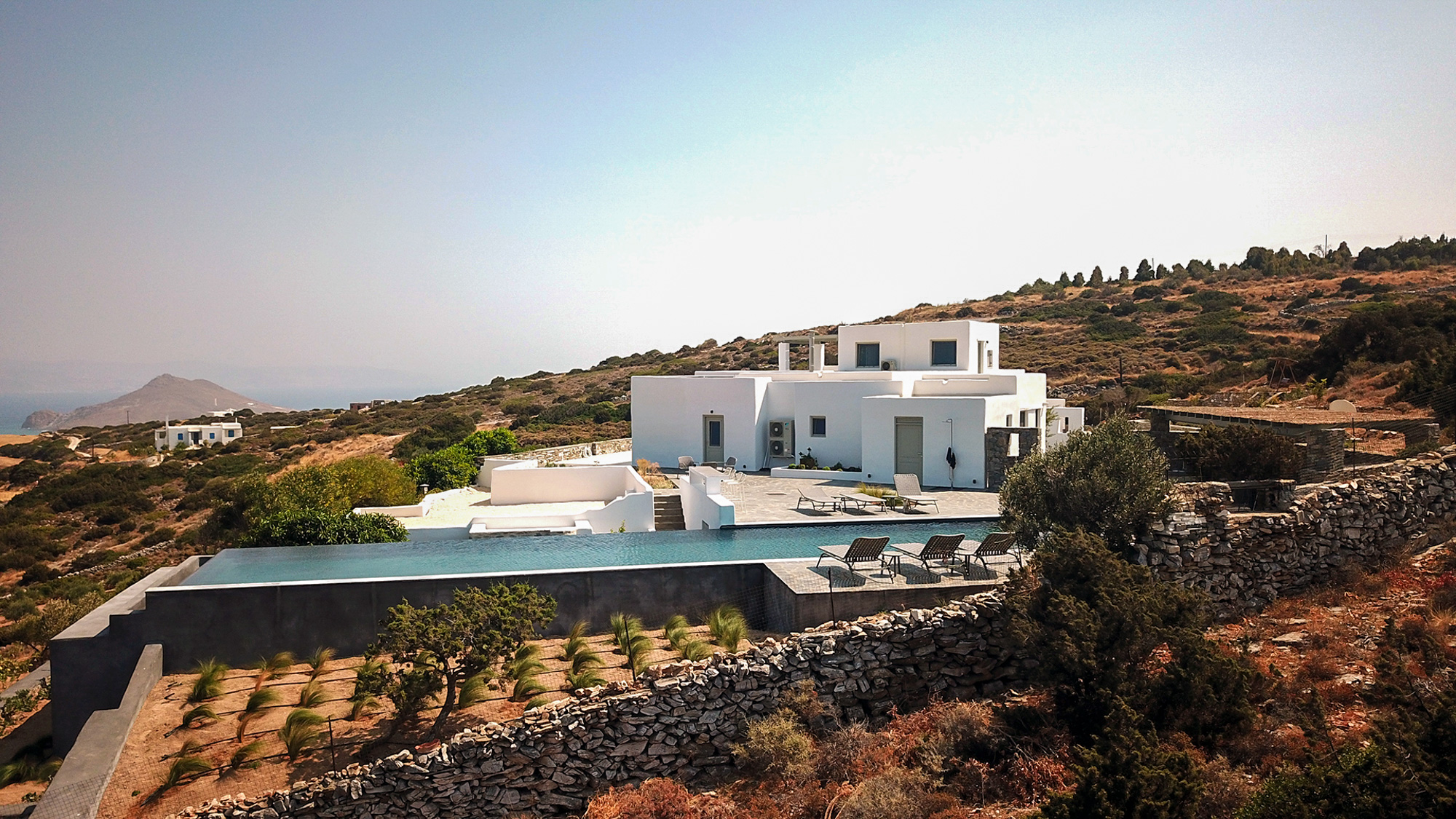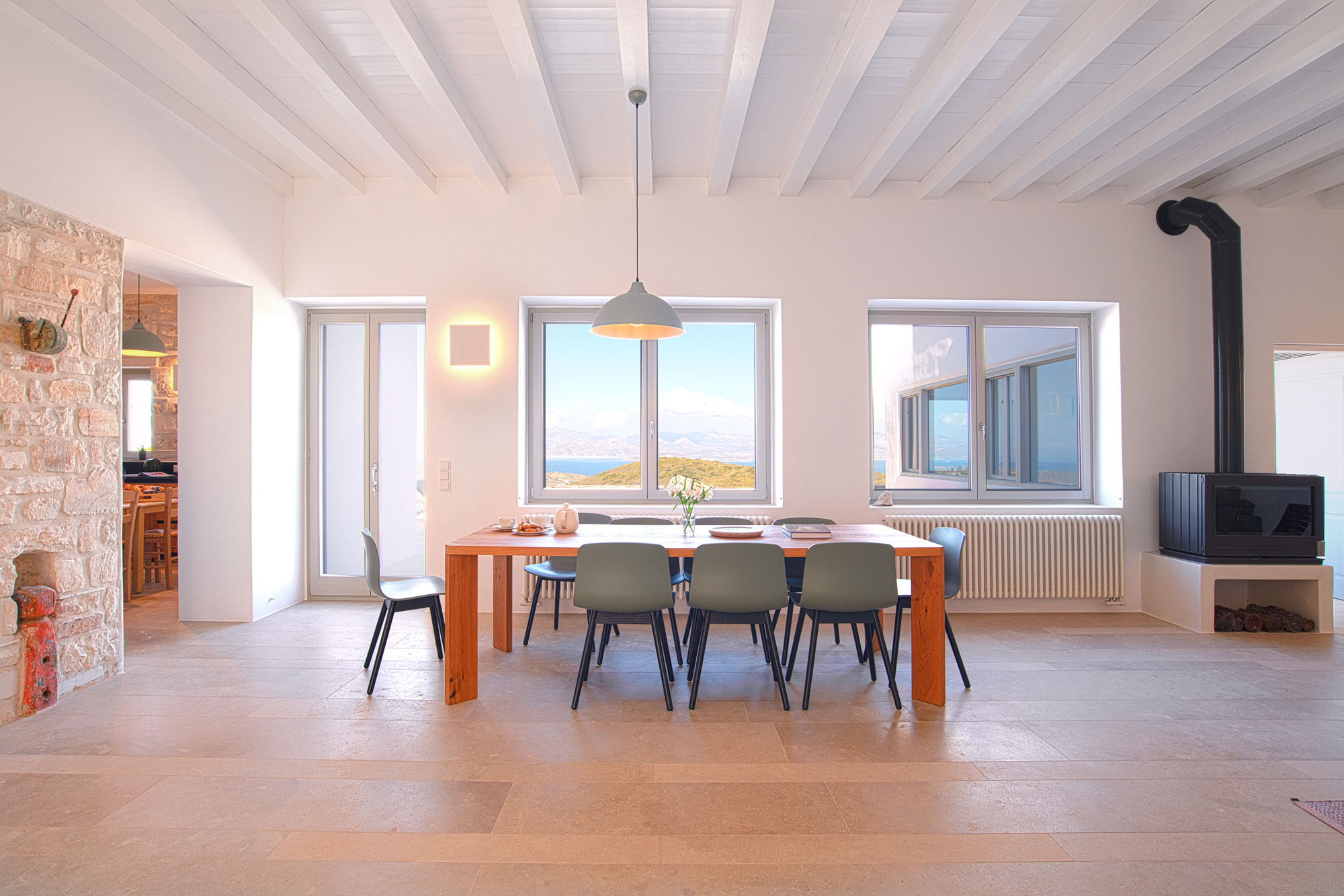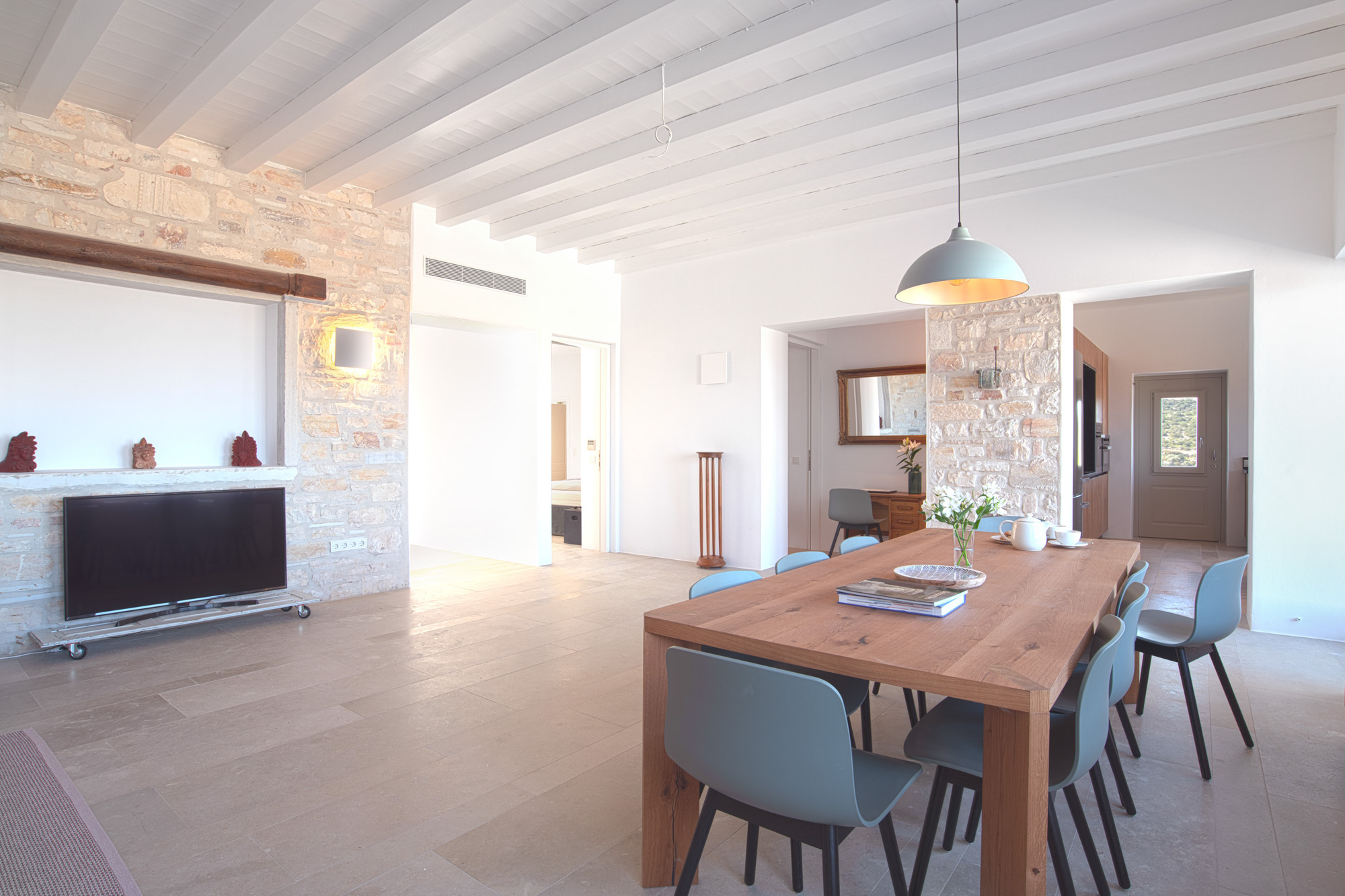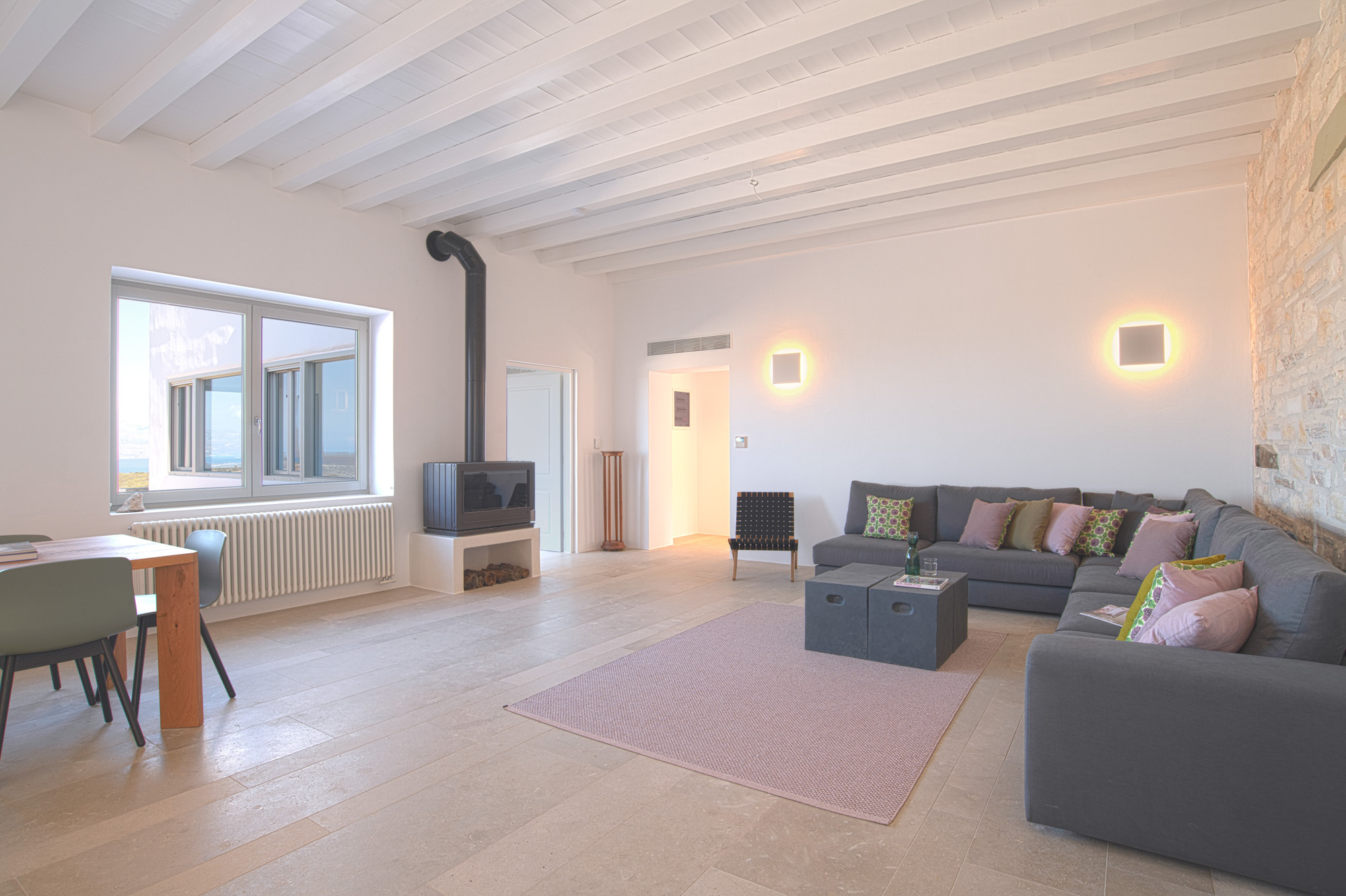Set above the valley, the villa combines privacy, space, and authentic Cycladic charm, with open-plan interiors flowing seamlessly onto expansive terraces designed for long, sun-soaked days and relaxed evenings.