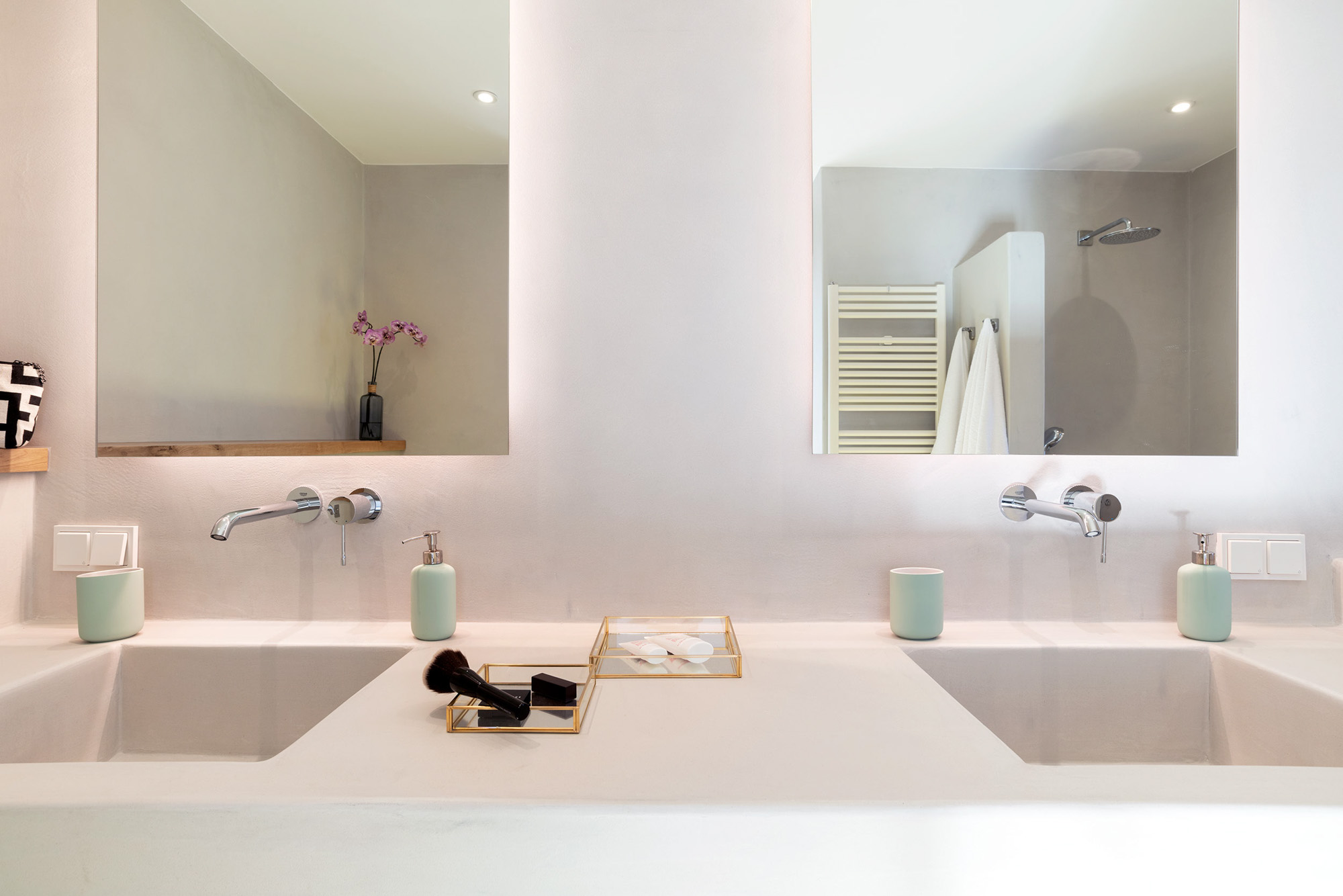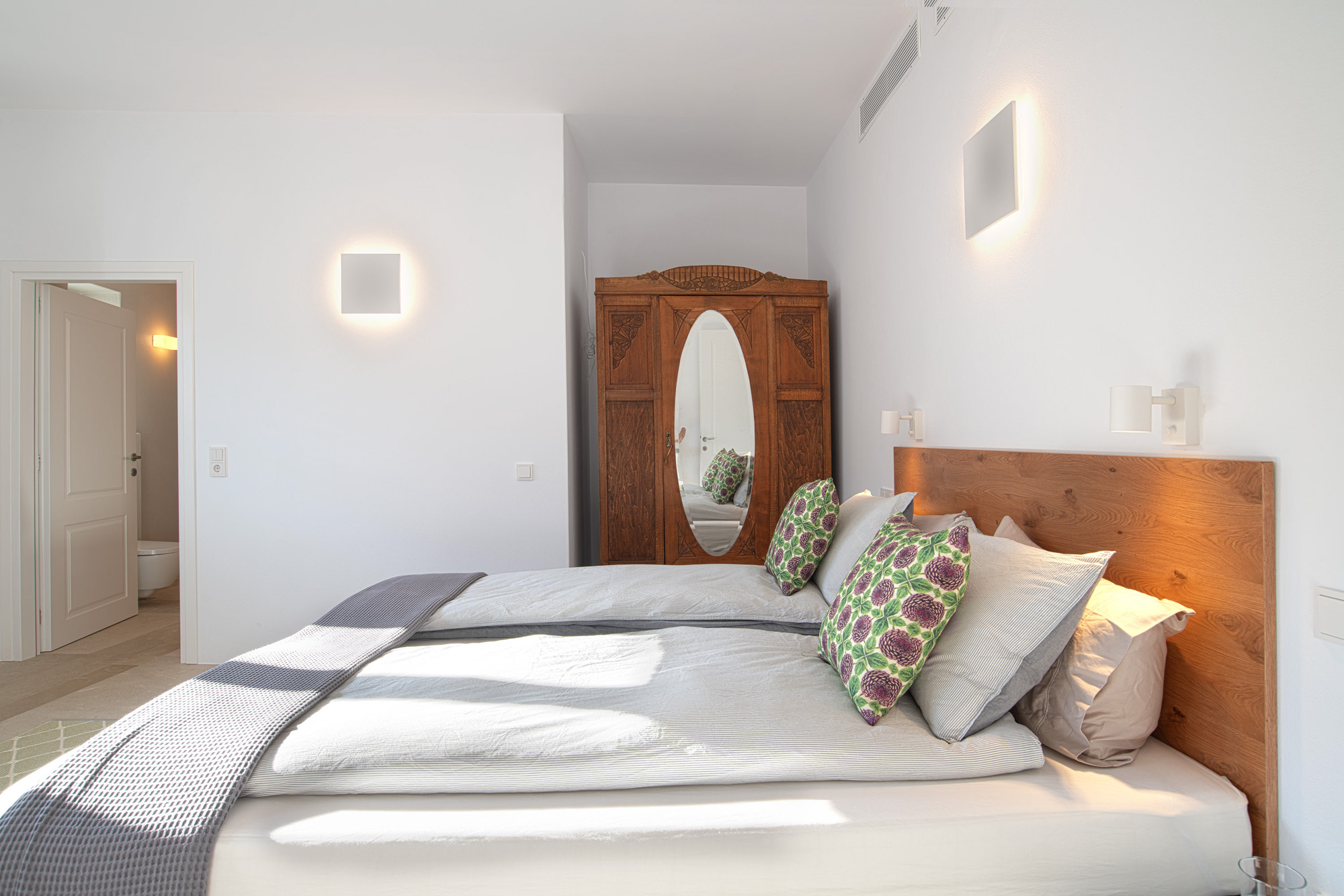 Three en-suite bedrooms are located on the ground floor, alongside a spacious open-plan living, dining, and kitchen area. Doors lead directly from the living spaces onto the main terrace, creating a natural flow between inside and out. The fourth en-suite bedroom occupies the first floor and is accessed via an external staircase, offering added privacy along with its own private terrace and elevated views. A fifth en-suite bedroom is set within a separate studio apartment near the pool, complete with a kitchenette and private terrace, ideal for guests seeking extra independence.