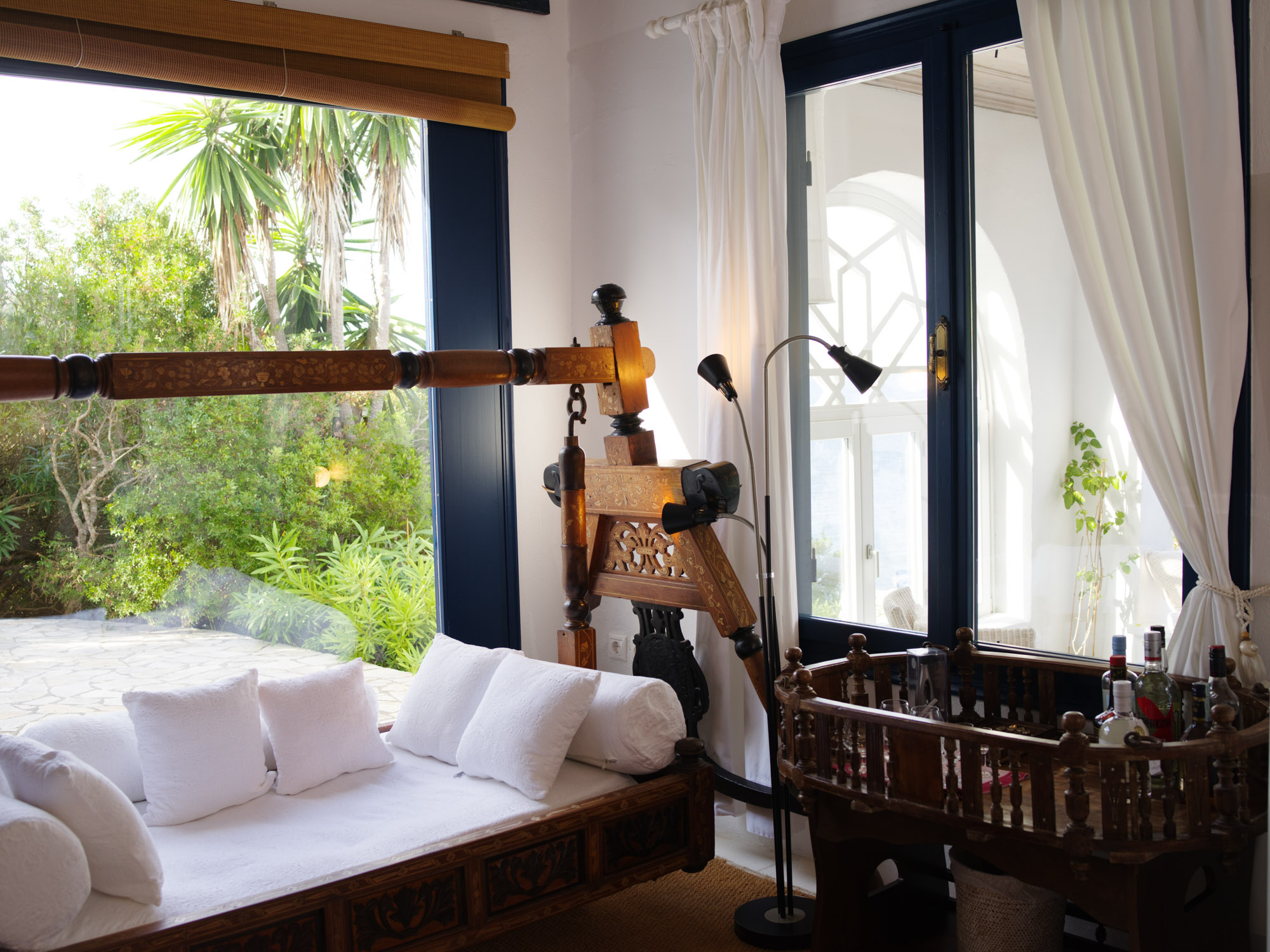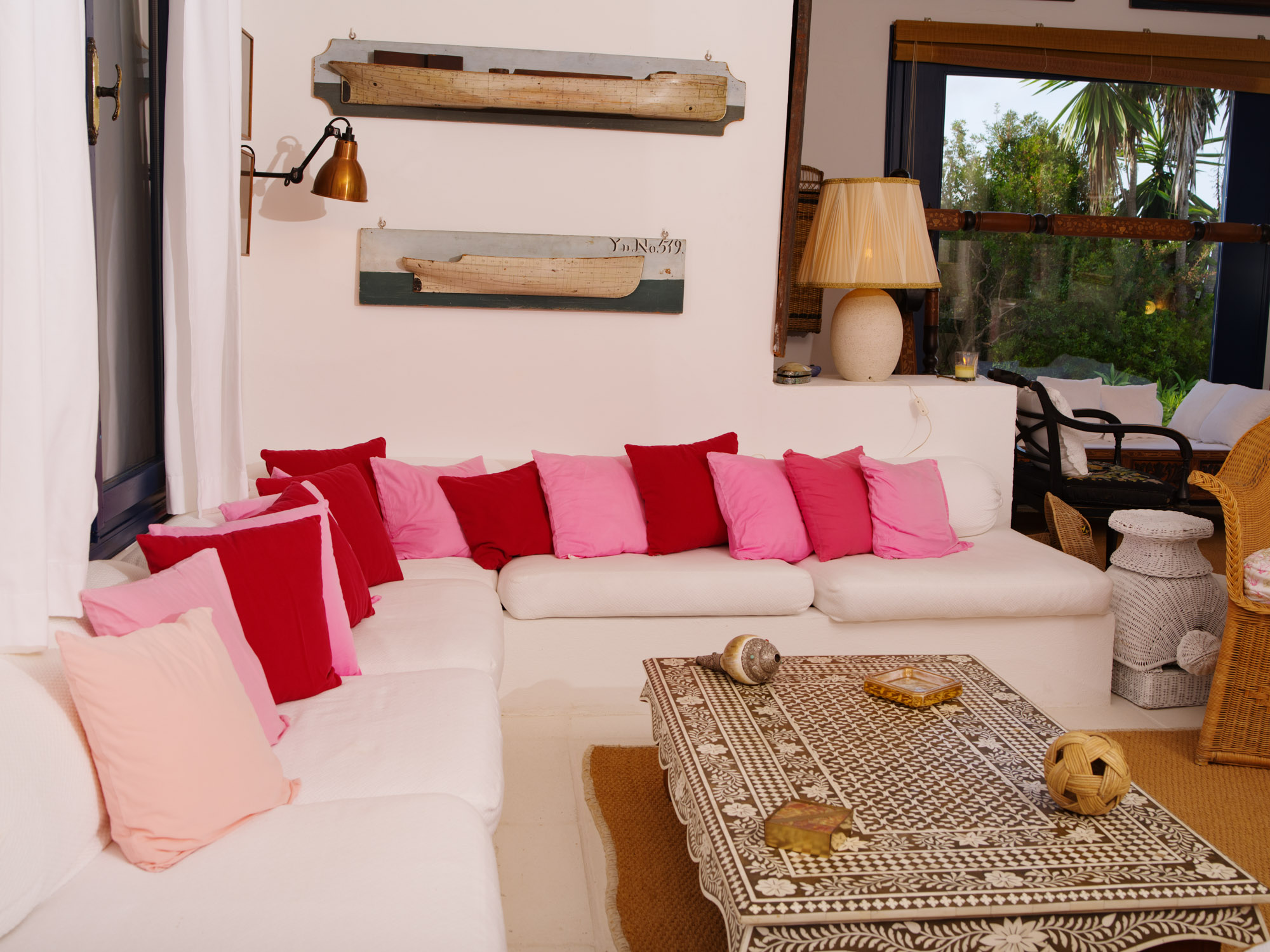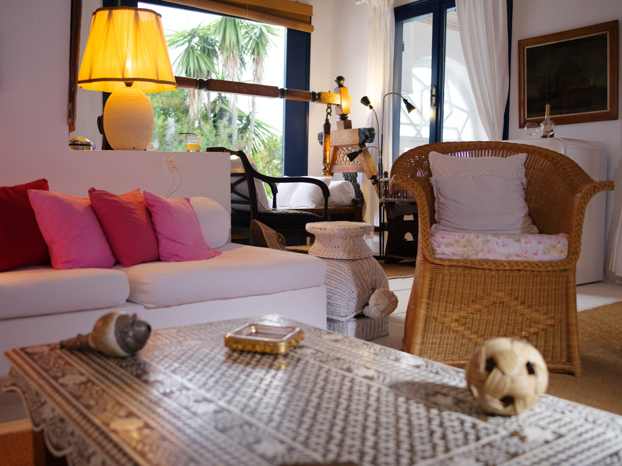 Thoughtfully furnished with vintage-inspired pieces and comfortable sink-in seating, the space offers an inviting and relaxed atmosphere. Accommodating up to 9 guests, the property features five bedrooms, each with its own ensuite bathroom. These are spread between the main house and a secluded garden cottage, providing an ideal option for those seeking additional privacy.