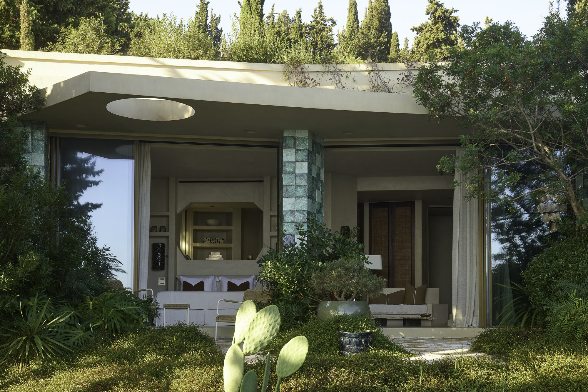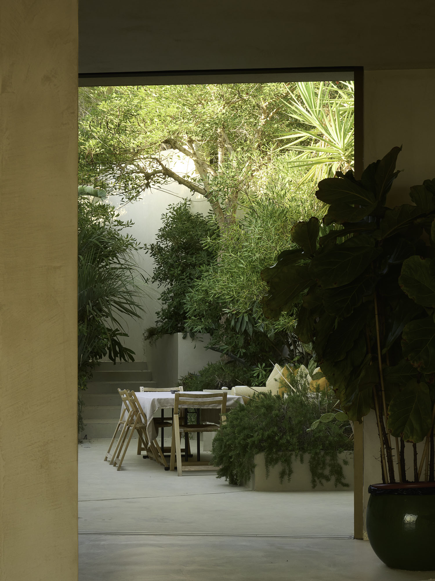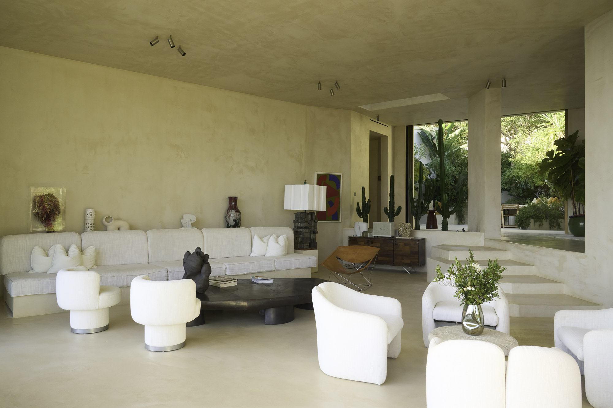 The expansive open-plan living and dining area is filled with light, thanks to sliding glass doors that open directly onto the sea-facing terrace. Each of the four en suite bedrooms has full-height windows that bring the outside in and offer direct access to the terrace, blending modern elegance with barefoot luxury.