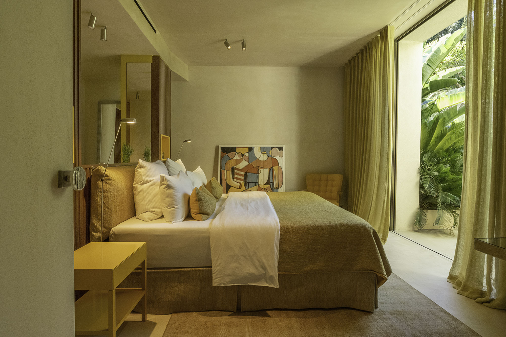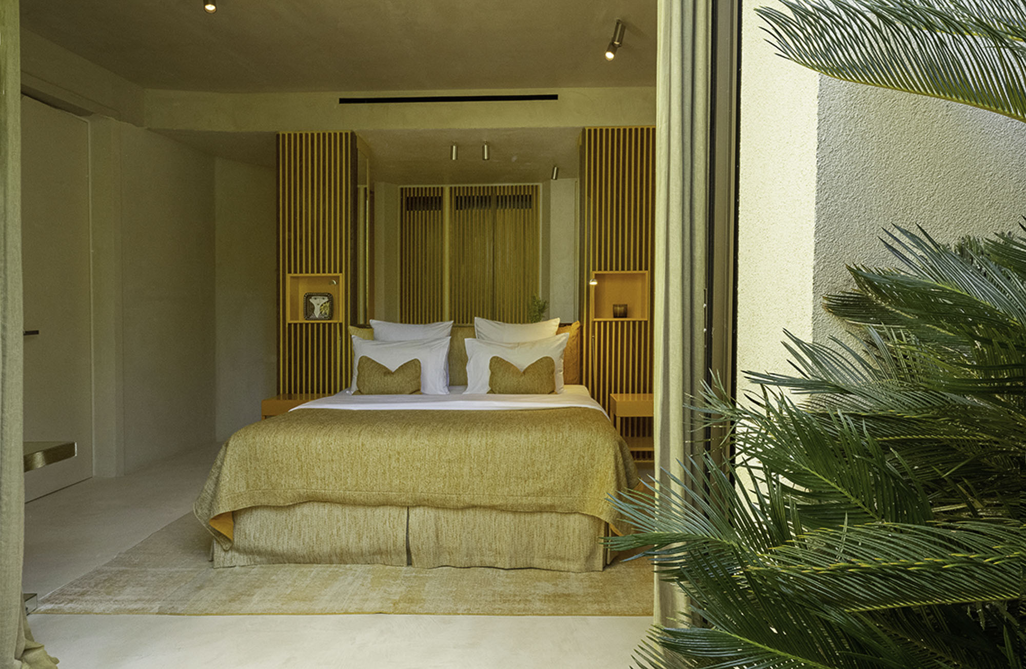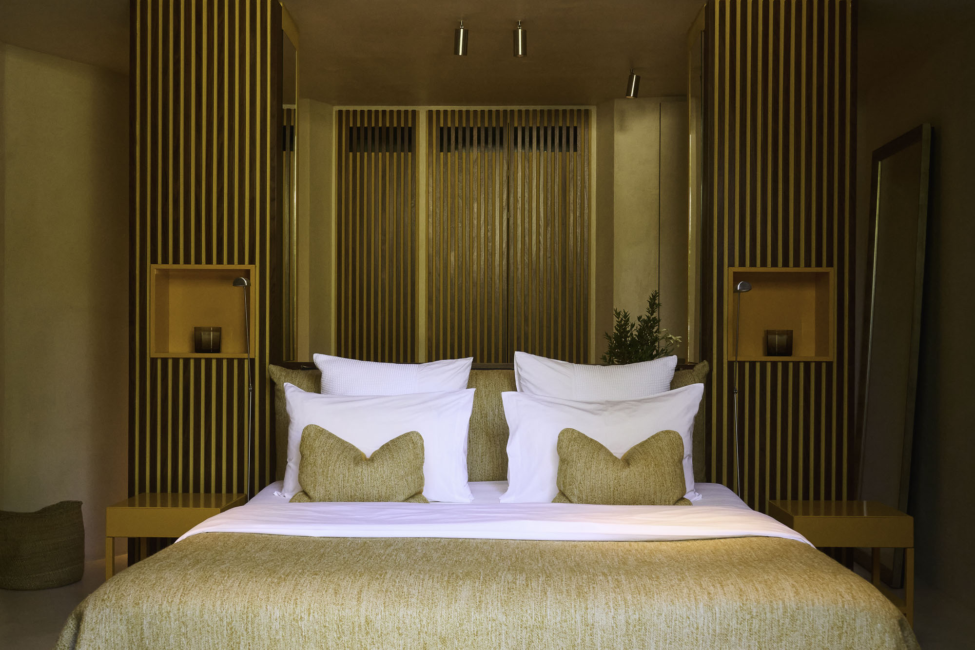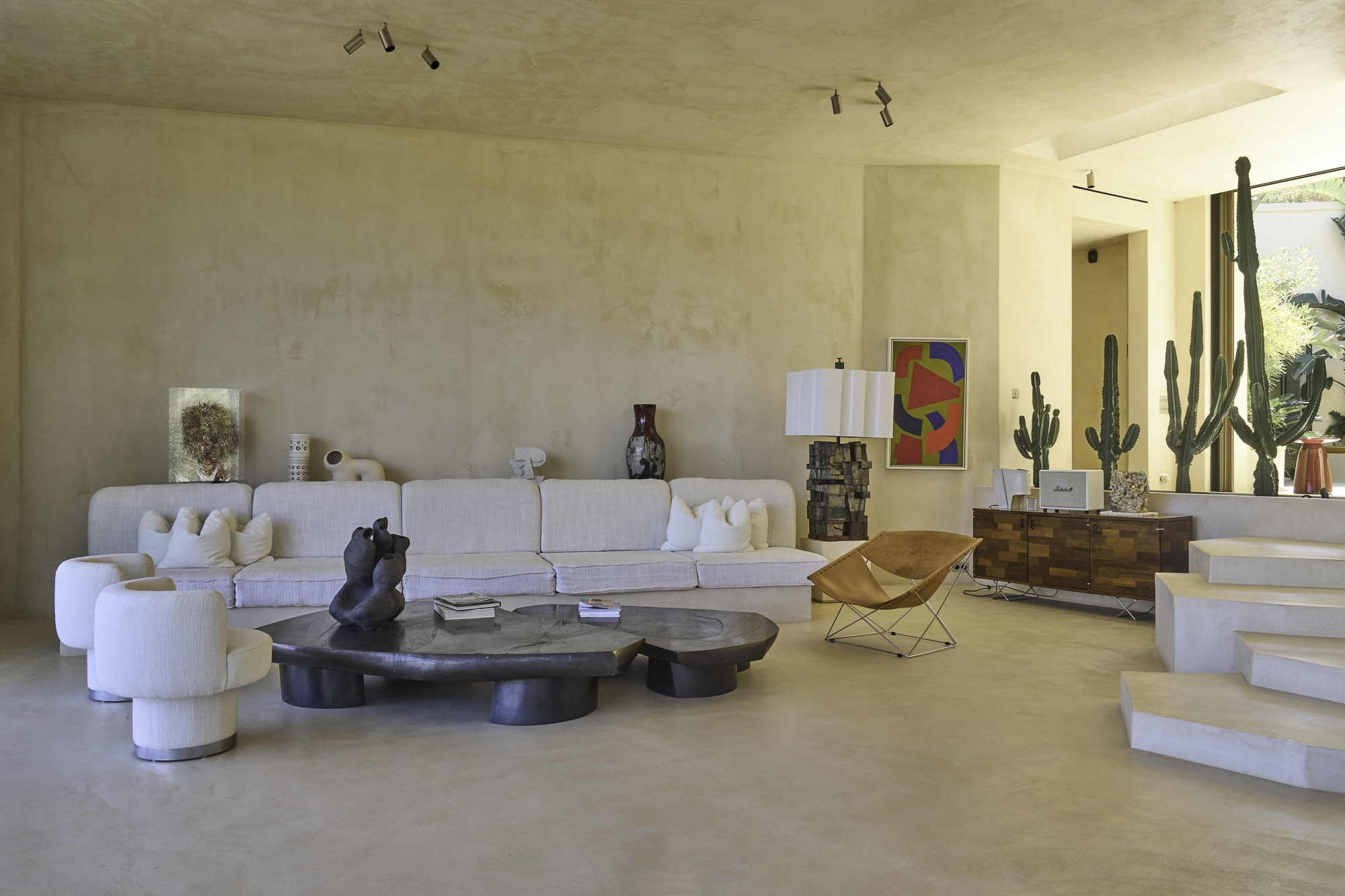 The expansive open-plan living and dining area is filled with light, thanks to sliding glass doors that open directly onto the sea-facing terrace. Each of the four en suite bedrooms has full-height windows that bring the outside in and offer direct access to the terrace, blending modern elegance with barefoot luxury.
